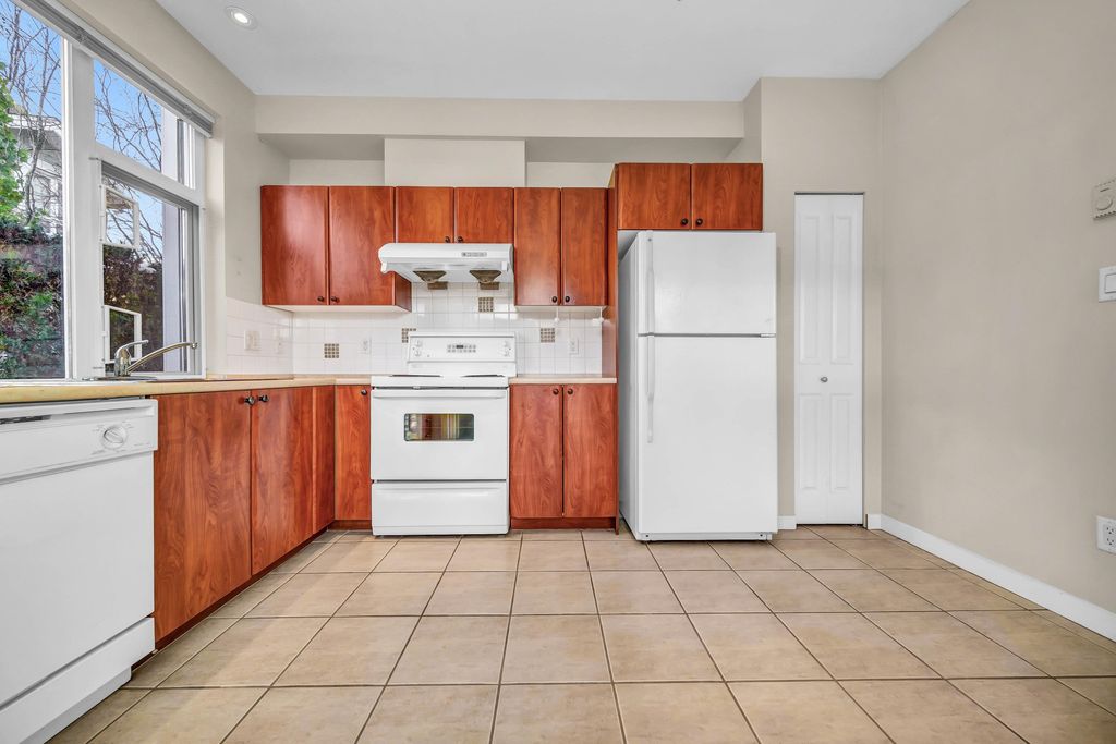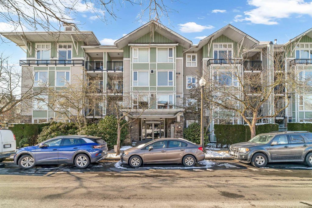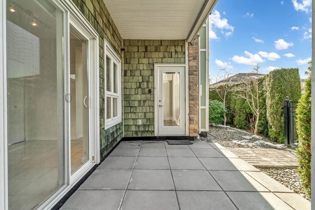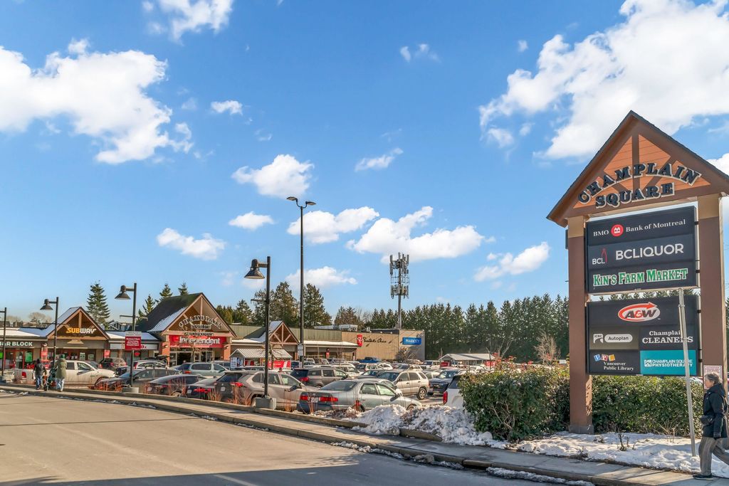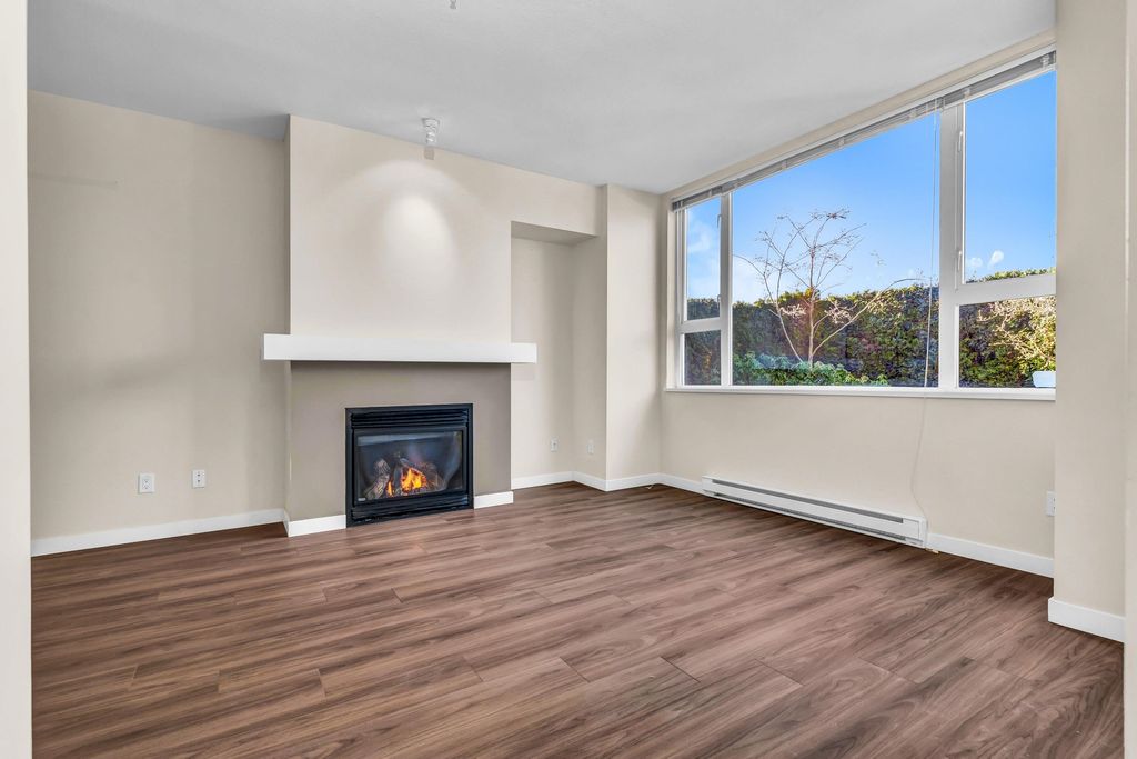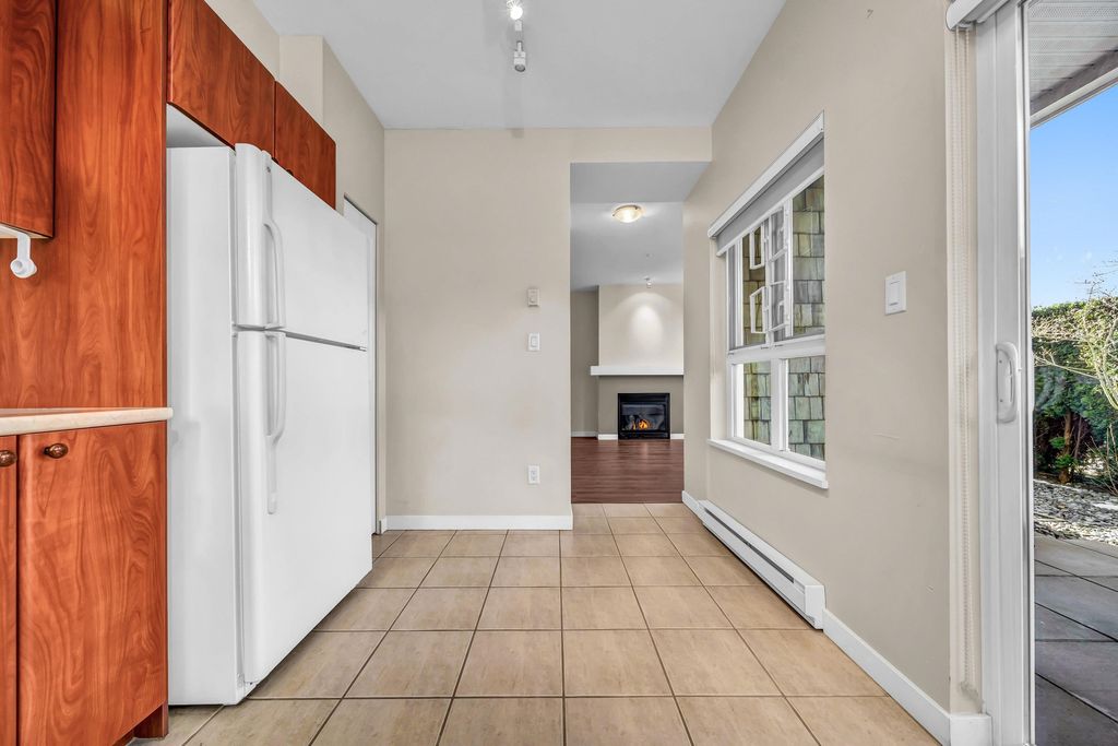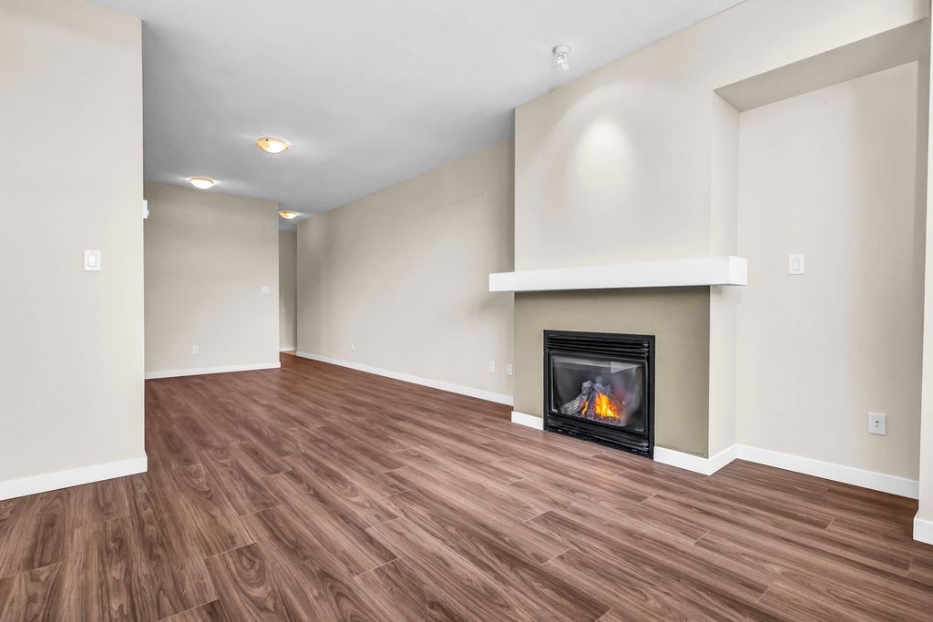 Welcome to CHAMPLAIN VILLAGE; RARELY available ground floor + corner unit w/ 2 BD & 2 BTH over 1000 sqft of living space! This well maintained 1 owner W facing unit features 2 entrances like a townhouse, a bright and sunny layout with kitchen that opens onto a huge wrap-around patio. New paint and new flooring throughout. Includes 1 underground parking, in suite laundry, & large living room w/ cozy gas fireplace. Proactive freehold building w/ gated visitors parking, bike room, recently replaced common area carpets & maint. fee includes hot water&gas! Steps to Champlain Mall, restaurants, groceries, library, Captain Cook Elementary, Killarney Secondary & Community Centre!