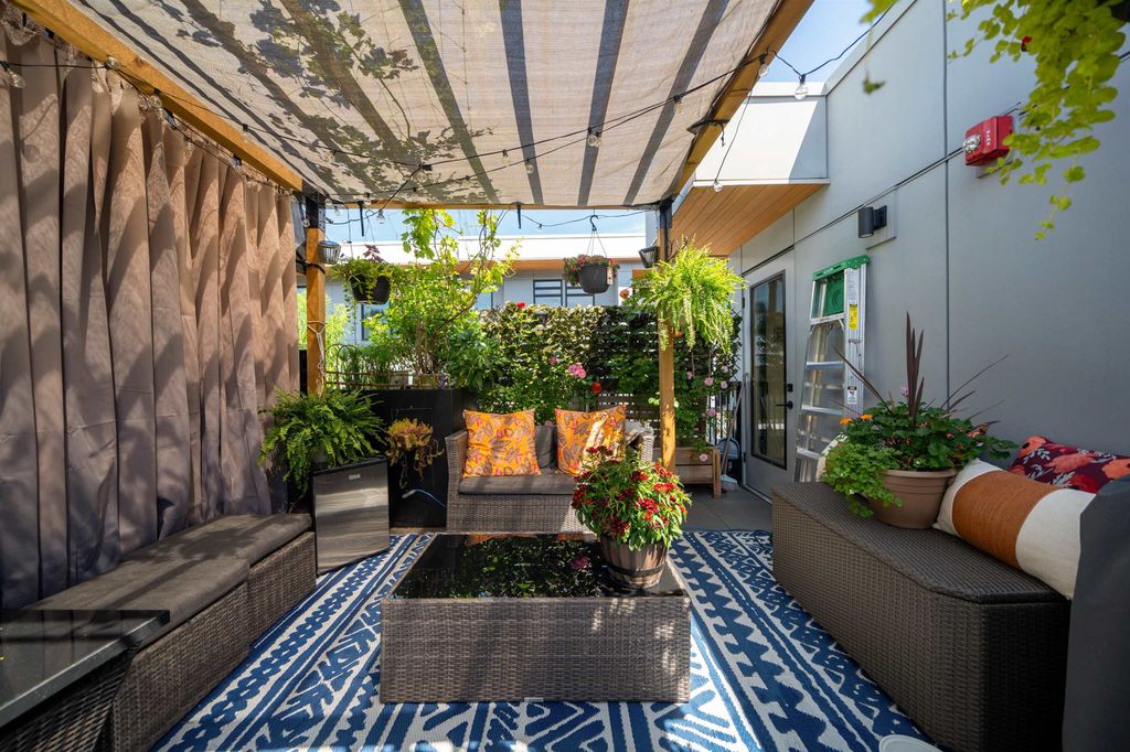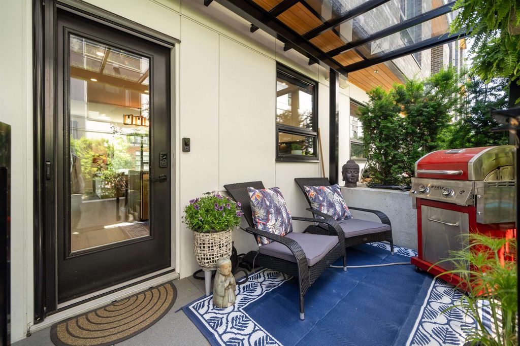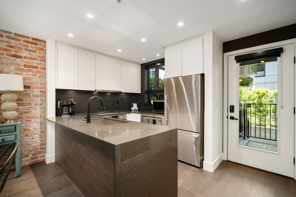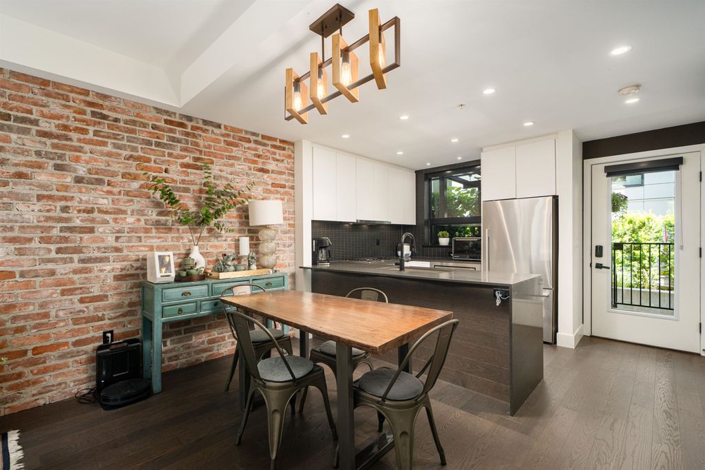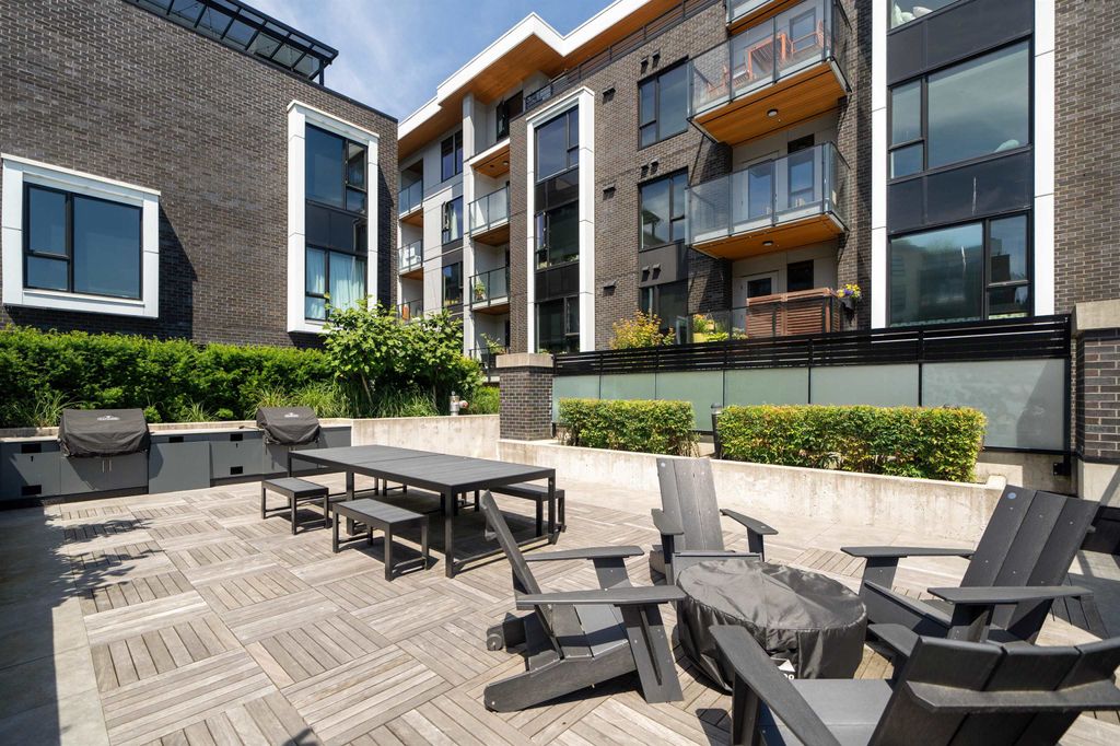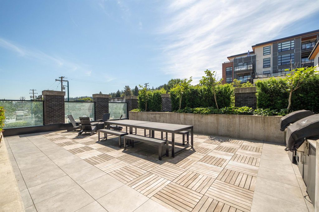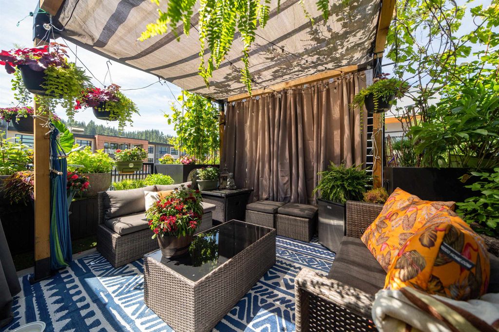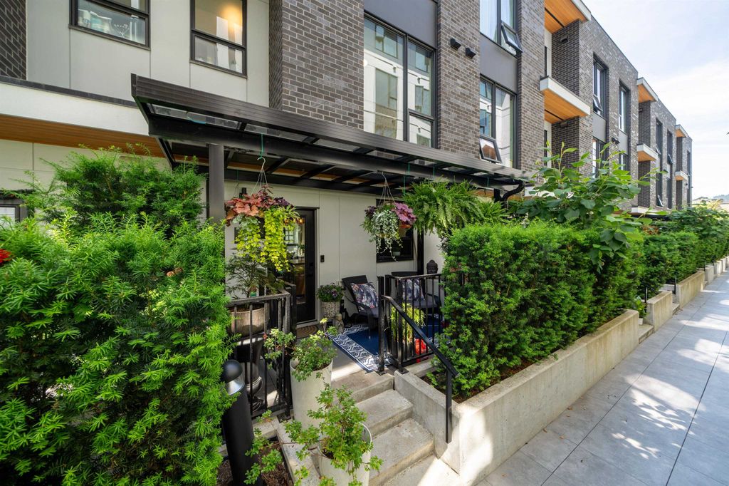 Rooftop garden Oasis in Port Moody Centre! Immaculate 3-bedroom, 3-bathroom townhome. Platform by Aragon is steps from Rocky Point, Brewer's Row, Moody Centre Skytrain, shops on St. Johns St, and more! This three-level + roof deck townhome is on the quiet side of the complex, it features south-facing living room windows, plenty of outdoor space, and private separated bedrooms. Enjoy a sunny private roof patio w/gas bib, a large covered main floor patio, and a bonus 2nd-floor balcony. The home includes 2 lockers and 2 side-by-side parking spots with one electrical plug. Charming urban décor with reclaimed brick and stained oak planks. Pets and rentals are welcome.