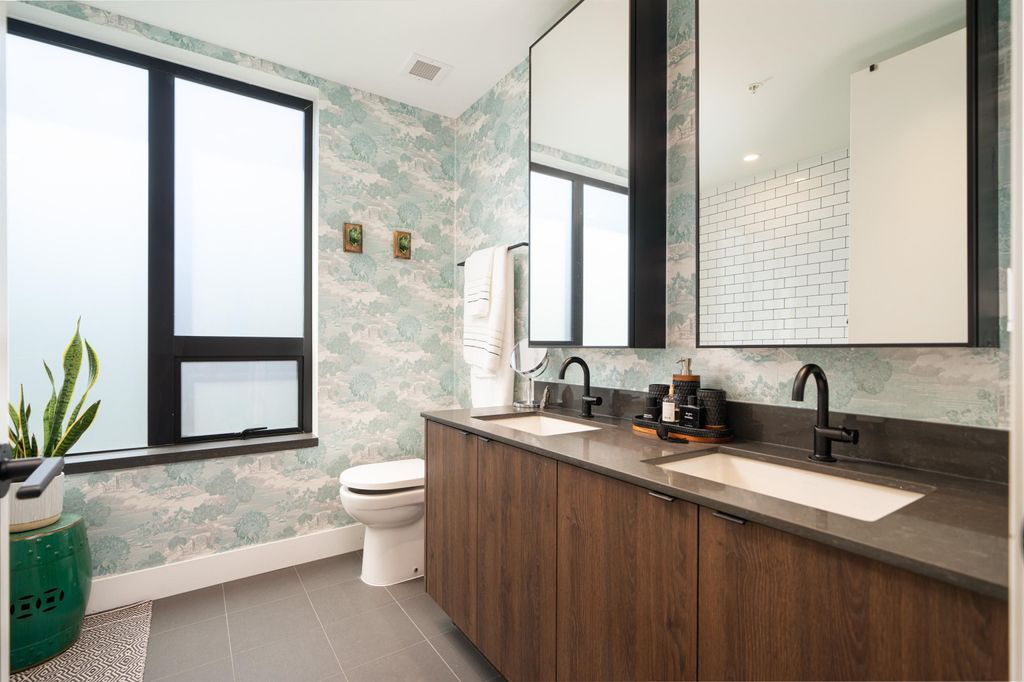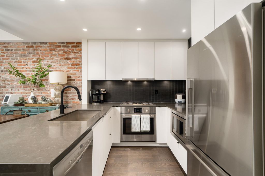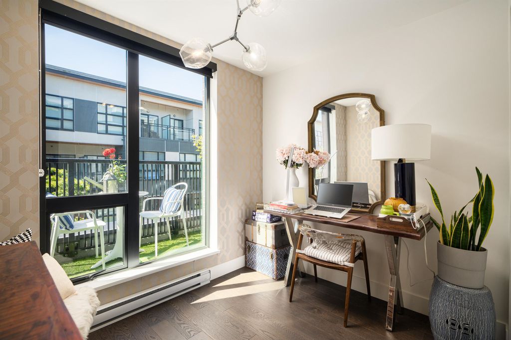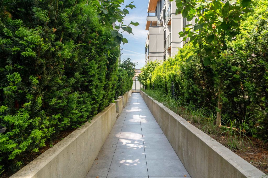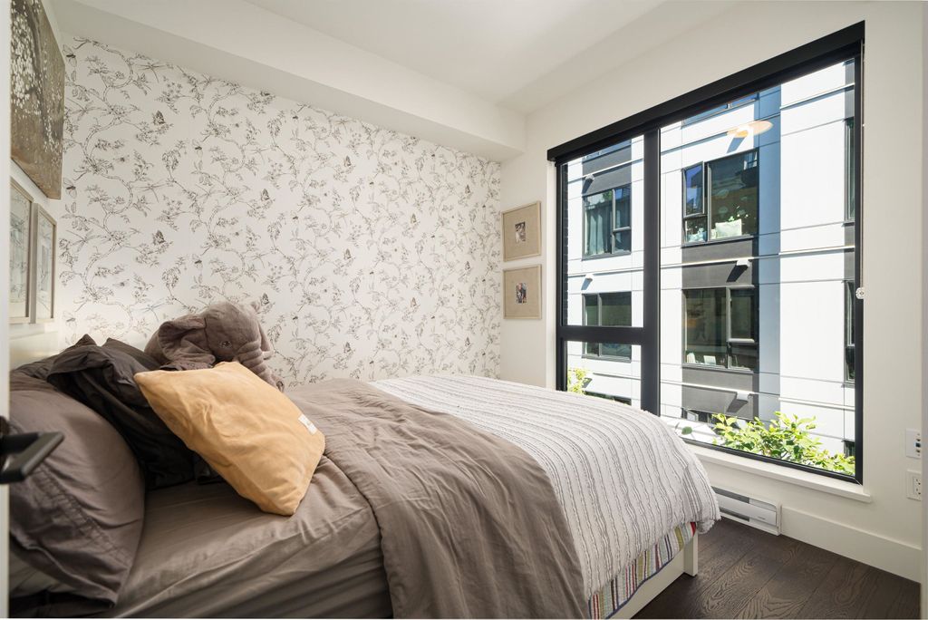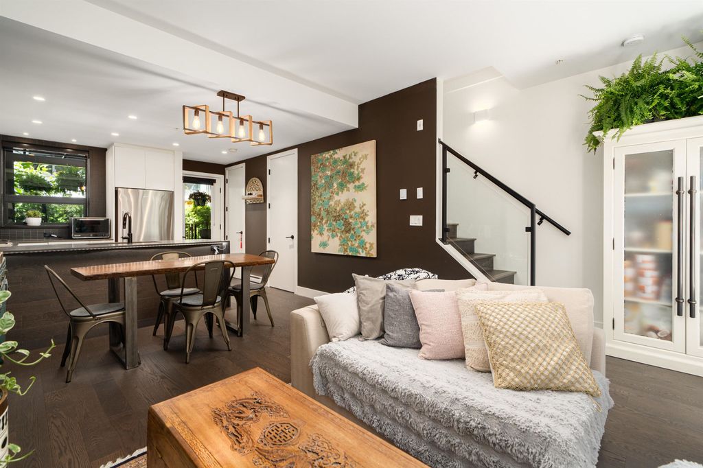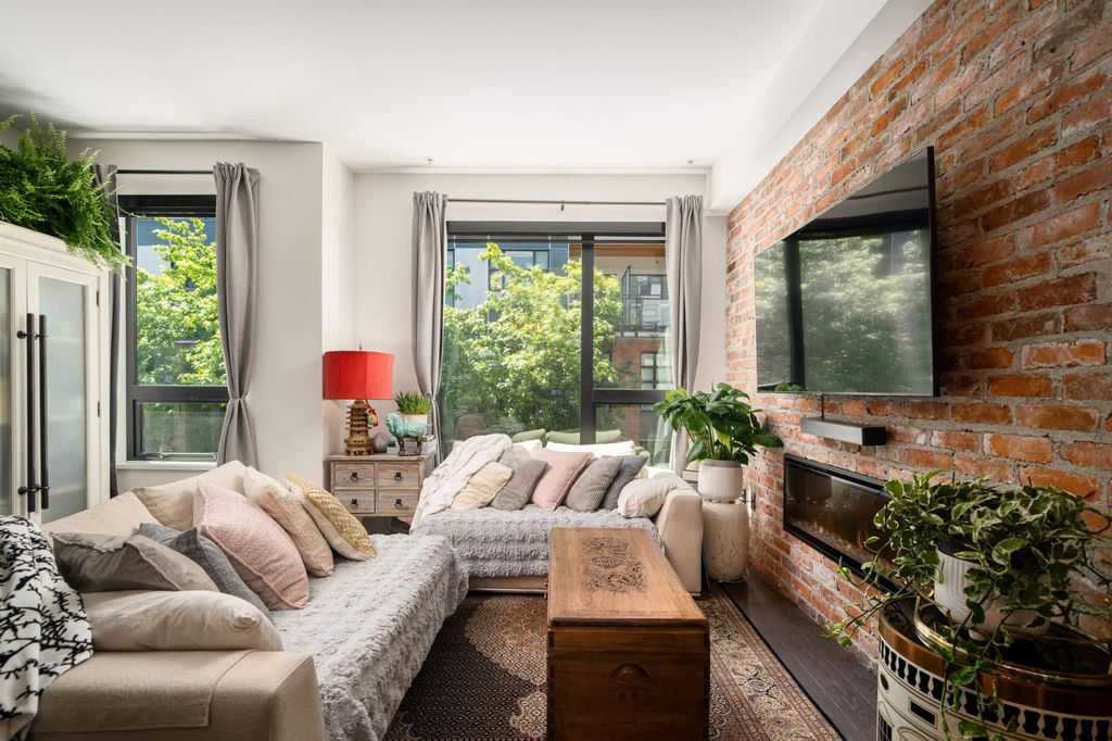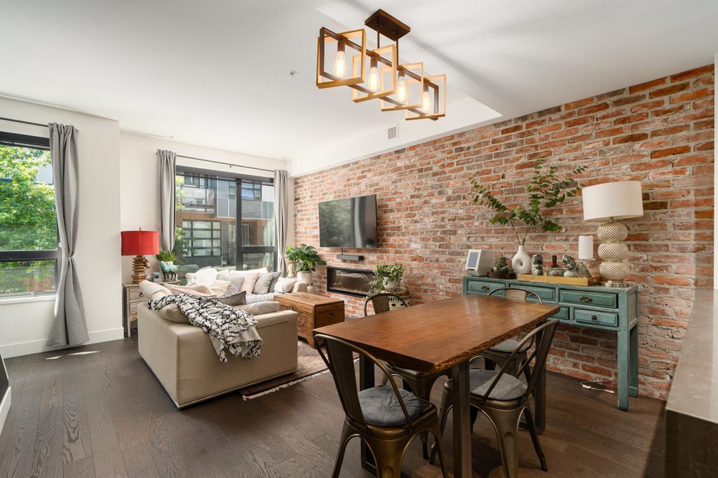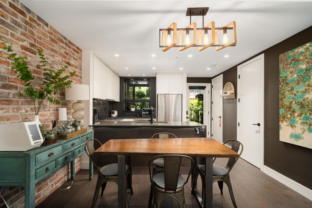 Rooftop garden Oasis in Port Moody Centre! Immaculate 3-bedroom, 3-bathroom townhome. Platform by Aragon is steps from Rocky Point, Brewer's Row, Moody Centre Skytrain, shops on St. Johns St, and more! This three-level + roof deck townhome is on the quiet side of the complex, it features south-facing living room windows, plenty of outdoor space, and private separated bedrooms. Enjoy a sunny private roof patio w/gas bib, a large covered main floor patio, and a bonus 2nd-floor balcony. The home includes 2 lockers and 2 side-by-side parking spots with one electrical plug. Charming urban décor with reclaimed brick and stained oak planks. Pets and rentals are welcome.