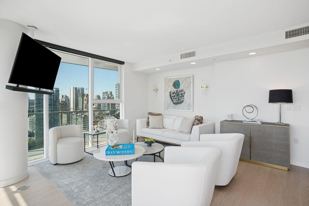 Experience elevated living in this 1,412 sq. ft. 3-bedroom residence at The Arc; one of Vancouver’s most iconic luxury towers. This home is designed to impress with its floor-to-ceiling windows framing sweeping southern views of False Creek, the city skyline, and the North Shore mountains. Sophisticated open-concept kitchen and dining space blends style with functionality, perfect for refined entertaining and everyday elegance. Natural light flows seamlessly throughout, accentuating the modern design and premium finishes. As a resident, enjoy exclusive access to The Sky Club — a world-class amenity collection including a glass-bottom swimming pool, state-of-the-art fitness centre, sauna and steam room, private lounge, & 24-hour concierge service. 2 parking & 1 storage included.