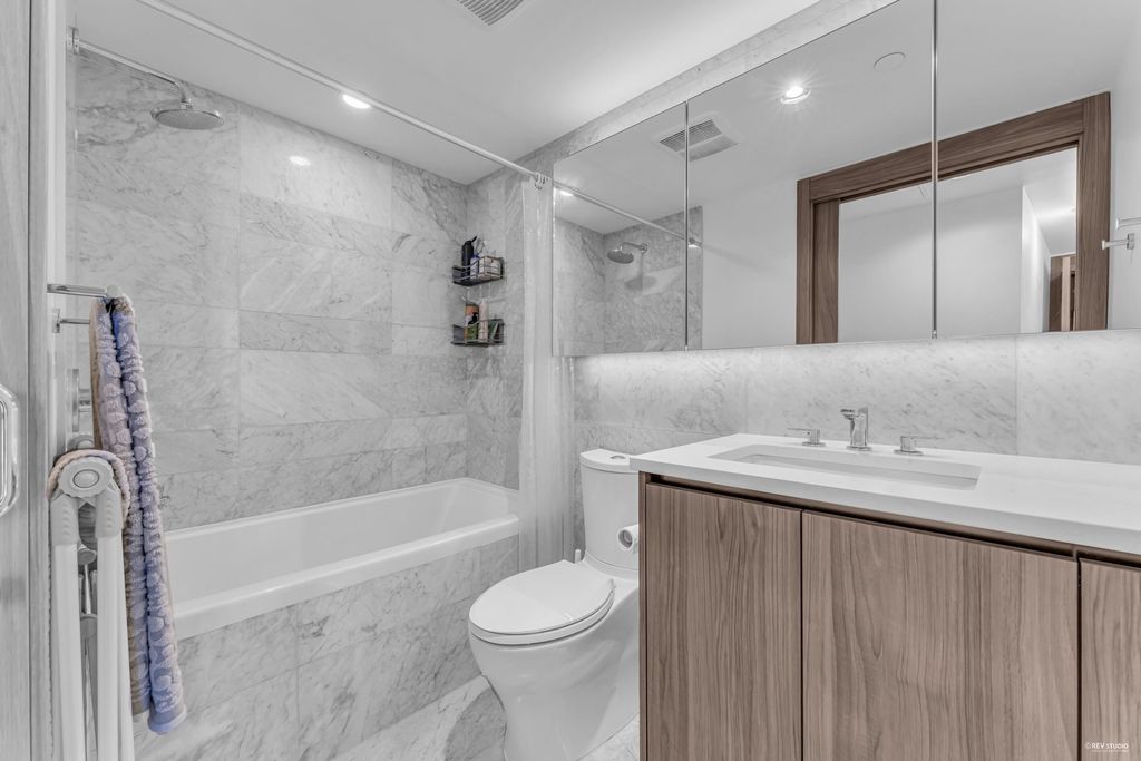 Sunny SW facing home with central A/C for year round comfort. Spacious living area with functional layout. Linear kitchen with high-end Miele appliances. Luxurious bathroom with marble tiles. Large bedroom with good sized closet & organizer. Large balcony extends your living space to outdoor. Good set-back from neighboring buildings give you a nice cityscape view. Resort like amenities include glass-bottom pool, sauna/steam/hot tub, fully equipped gym & grand lounge/party room. 24-hour concierge & auto car wash station. Convenient located with easy steps to Skytrain station, shops, restaurants, recreations, seawall & water front park. Tenanted fixed term until April 30th, 2024 for $2,450 monthly. Great for investor or buyer looking to move in next year!
