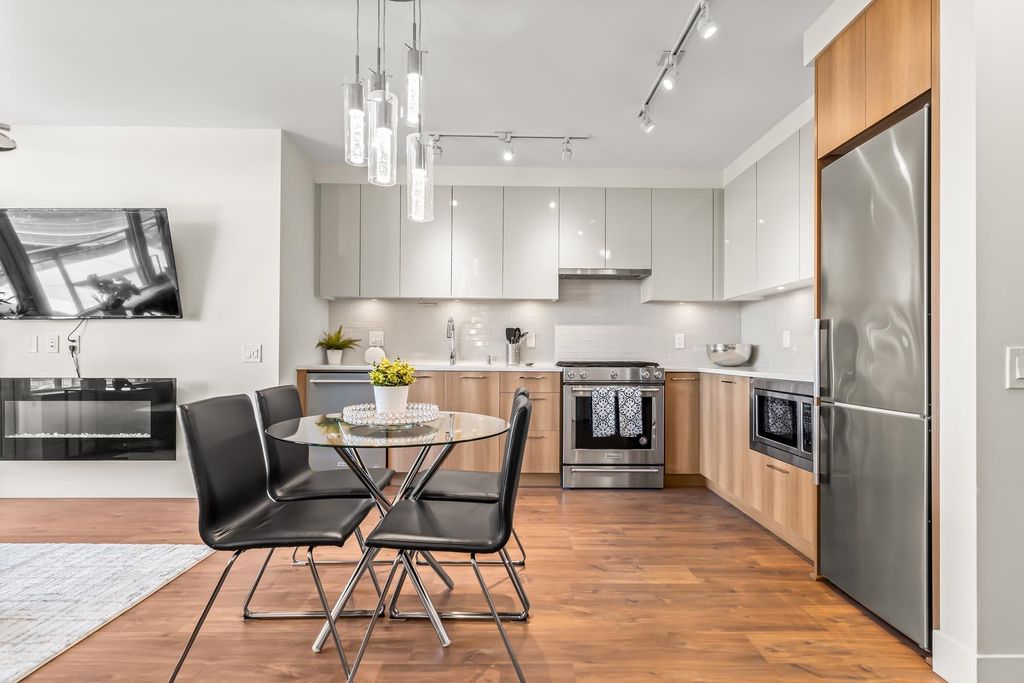 Located in the popular Brewery District built in 2020 by Wesgroup, this stylish & bright 1 bed + den offers a great layout, 8'5" ceilings & fabulous river/city views! Modern open kitchen: quartz counters, Kohler faucets, stainless steel appliances & gas cooktop. Large covered balcony off the living rm. Full size insuite w/d. Custom closets, costing over $3,000. First class amenities, including state of the art 3 level fitness center: free gym membership, steam rm, sauna, yoga rm, squash crt, massage center & personal trainers on site. Lounge w/kitchen & outdoor entertaining area, dog wash/bike wash stations, visitor parking. Quick walk to Skytrain & RCH. Steps to restaurants, shops, cafes, Save On & more. Parking stall, storage locker & 2 pets allowed (any size).