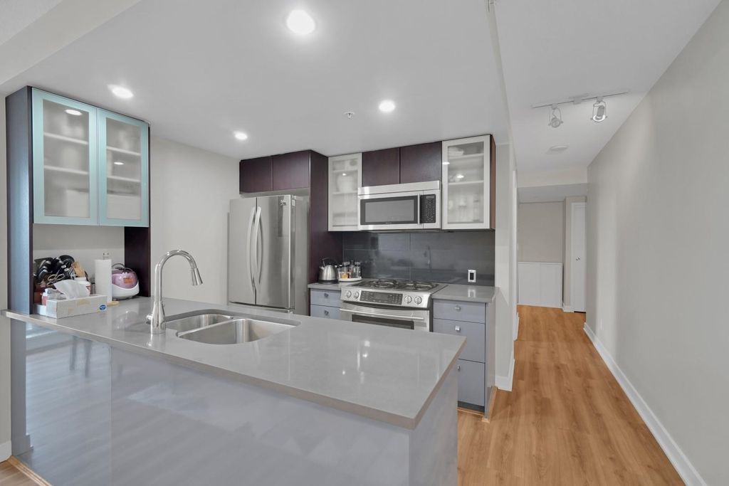 'CENTRO', Quality built by the award winning developer - RITZ. Central location within walking distance to everything: Richmond Centre, Skytrain Station, Library, all levels of schools, recreation & Parks, City Hall and more. Enjoy Sky-roof Gym, Roof Top Garden & Sauna. This spacious One Bedroom plus den, North facing unit offers a sleek/sophisticated open concept layout. Top finishing features S/S appliances, gas range, granite countertops, floor to ceiling windows in the living room, and new laminate flooring throughout. Very affordable one bedroom plus den unit in the heart of Richmond Centre, family friendly. One parking, One locker. Great for first time buyers and investors.
