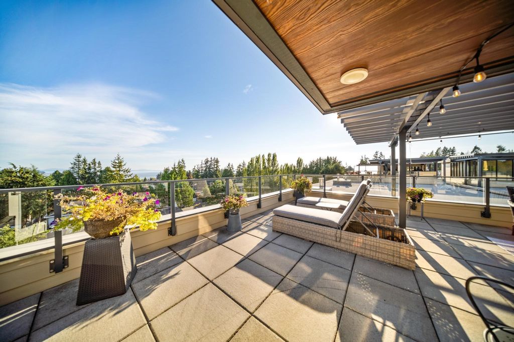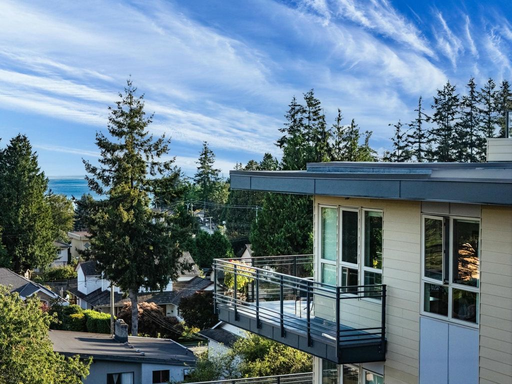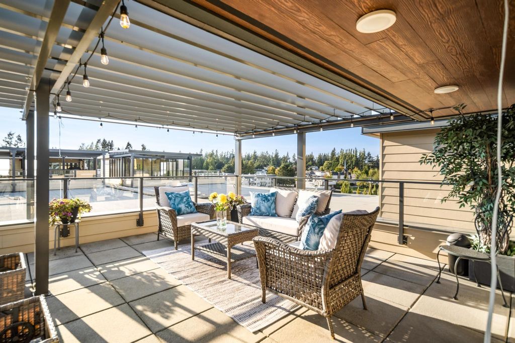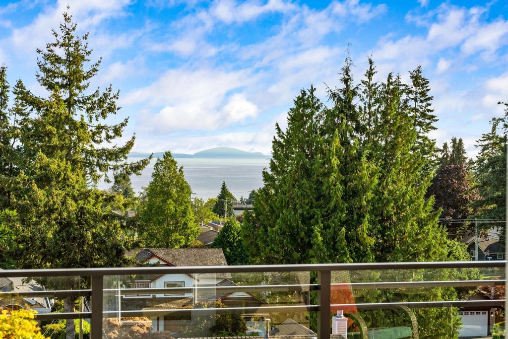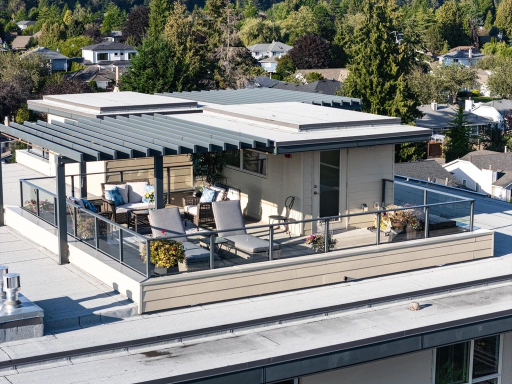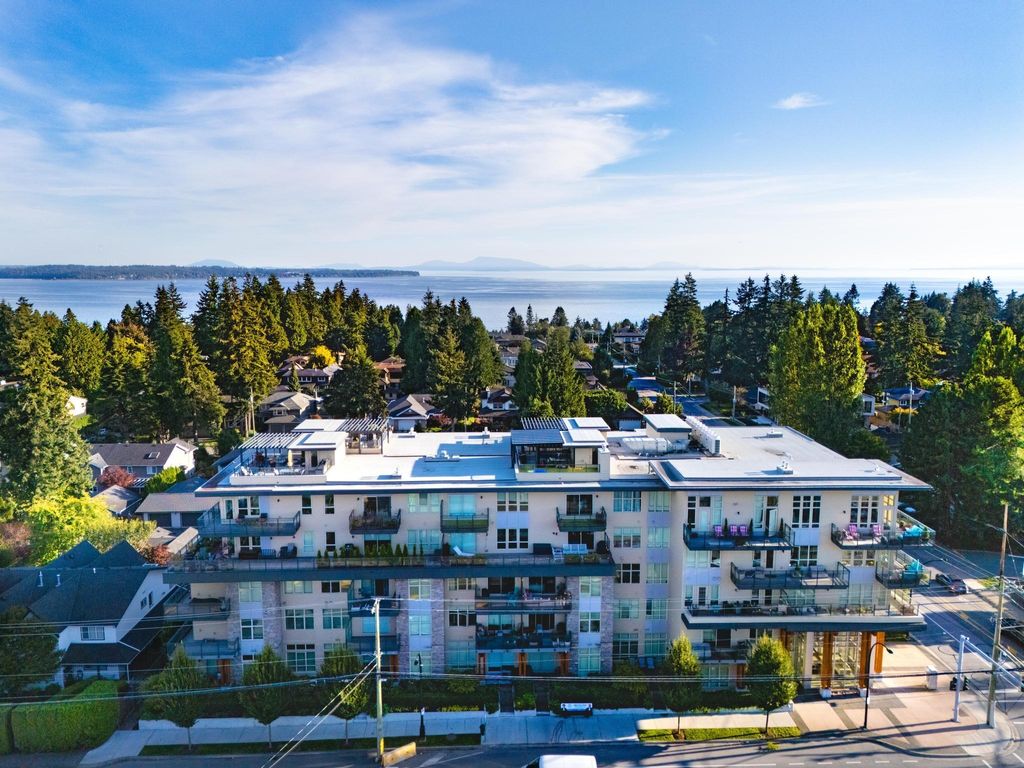 Experience luxury living in this breathtaking Ocean View penthouse. Enjoy over 1600 SF of bright, open living space with an additional 960 SF patio space including a private rooftop patio. Situated in the highly sought-after Ocean Park area of White Rock, this home offers a peaceful retreat within walking distance to the beach and shops. Located in a residential area away from the concrete landscape, it ensures that potential tower developments will not obstruct your breathtaking ocean views or infringe on your privacy from neighboring homes. Away from the hustle with only 51 units, it offers serenity and ocean views, creating a serene and inviting environment. Complete with a gourmet kitchen, a spacious living area for entertaining, this 2BDRM + Den is truly your perfect home! Don't Wait.