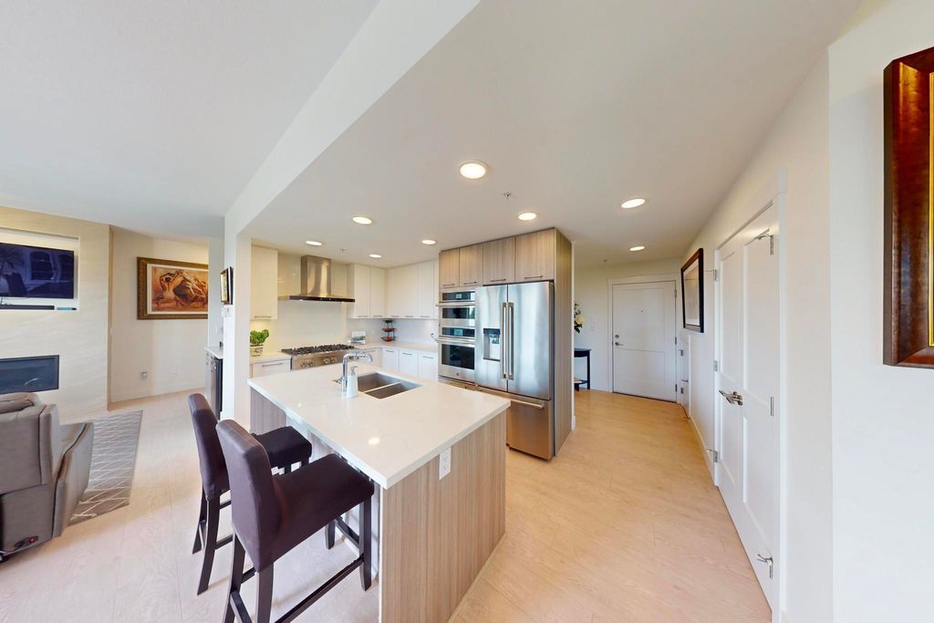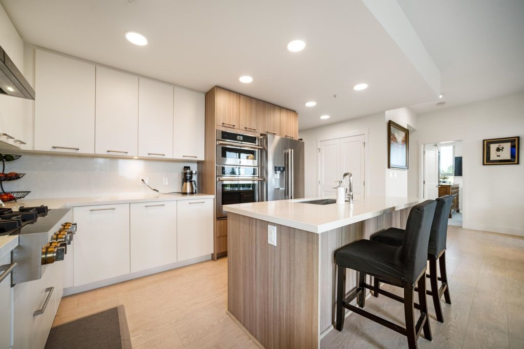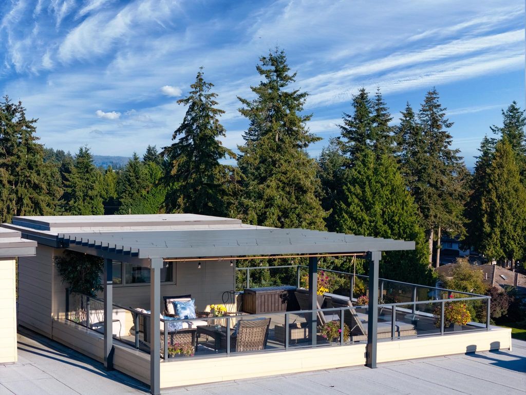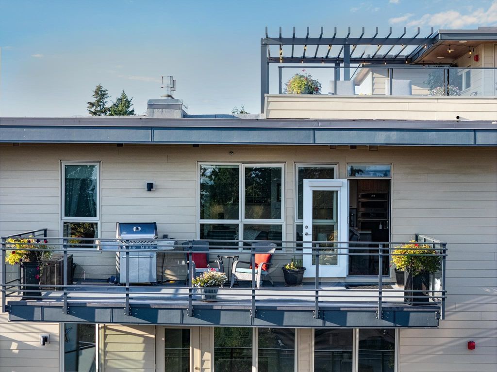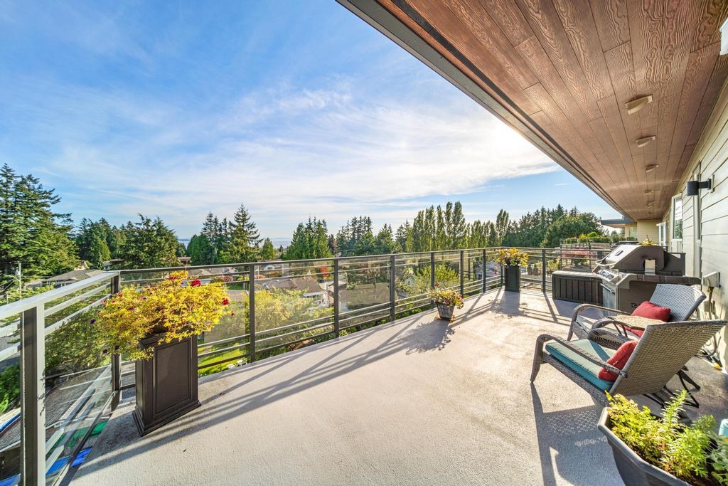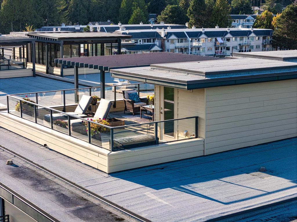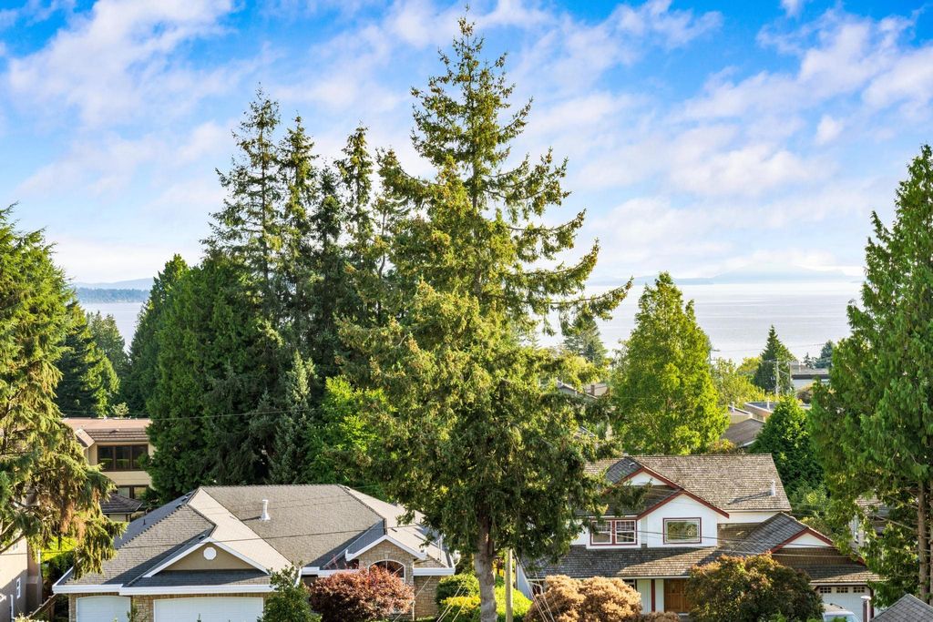 Experience luxury living in this breathtaking Ocean View penthouse. Enjoy over 1600 SF of bright, open living space with an additional 960 SF patio space including a private rooftop patio. Situated in the highly sought-after Ocean Park area of White Rock, this home offers a peaceful retreat within walking distance to the beach and shops. Located in a residential area away from the concrete landscape, it ensures that potential tower developments will not obstruct your breathtaking ocean views or infringe on your privacy from neighboring homes. Away from the hustle with only 51 units, it offers serenity and ocean views, creating a serene and inviting environment. Complete with a gourmet kitchen, a spacious living area for entertaining, this 2BDRM + Den is truly your perfect home! Don't Wait.