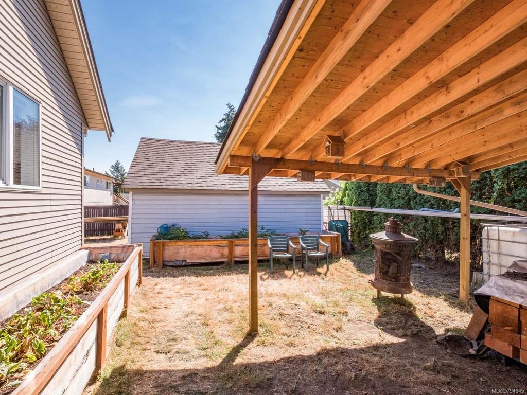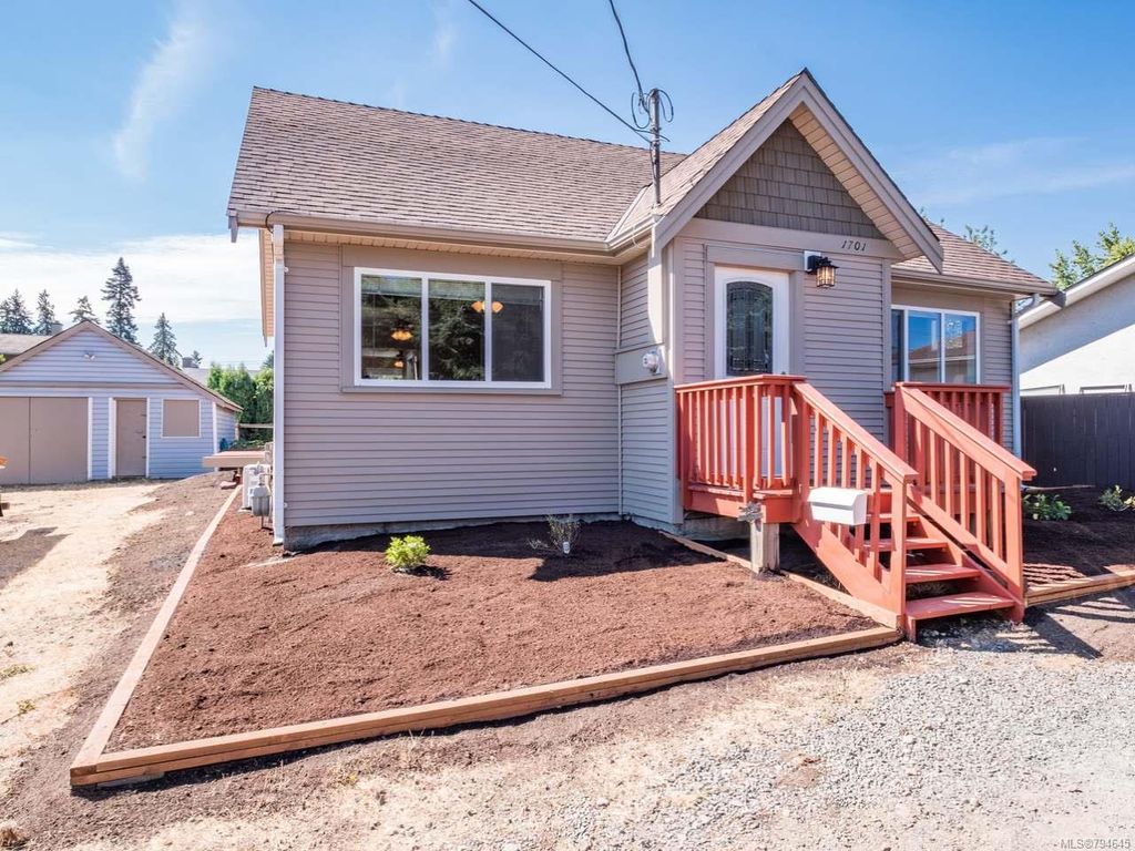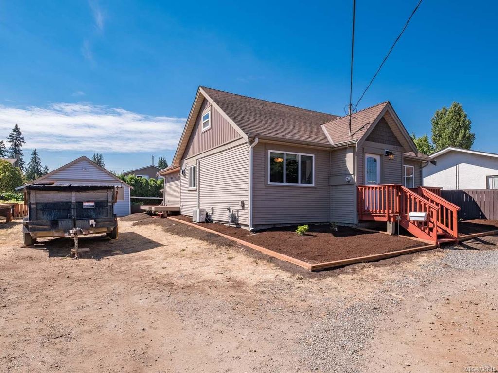 Excellent value in this updated 2 story home ideal for a young family or retirees located in Central Nanaimo. If you are looking for large fenced private yard, detached shop with 220 amp service, storage shed, RV parking, custom built garden beds, 2 decks & plenty of parking, look no further. This well cared for 3 bedroom, 1 bath & a den home has been well maintained with many recent updates which include a wonderful bright kitchen with modern white cabinetry, 4 piece bath, vinyl windows, roof, paint, flooring, exterior siding, natural gas fireplace & an energy efficient heat pump to keep you comfortable all year round. The main floor features the kitchen, living room, laundry, bathroom, & 2 bedrooms making it ideal for main floor living. Upstairs you will find 1 more bedroom & a den. You will love the private deck located just off the kitchen & the garden boxes for fresh veggies. Located on a bus route, & close to schools, shopping & Nanaimo Hospital. All measurements are approx.