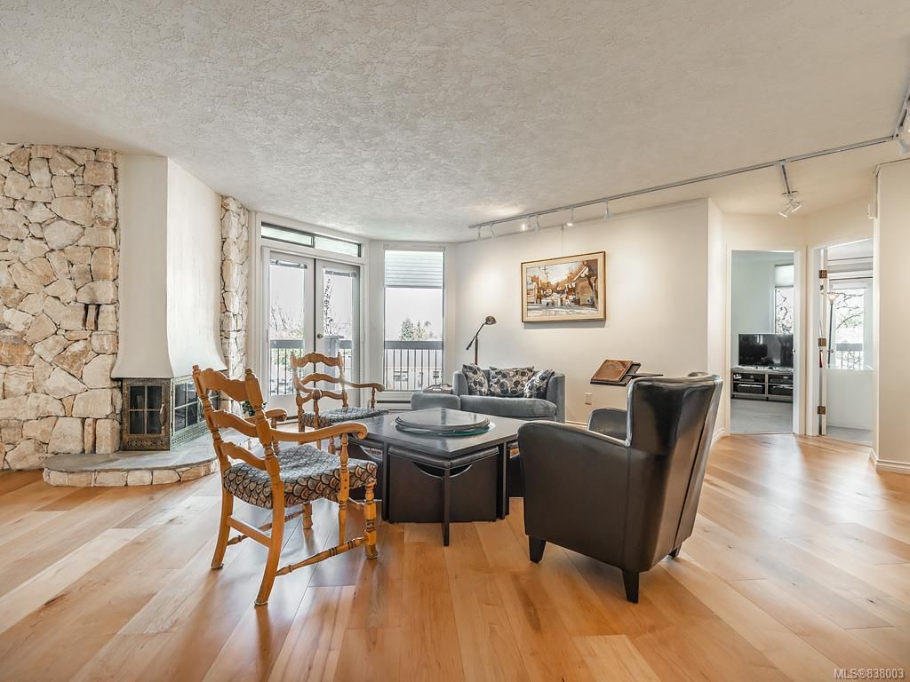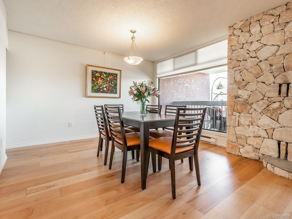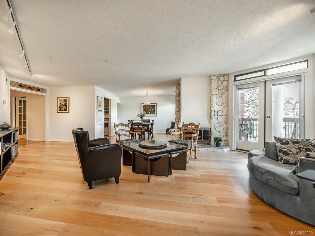 This spacious steel and concrete unit offers over 1500sqft. Good sized kitchen with eating area/work space, cozy cork floors, tile backsplash, and bright cabinets. you will love the Spacious dining room/living room combo with floor to ceiling windows, wide plank engineered maple floors, and fireplace. There is a deck off of the dining room as well. Large master bedroom with private deck and full ensuite, second bedroom and bathroom and in-suite laundry. Secure underground parking stall, storage locker, workshop, common room even 2 guest suites. This could be your opportunity to live in the hub of the vibrant Oak Bay village with every conceivable amenity a short stroll away. Call now.