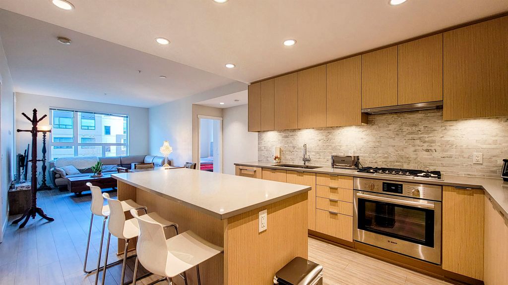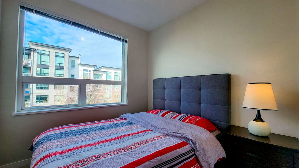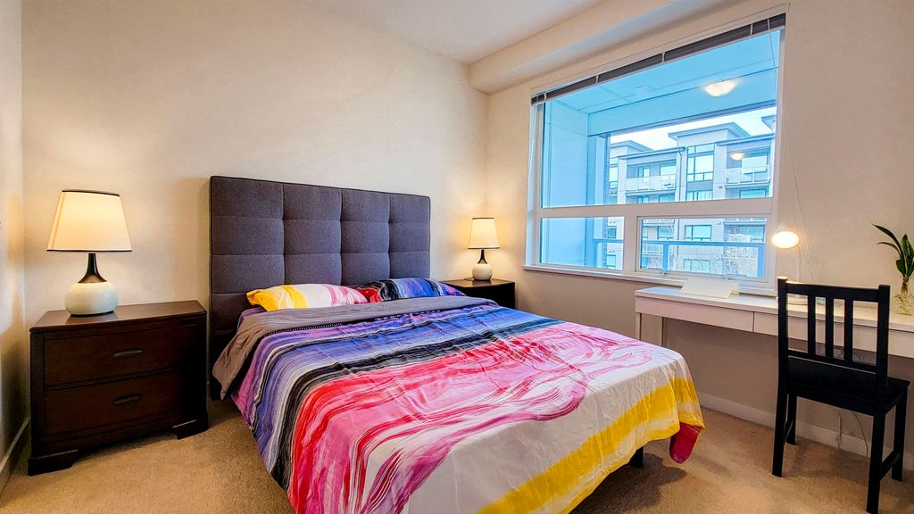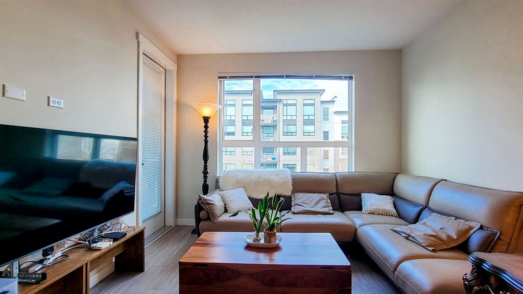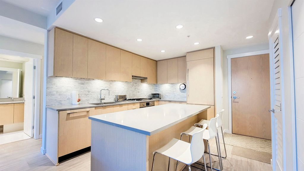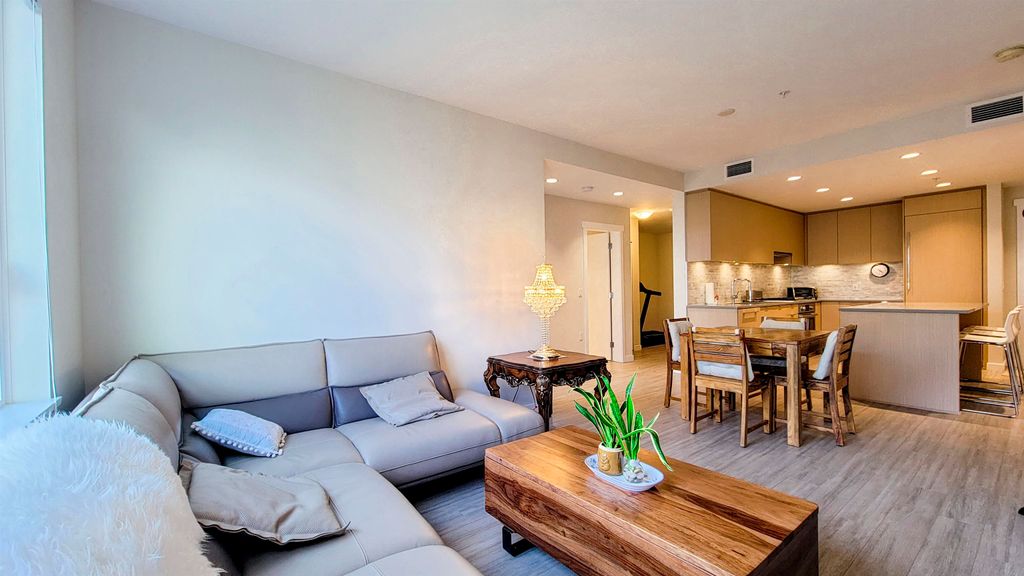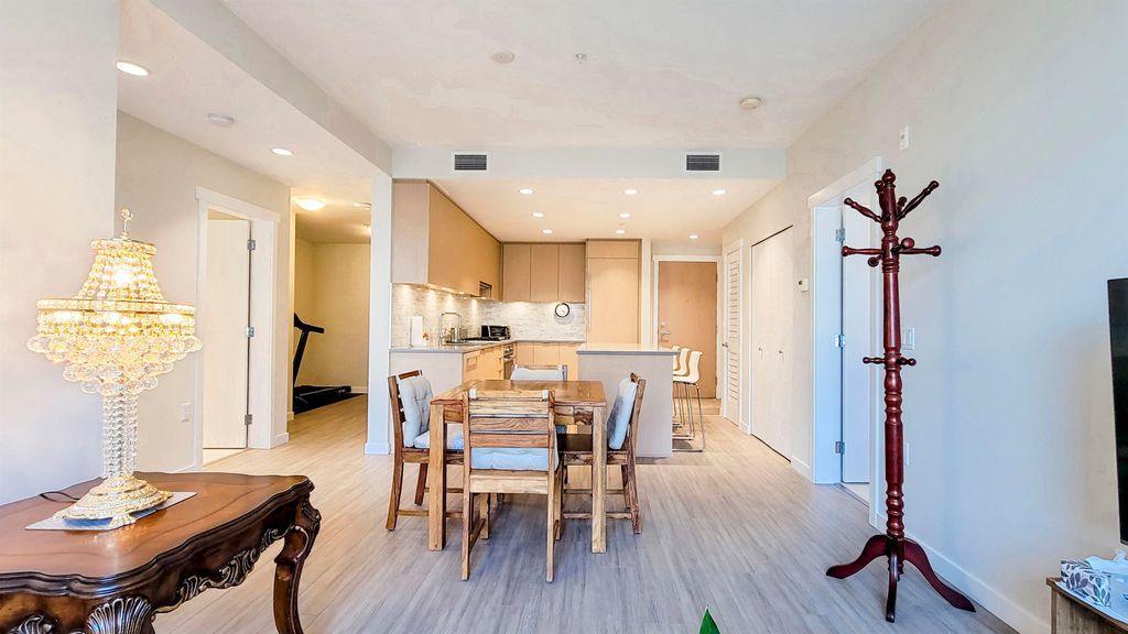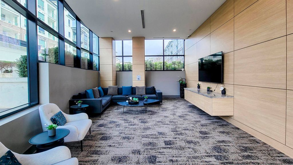 In the Polygon's Berkeley House is this quiet courtyard facing unit. This spacious, 948 sq.ft. unit has 2 bedrooms + den, 2 full baths, 9' ceiling, A/C system, open concept kitchen with stainless steel appliances, island in the middle, quartz counter top with lots of working space. Connecting to the kitchen is the dining room and living room with a big window with lots of natural light, make the unit warm and welcoming. This unit also comes with 1 EV ready parking and a storage locker. Residents have exclusive use of the club house, gym, music room, and table tennis. Walking distance to Walmart and plenty of restaurants. A must see for families. Updated maintenance fee will be provided shortly.