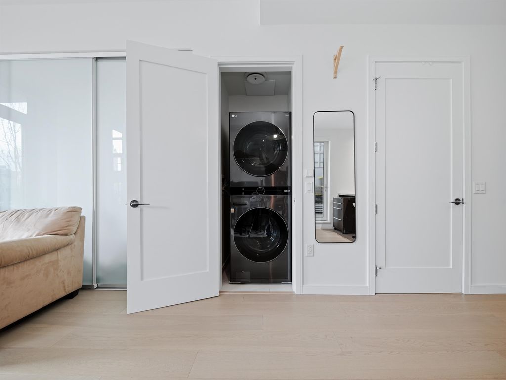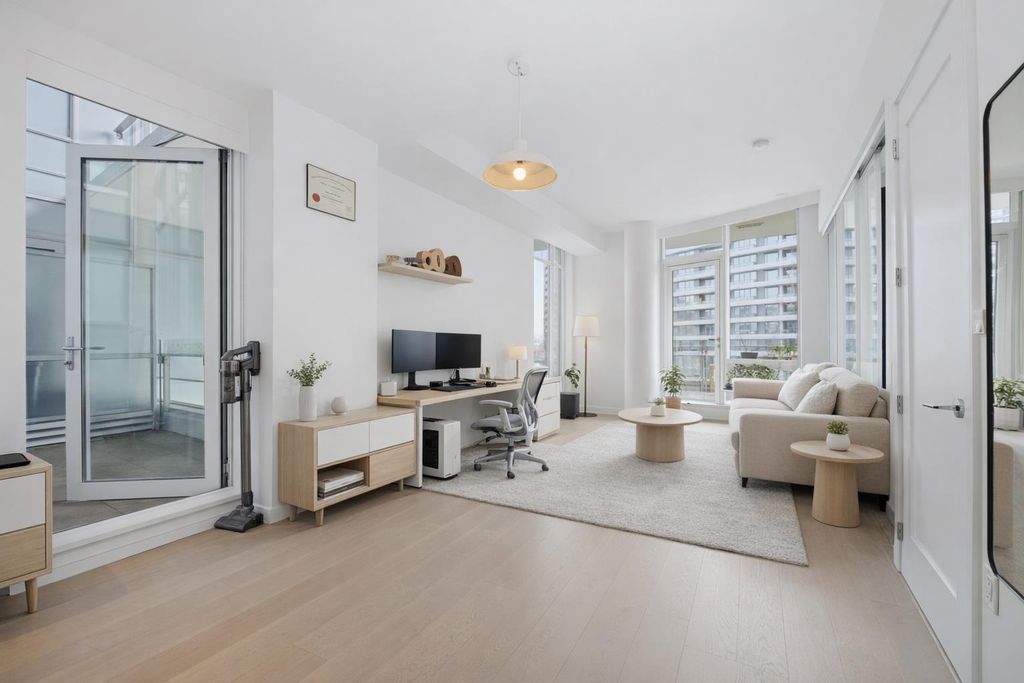 Beautiful 1 Bed + Den with views of the upcoming park & greenway, Science World in Olympic Village! This well-designed home features a spacious living room and an open-concept kitchen with premium Miele appliances, including a gas cooktop, oven, and dishwasher, plus a Sub-Zero refrigerator. Enjoy year-round comfort with geothermal heating and cooling. Comes with 1 EV parking stall and 2 storage lockers. Residents enjoy access to Gold Medal Club, a 6,000 sq.ft. amenity featuring an indoor pool, hot tub, sauna, steam room, fitness centre, and resident lounge. Located in the vibrant heart of Olympic Village, the urban plaza is anchored by Urban Fare, London Drugs, and many shops and restaurants. Just steps to the Canada Line & Expo Line SkyTrain stations, bus routes,AquaBus,and the Seawall.