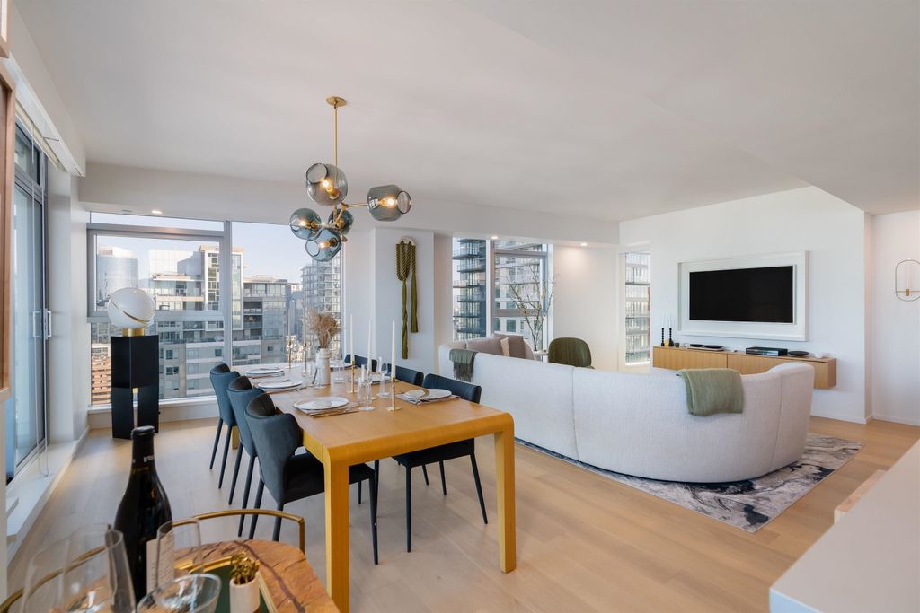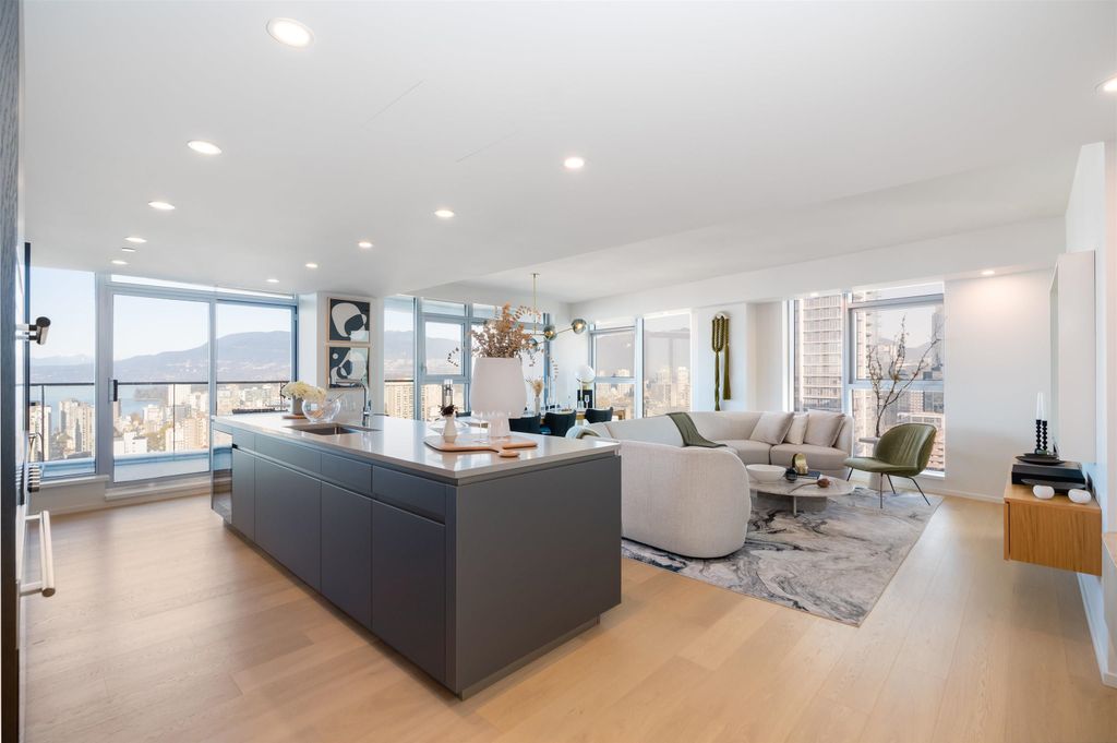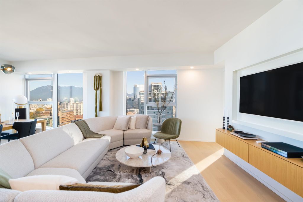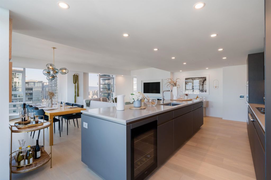 THE PACIFIC! A timeless design, World Class views, elegant home in Downtown Vancouver. Featuring panoramic views of quintessential views of English Bay, Mountains & the City Skyline. This well-appointed 1590 sf, 3 Bed, 3 Bath & Flex features an open concept living, with meticulously planned interiors for ultimate form & function. Italian millwork by Snaidero is custom-configured for every kitchen, outfitted with luxury appliances from Sub-Zero, Wolf and Miele. The architecture reflects a desire for quiet sophistication that commands attention without extravagance. The balcony stretches the full width of the home for maximum natural light & views. Amenities include 24-hour concierge, Fitness Gym, Lounge, Games Room & outdoor terrace with outdoor kitchen. Incl. 2 parking & storage rooms.