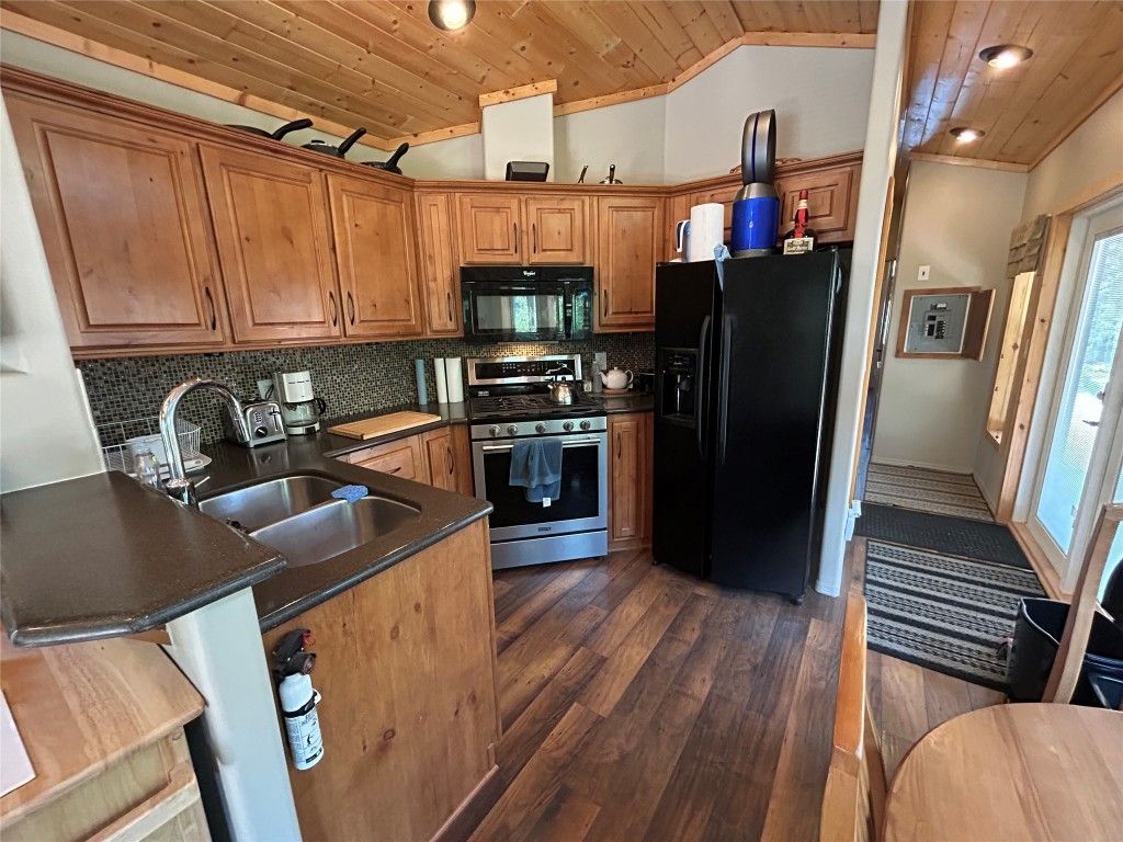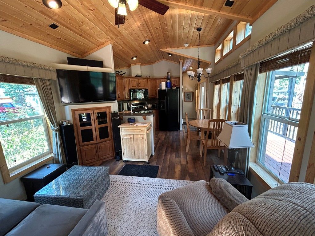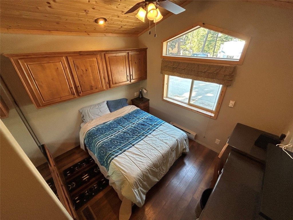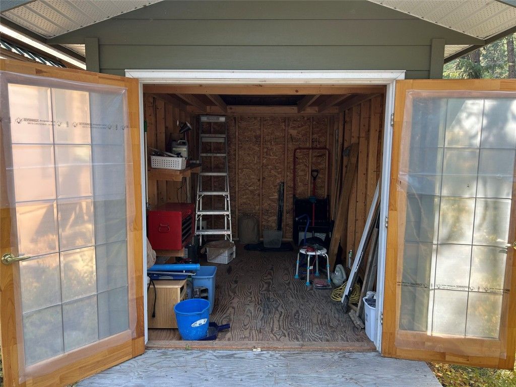 This charming 2-bedroom cottage is nestled on the largest lot in the resort community, tucked away in a peaceful, forested setting on Peachland’s upper Trepanier Bench. Perfect for outdoor enthusiasts, it’s just minutes from Okanagan Lake, hiking, golfing, shopping, and more. This home offers modern comfort with character. The vaulted-ceiling primary bedroom is brightened by oversized windows, while the second bedroom features a built-in bunk-style bed. The kitchen boasts stainless steel appliances, including a gas range, microwave, plus a convenient in-suite washer and dryer. The cozy living room includes ample space for. afamily hang out and opens through French doors onto a spacious private deck with both sun and shade—ideal for relaxing or entertaining. A 50-amp service powers the home, which is also wired for cable, phone, and internet, and equipped with A/C. The storage shed offers potential to be insulated and finished as a rustic “camping-style” extra bedroom. Parking for three vehicles and optional resort mailbox service add further convenience. Residents enjoy access to a brand-new community pool set for completion in May 2026, all within a tranquil 10-acre resort surrounded by natural beauty. Whether as a vacation getaway, or investment property, this cabin blends comfort, convenience, and outdoor adventure in a truly unique setting.