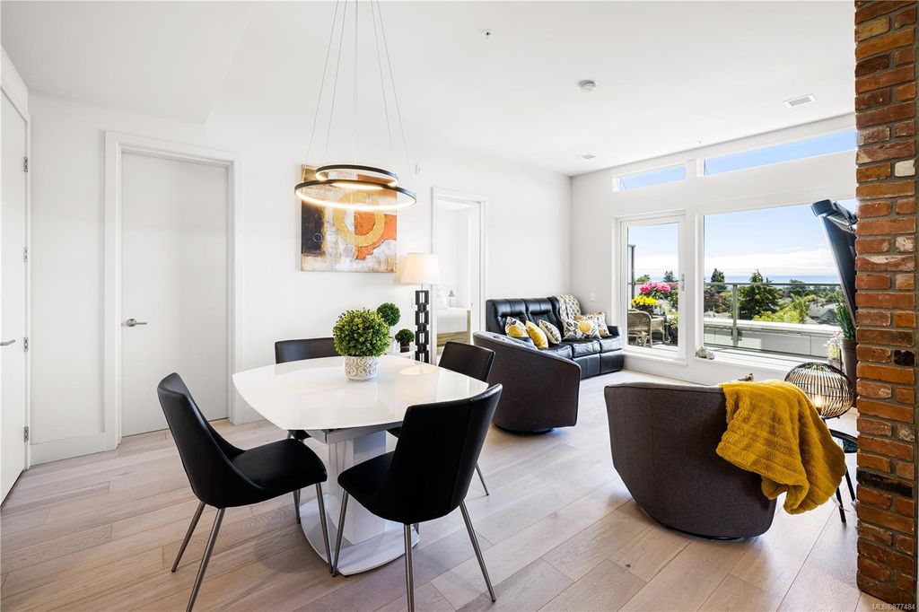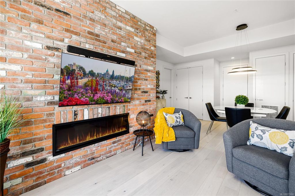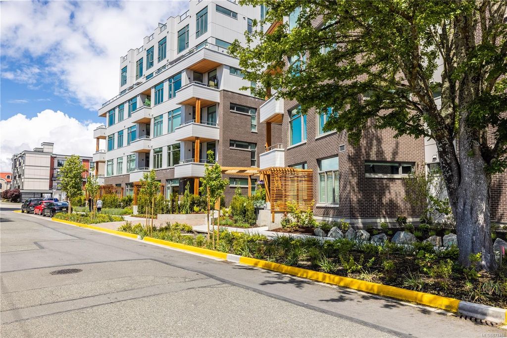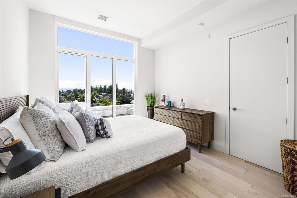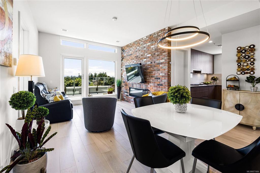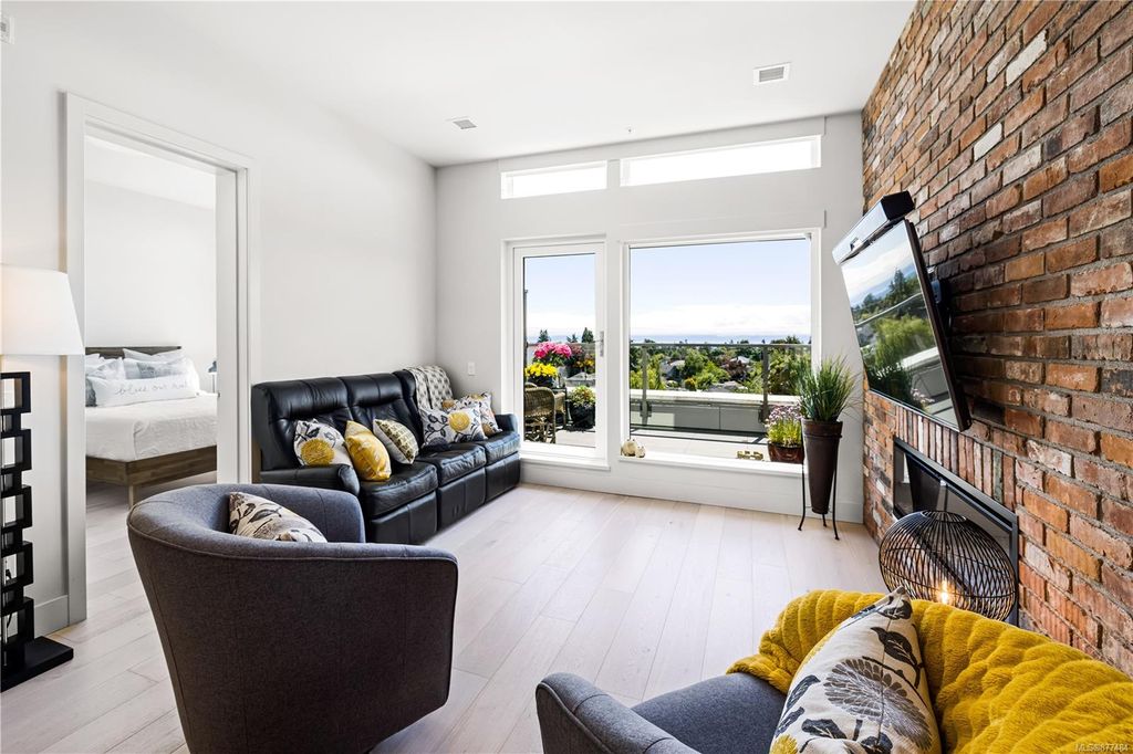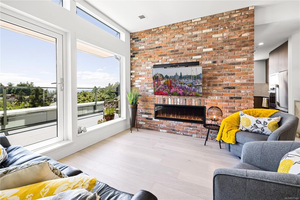 One of a kind SW facing SubPH in The Douglas @ Esquimalt Town Square. This highly sought after 2 bed, 2 bath + DEN home has over height 9’6” ceilings, 8' solid core doors, expansive windows. Interiors feature custom built-ins throughout, wide-plank oak hardwood floors, premium appliance collection offers Fisher & Paykel Refrigerator, Bosch wall oven, gas cooktop & dishwasher, Benson custom cabinetry, full-size LG washer & dryer. The living room features locally-sourced brick feature wall with 52" electric fireplace. NU-Heat floors in master ensuite. Amenities include Geothermal Heating & Cooling, Bike Room, Kayak Storage, Elevator, 1 EV parking stall, 1 motorcycle parking, storage locker, Central Location, Recreation Nearby, Shopping Nearby. Open Sat June 5th 11-5 and Sun June 6th 11-5 book appointment