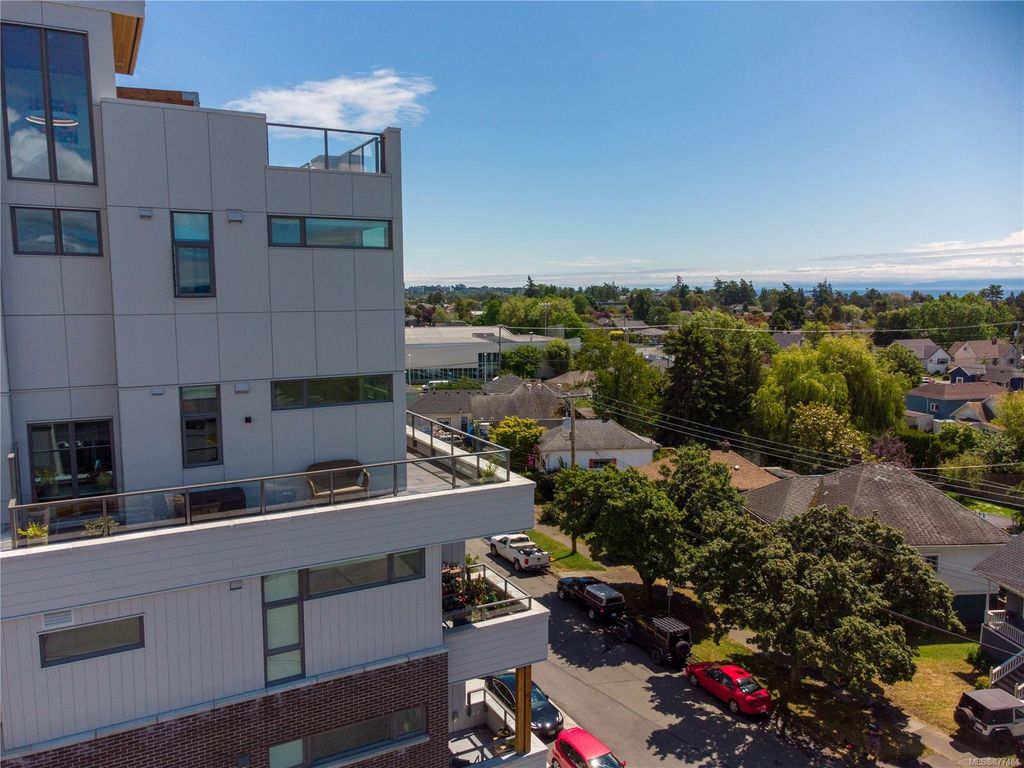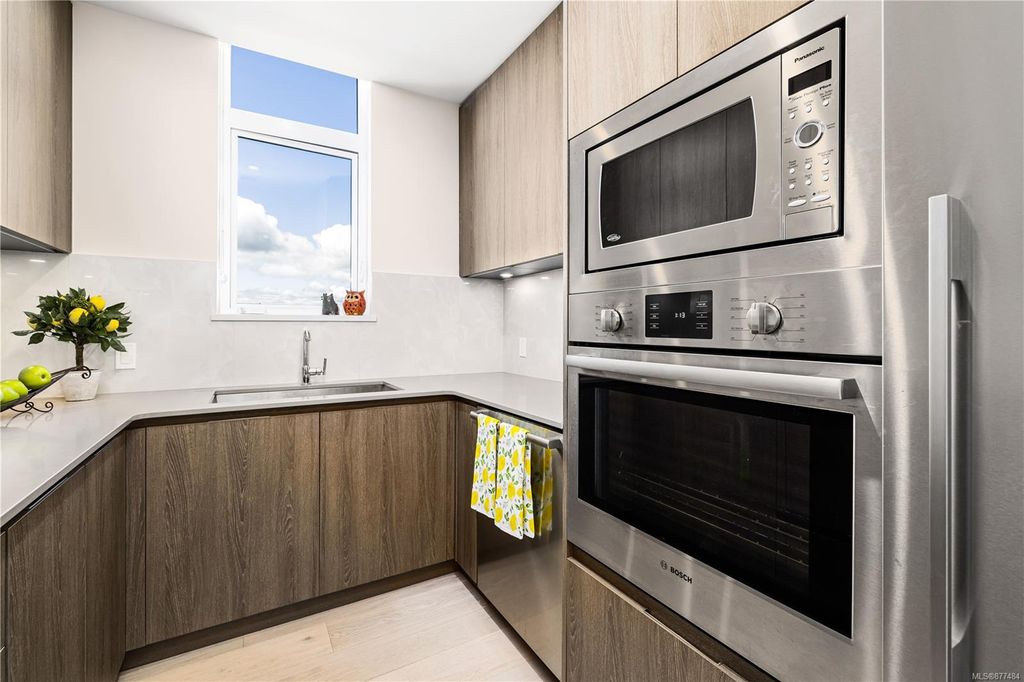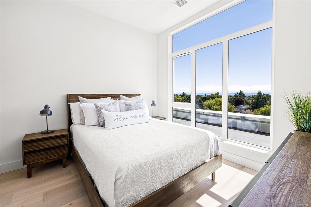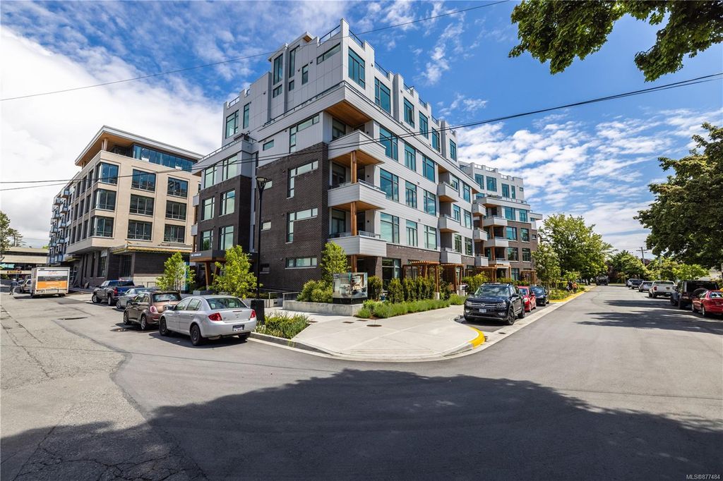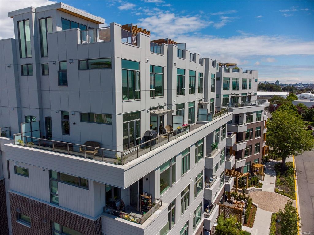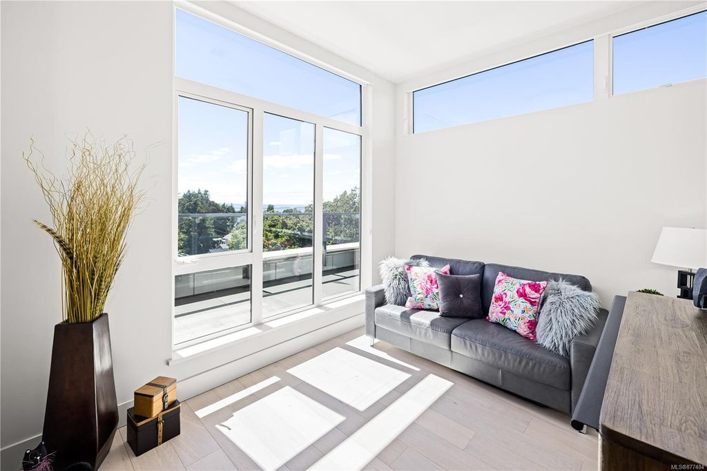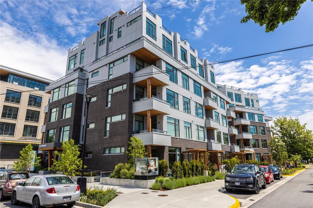 One of a kind SW facing SubPH in The Douglas @ Esquimalt Town Square. This highly sought after 2 bed, 2 bath + DEN home has over height 9’6” ceilings, 8' solid core doors, expansive windows. Interiors feature custom built-ins throughout, wide-plank oak hardwood floors, premium appliance collection offers Fisher & Paykel Refrigerator, Bosch wall oven, gas cooktop & dishwasher, Benson custom cabinetry, full-size LG washer & dryer. The living room features locally-sourced brick feature wall with 52" electric fireplace. NU-Heat floors in master ensuite. Amenities include Geothermal Heating & Cooling, Bike Room, Kayak Storage, Elevator, 1 EV parking stall, 1 motorcycle parking, storage locker, Central Location, Recreation Nearby, Shopping Nearby. Open Sat June 5th 11-5 and Sun June 6th 11-5 book appointment