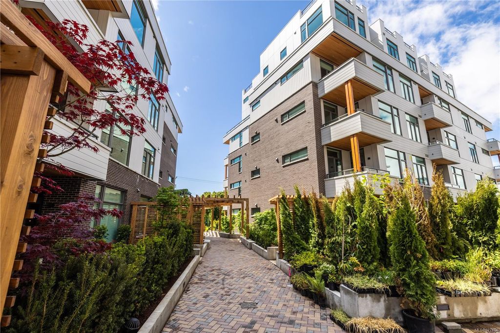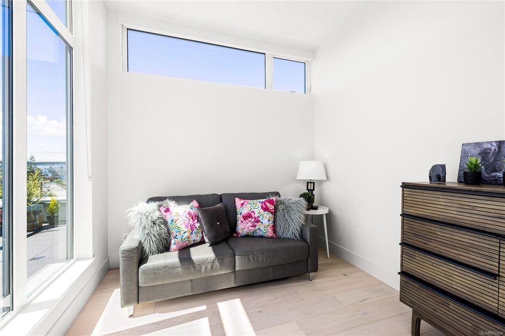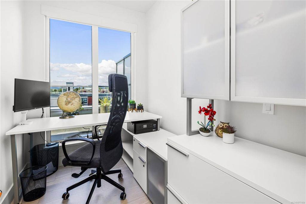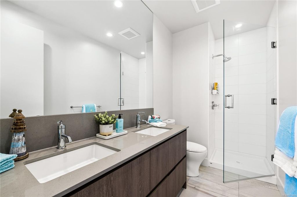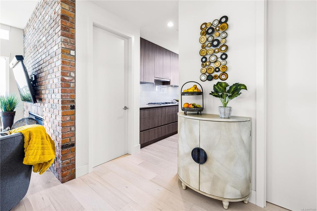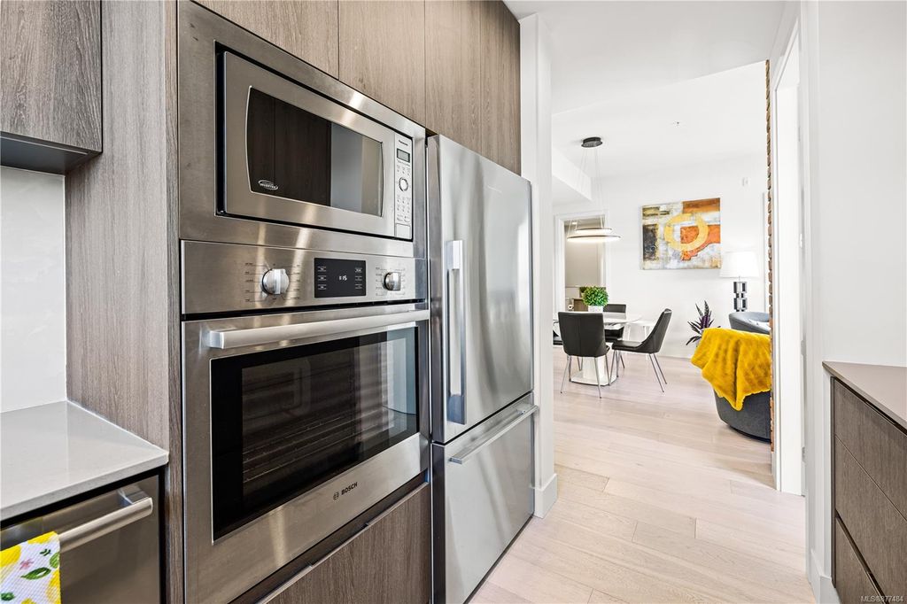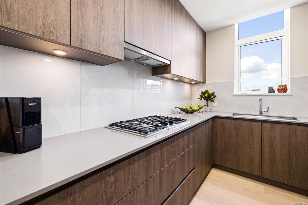 One of a kind SW facing SubPH in The Douglas @ Esquimalt Town Square. This highly sought after 2 bed, 2 bath + DEN home has over height 9’6” ceilings, 8' solid core doors, expansive windows. Interiors feature custom built-ins throughout, wide-plank oak hardwood floors, premium appliance collection offers Fisher & Paykel Refrigerator, Bosch wall oven, gas cooktop & dishwasher, Benson custom cabinetry, full-size LG washer & dryer. The living room features locally-sourced brick feature wall with 52" electric fireplace. NU-Heat floors in master ensuite. Amenities include Geothermal Heating & Cooling, Bike Room, Kayak Storage, Elevator, 1 EV parking stall, 1 motorcycle parking, storage locker, Central Location, Recreation Nearby, Shopping Nearby. Open Sat June 5th 11-5 and Sun June 6th 11-5 book appointment