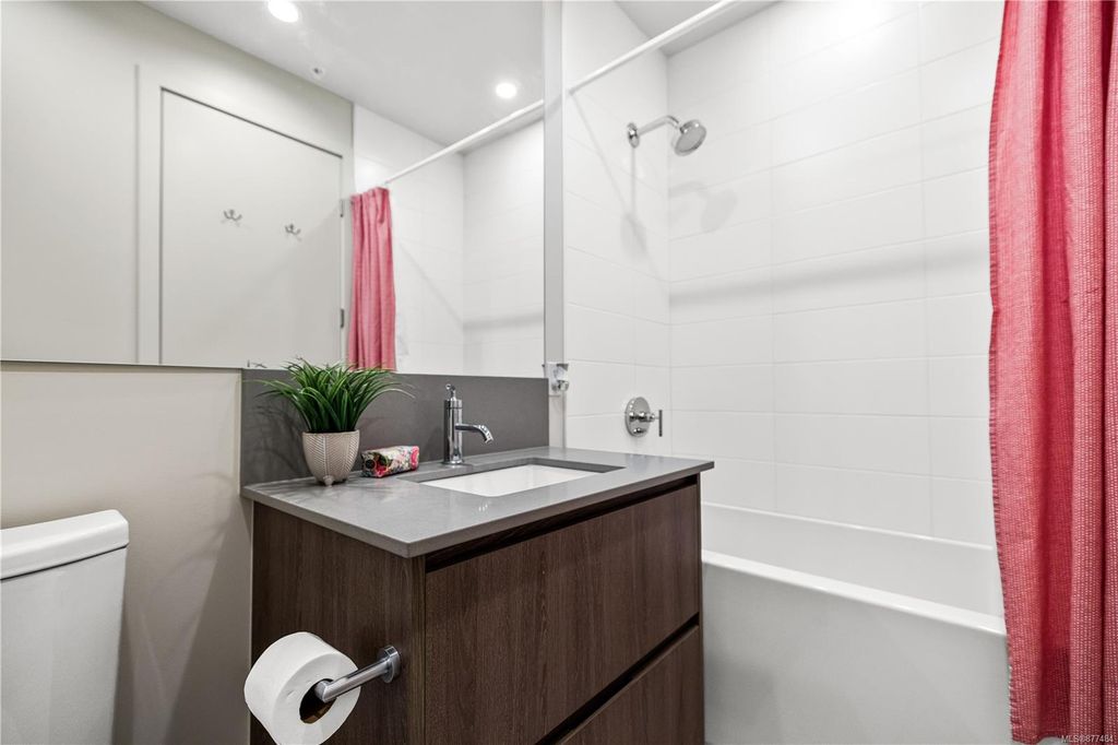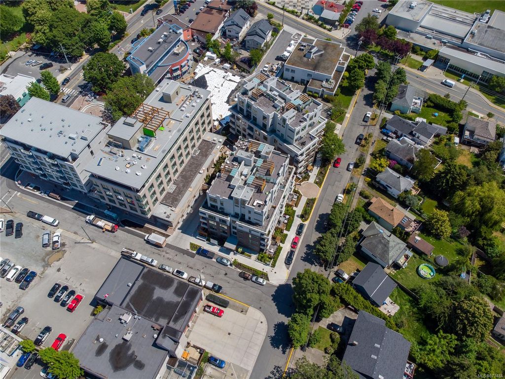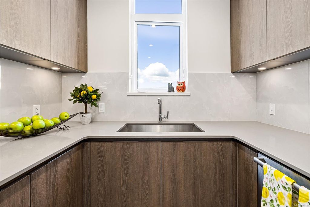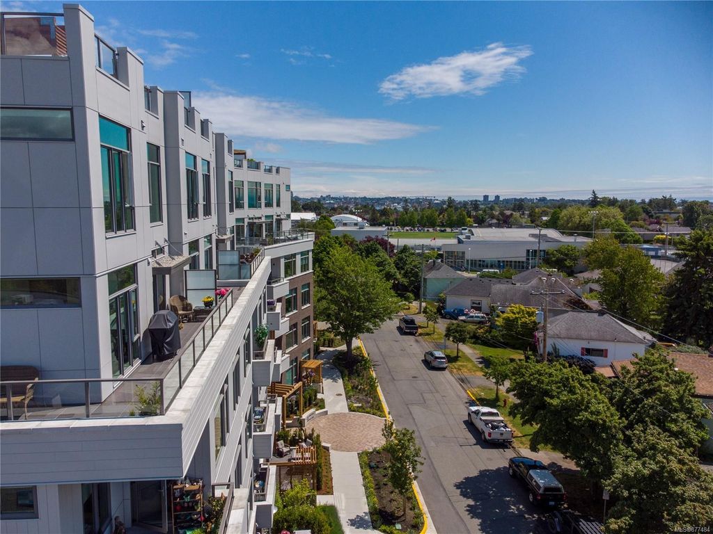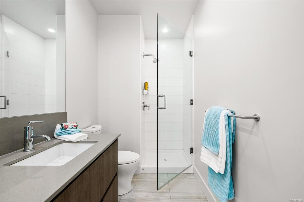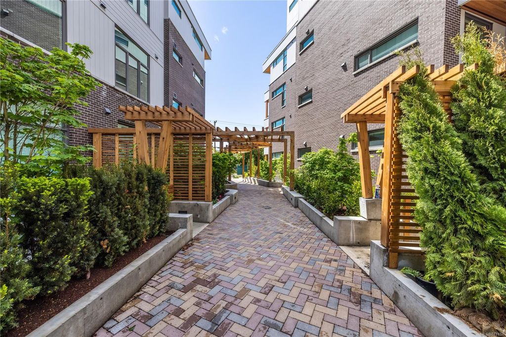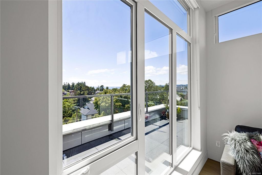 One of a kind SW facing SubPH in The Douglas @ Esquimalt Town Square. This highly sought after 2 bed, 2 bath + DEN home has over height 9’6” ceilings, 8' solid core doors, expansive windows. Interiors feature custom built-ins throughout, wide-plank oak hardwood floors, premium appliance collection offers Fisher & Paykel Refrigerator, Bosch wall oven, gas cooktop & dishwasher, Benson custom cabinetry, full-size LG washer & dryer. The living room features locally-sourced brick feature wall with 52" electric fireplace. NU-Heat floors in master ensuite. Amenities include Geothermal Heating & Cooling, Bike Room, Kayak Storage, Elevator, 1 EV parking stall, 1 motorcycle parking, storage locker, Central Location, Recreation Nearby, Shopping Nearby. Open Sat June 5th 11-5 and Sun June 6th 11-5 book appointment