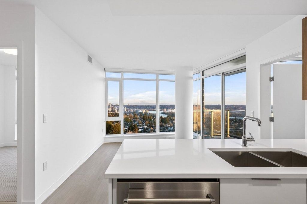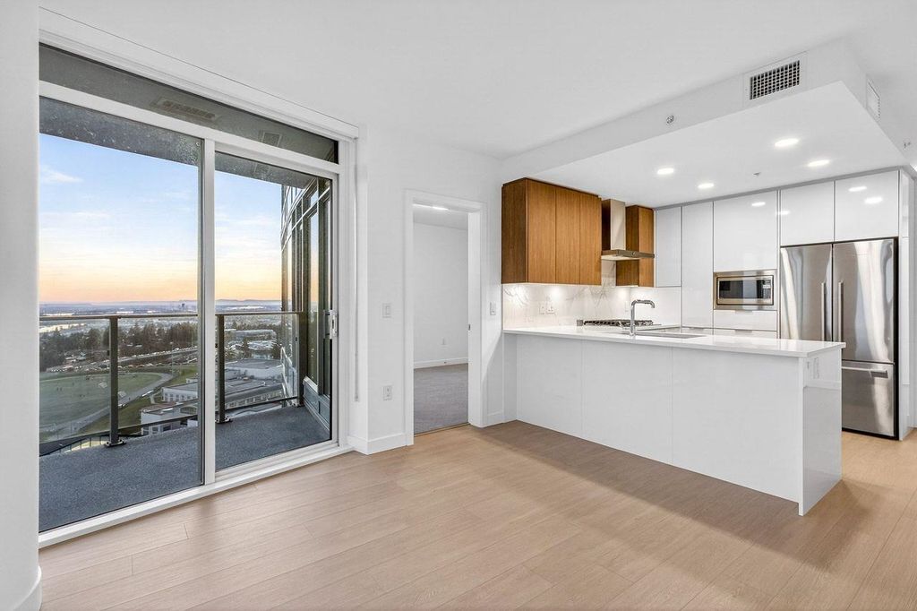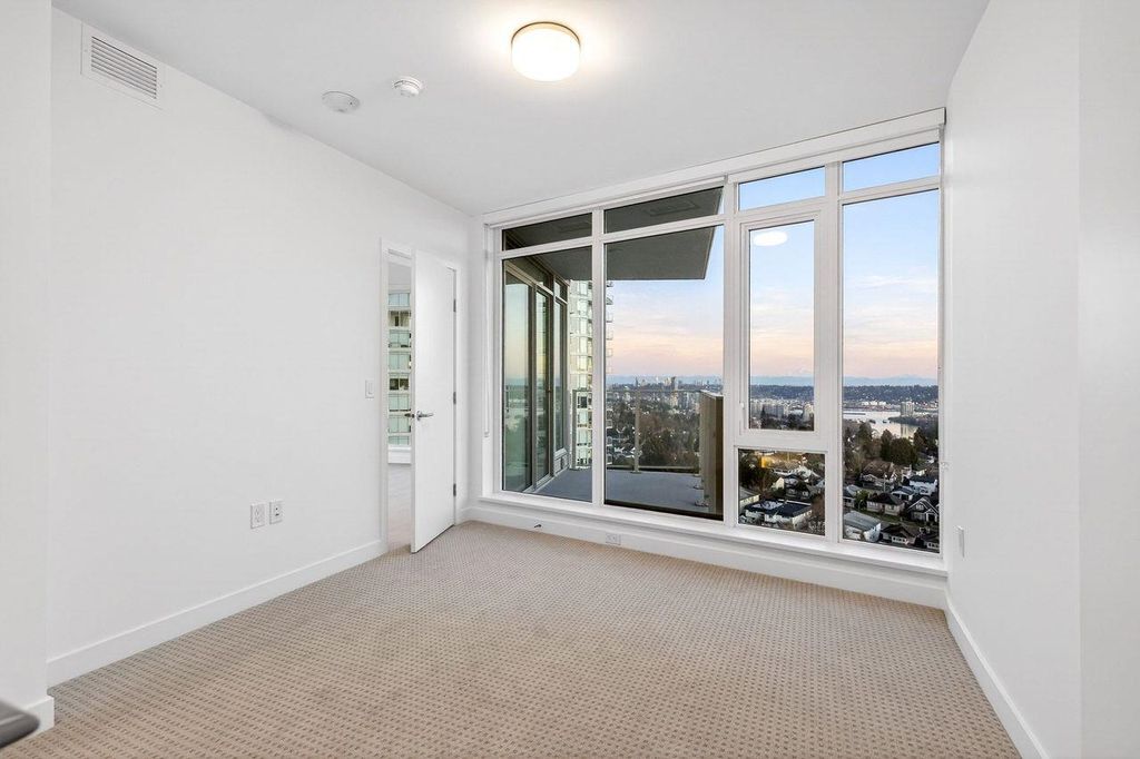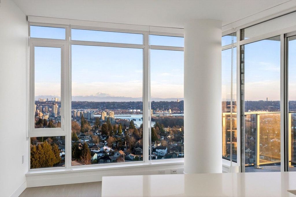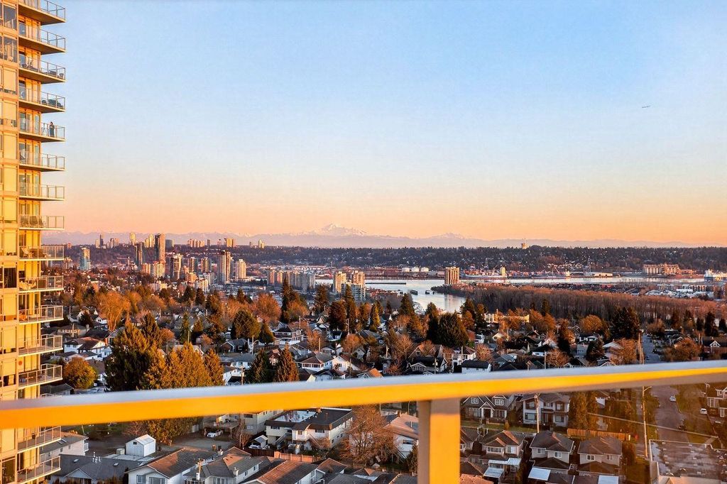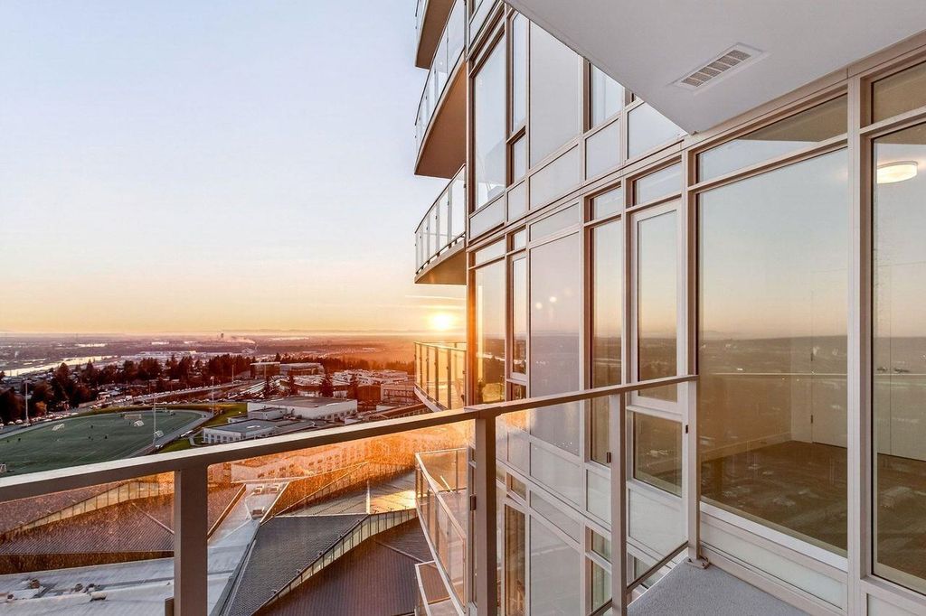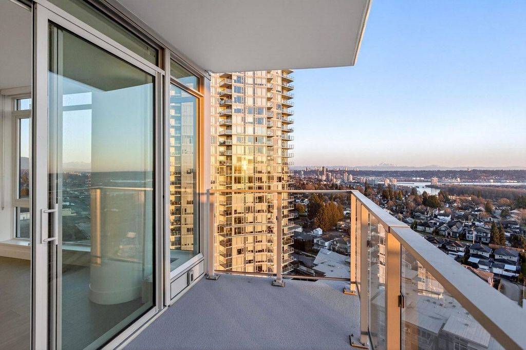 Panoramic, Unobstructed Ocean, Mountain and City Views capture the beauty of the lower mainland! This stunning south-facing 2-bedroom + den home at Azure at Southgate City offers breathtaking 180° views of the Fraser River, with Mt. Baker and White Rock visible on clear days. Floor-to-ceiling windows flood the living, dining, and bedrooms with natural light. The open-concept layout features stainless steel appliances, gas cooktop, generous kitchen storage, air conditioning, and front-loading washer/dryer. Built by renowned developer Ledingham McAllister, quality is evident throughout. Enjoy separated bedrooms for added privacy, plus premium amenities including a fully equipped gym, lounge, guest suite, and concierge. Ideally located near shopping, schools, transit, and highways.