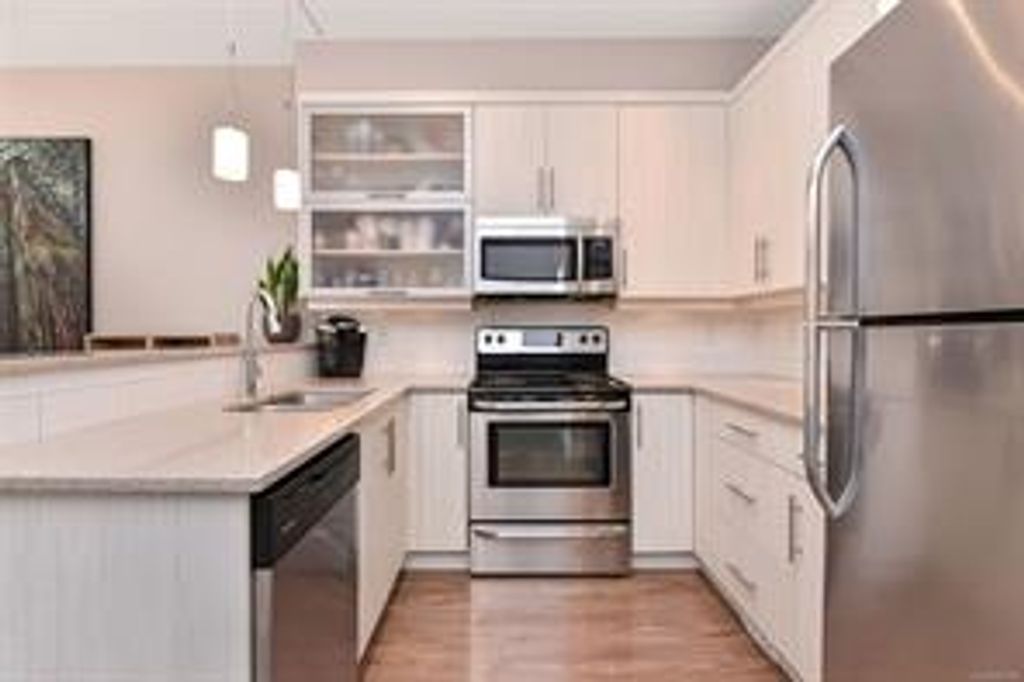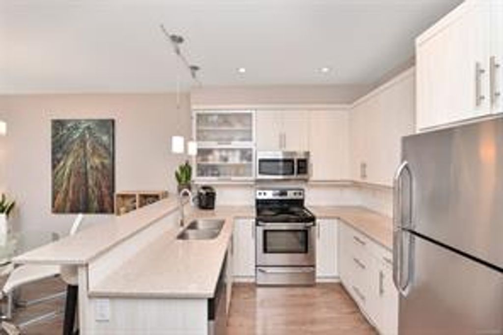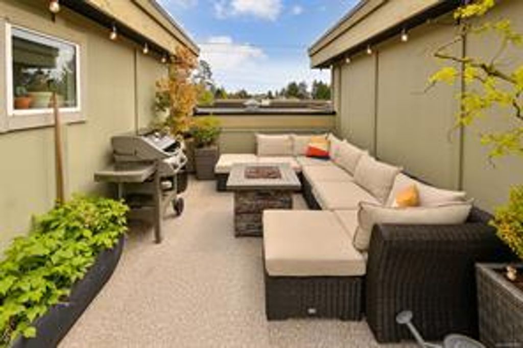 VIRTUAL O/H> HD PHOTOS, 3D MATTERPORT & FLOOR PLAN online! Welcome to this "Like New" bright & spacious 3bd 3bth Townhome that offers a private sun-drenched rooftop patio & 2 parking stalls. This quiet, bright & spacious home is located in the heart of Langford & is steps to all amenities, shopping, restaurants & everything this amazing location has to offer. If you're a first-time homebuyer, investor, moving up/down, this will tick all buyers boxes. Main offers a bright living room w/cozy FP, 9ft ceilings, dining, large modern kitchen, 3rd bdrm & 2pce bth. Upper level offers two spacious bdrms w/soaring 12fts ceilings (primary bdrm w/beautiful 3pce ensuite), 4pce bthrm & laundry. Lower level offers direct access to your garage/flex room, storage & carport. You'll love the rooftop deck, great for entertaining, gardening, relaxing & BBQ'ing. This family friendly complex allows pets, rentals & for your peace of mind, balance of home warranty is applicable. Measurements from floor plan.