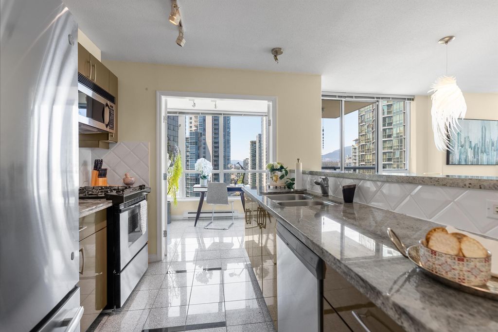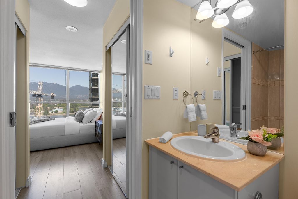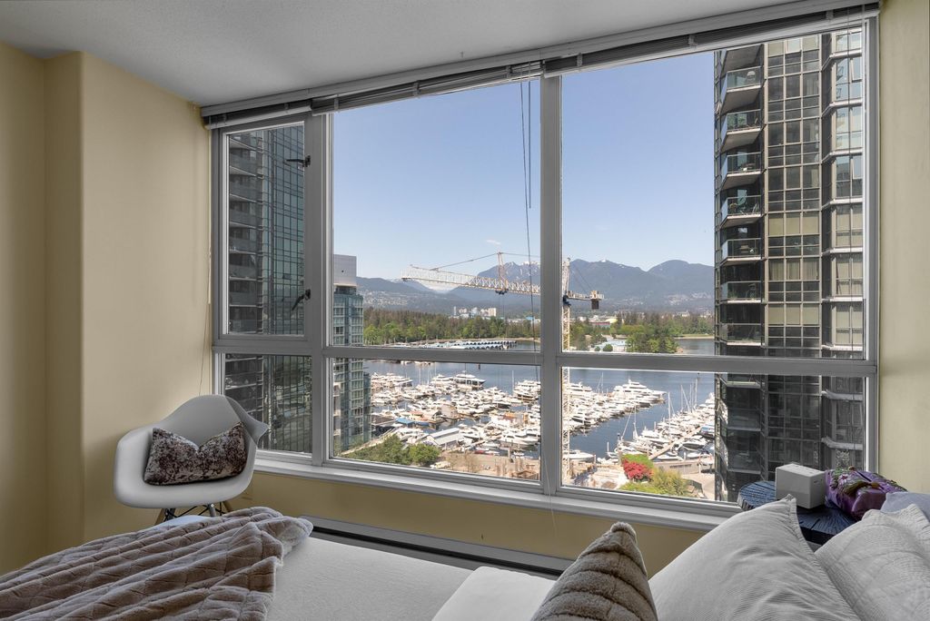 Prestigious Coal Harbour neighbourhood, luxury, convenience, and breathtaking views of water, Stanley Park, and the North Shore Mountains. open-concept layout, Gourmet Kitchen features top-of-the-line stainless steel appliances, Spacious Master bedroom with en-suite bathroom. Home office beside patio with water view. High-end Laminate flooring. Amenities include gym, swimming pool, concierge services, secure underground parking, Club House.