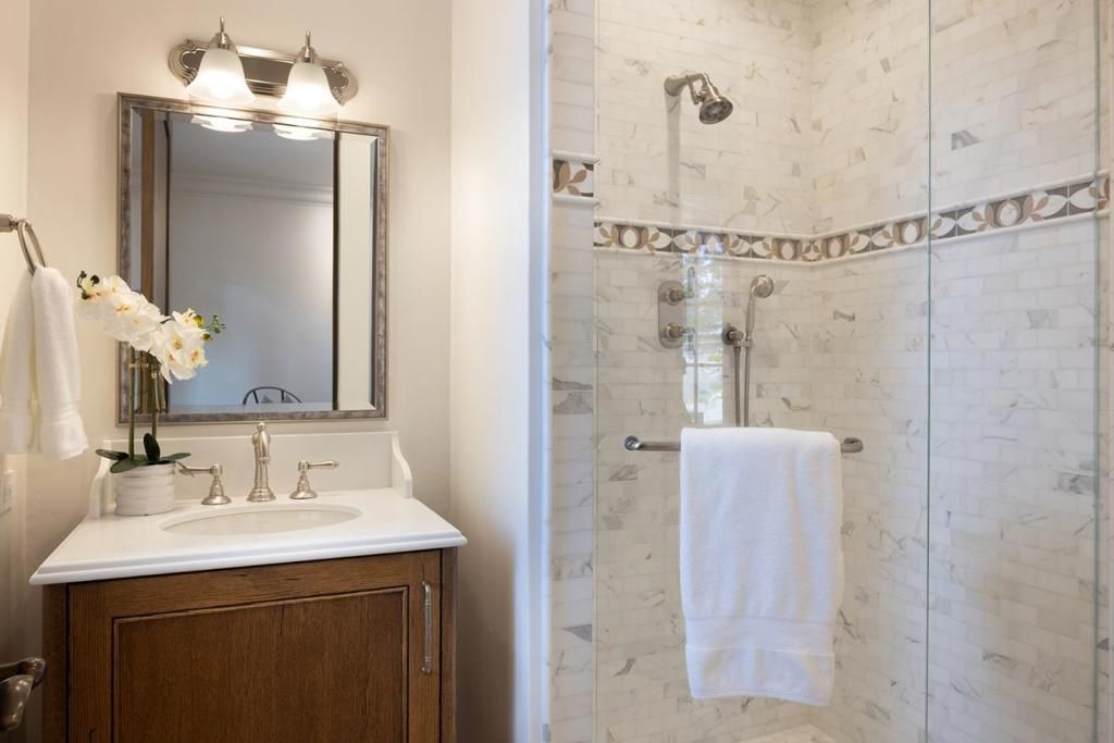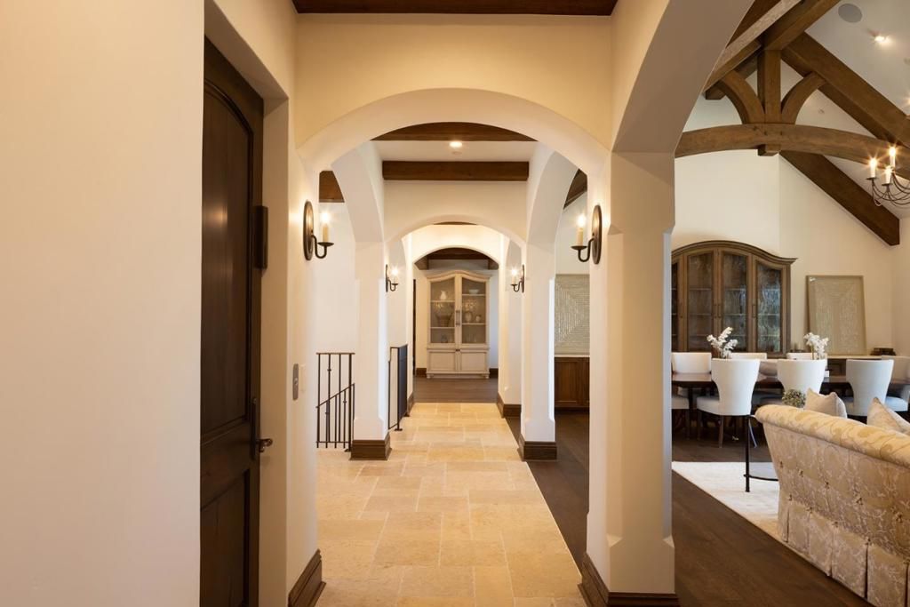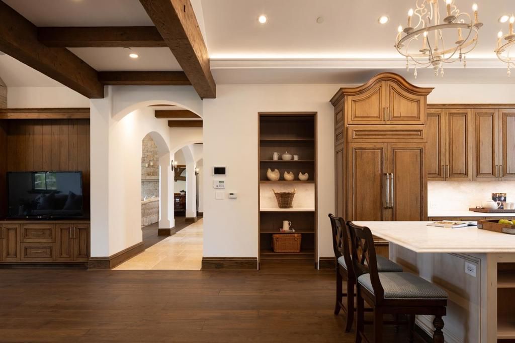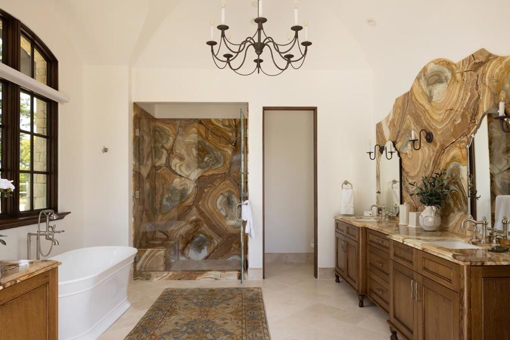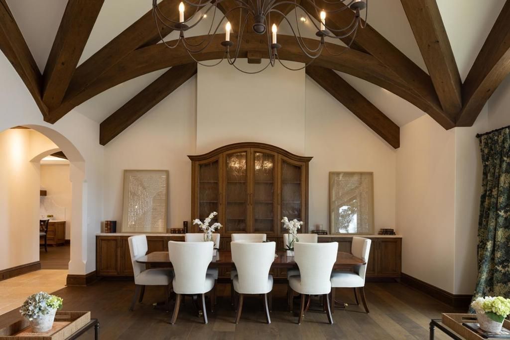 Experience timeless French country elegance at this 6,402+/- sq.ft. estate in Pebble Beach, crafted by Randy Wallis and designed by Jun Sillano of IDG. Set on 1.35 acres with panoramic views from Point Lobos to Point Sur in Big Sur and the coastline in between, this 5-bed, 6.5-bath home offers refined living in a private coastal setting. The stone entry opens to a grand living room with wide-plank wood floors, oak built-ins, and Ironware chandeliers. The gourmet kitchen features honed marble counters, Thermador appliances, a wood-clad hood, and walk-in pantry, all adjacent to a cozy family room with fireplace. A main-level primary suite includes French doors to the deck, walk-in closets, and a spa-like bath with Palomino granite and walk-out patio. Other features include an elevator connecting the main levels, a guest suite with ocean views, and a lower level with game room, multiple ensuite bedrooms, laundry, and radiant heat throughout. The 920+/- sq.ft. 3-car garage has dual EV chargers. Exterior highlights include fire pit, ocean-facing deck, uplighting, bronze railings, and room for a pool or guest unit. Quietly nestled among oaks with privacy and potential for expansion, this is Pebble Beach luxury at its finest.
