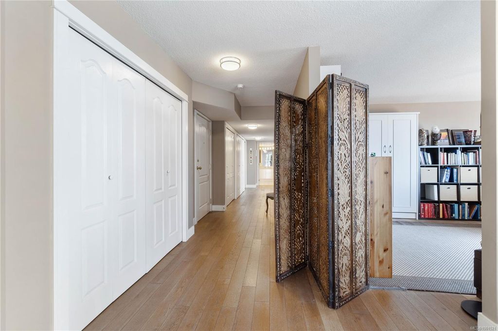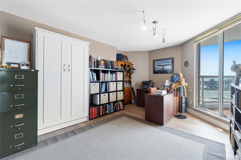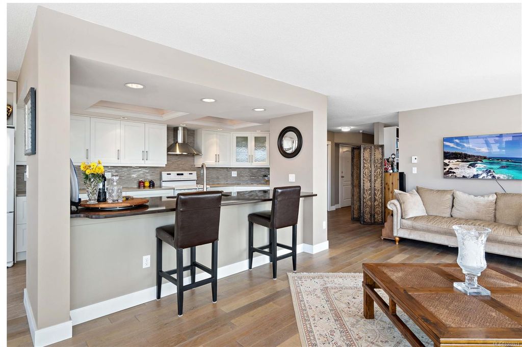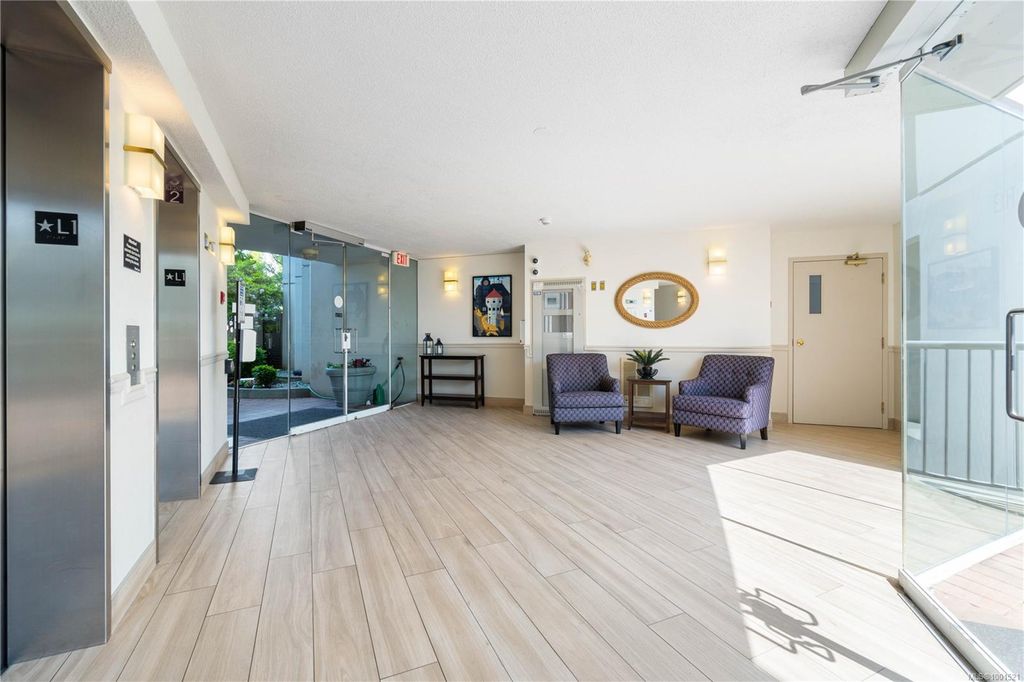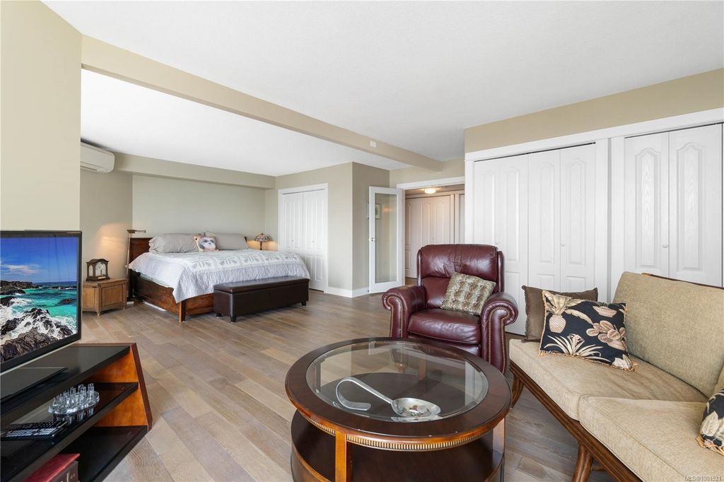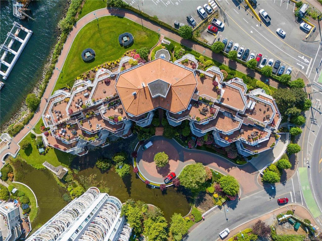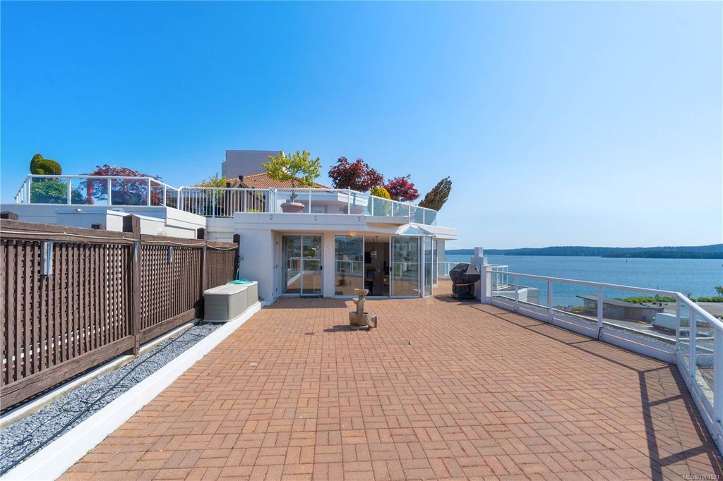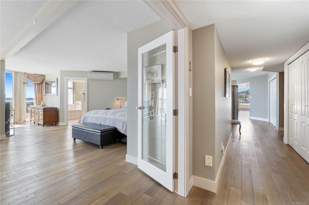 Experience luxury living in the “Gabriola” on Cameron Island, along Nanaimo’s Harbourfront Promenade! This 1,742 sq ft condo offers stunning views of Mount Benson, city lights, and the inner harbour through south and east facing floor-to-ceiling windows. The open-concept living room, dining room, and kitchen create an ideal space for entertaining. Relax by the gas fireplace or step out onto the expansive 900 sq ft patio to enjoy the panoramic views. Numerous updates include beautiful hardwood floors throughout. The kitchen features stone countertops and updated cabinetry with ample storage. The spacious primary suite, with a 4-piece ensuite, double closets, sitting area, and balcony was created by combining two bedrooms and can be restored to its original layout. Additional features include a den, heat pump, in-suite laundry, two underground parking stalls, and a storage locker. Walk to shopping, dining, and entertainment with easy access to floatplane and ferry service to Vancouver.