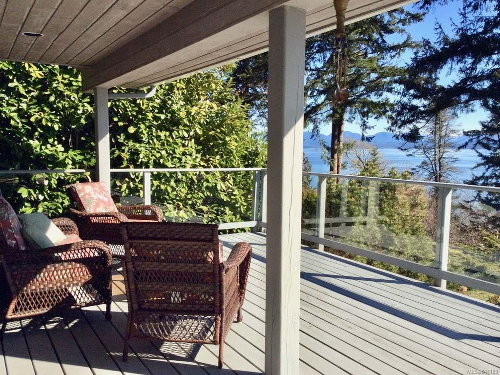 Westcoast style rancher with detached garage/guest suite on 0.48 acres featuring ocean views across Sutil Channel to Marina & Cortes Islands! The main level of the home features a bright open floor plan with a wall of windows that provide plenty of natural light & great ocean views. The living room boasts a wood fireplace with natural stone tile hearth & French doors out to the large partially covered deck. The master bedroom also has French doors that open on to the front deck. A staircase from the living room leads up to the loft that is currently used as a family room/office space. Behind the home you'll find the detached garage/guest suite. The guest suite has a kitchenette & 4 pc bathroom with 2 sinks and a private deck. The 0.48 acre property is nicely landscaped with well established garden beds & many mature fruit producing trees & vines. Located a short walk from the beach access on Wawakie Rd and Kay Dubois trail, come see all this beautiful property has to offer!