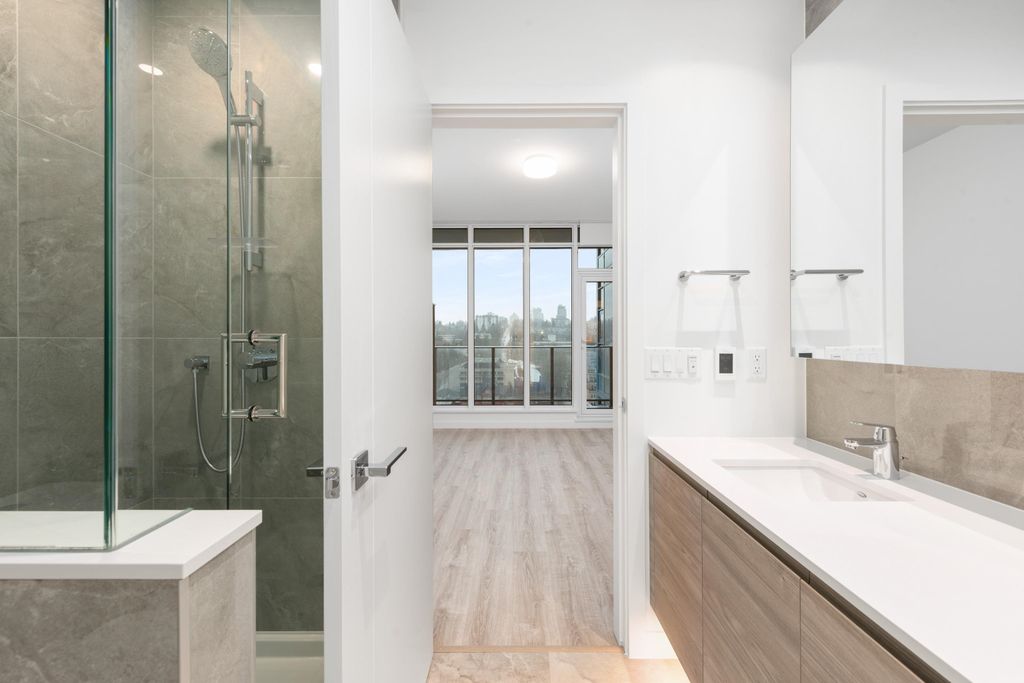 Bright 3 Bedroom, 2 Bathroom corner home with unobstructed panoramic views in PIER WEST by BOSA. Thoughtfully designed layout with wide plank laminate flooring and Air Conditioning. The sleek chef-inspired kitchen features; Bosch appliances w/ gas cooktop, wall oven, speed oven, solid slab Caesarstone waterfall countertops, matching backsplash & generous storage. The Bathrooms feature in-floor heating for added comfort & ensuite w/ double sink, under-cabinet lighting. Located just steps from skytrain, shops & services, this home ensures seamless access to City life. Amenities include; Concierge, Fitness centre, Private dining lounge, steam & sauna. 1 EV Parking & 1 Storage. OPEN HOUSE Sun Jan 18, 2:00-4:00pm