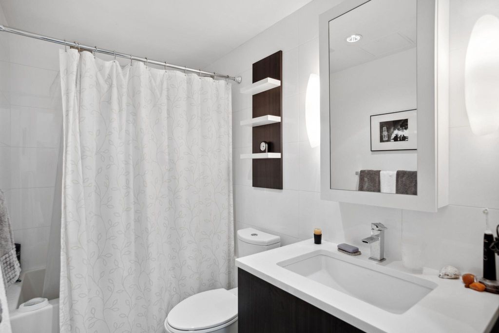 LIVE OLYMPIC VILLAGE AT OPSAL by Bastion – QUEBEC & 2nd. Perfectly laid out freshly 1 bed & den w/parking. Gourmet kitchen incl S/S full size Fisher & Paykel smart fridge, Bosch gas range + D/W, designer cabinets & quartz counters. Open concept w/generous living/dining room, featuring floor to ceiling windows. Enjoy city & mountain views w/close proximity to: seawall, transit, shopping, restaurants & breweries. 2nd owners. Unit in very good condition with balcony. Rentals and Pets Allowed. Book your showings now!