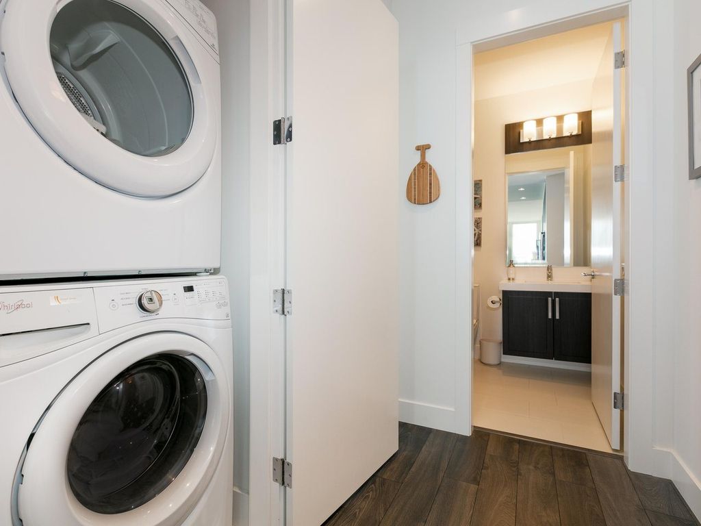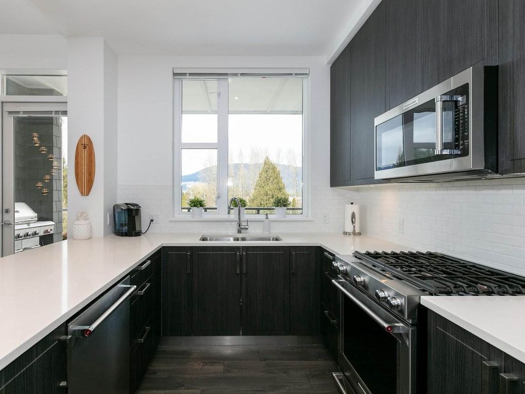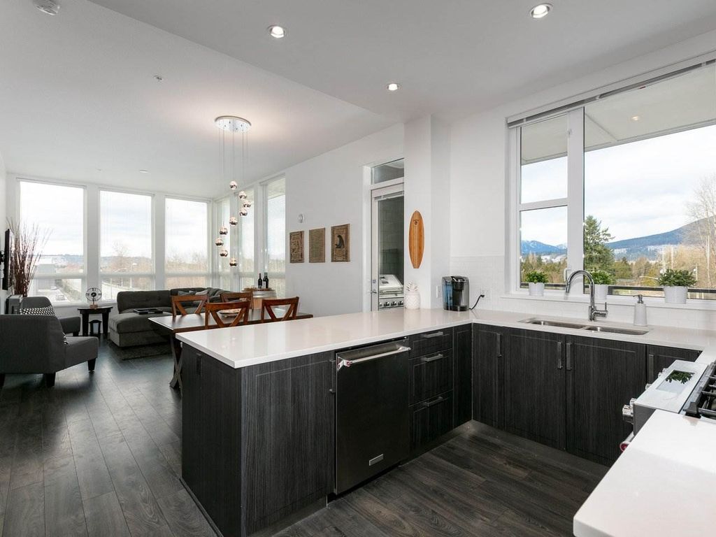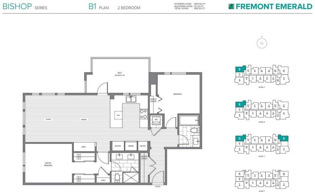 RARELY AVAILABLE 2 Bed 2 Bath 1038 SF CORNER SUITE in the sought after FREMONT EMERALD DEV. Inviting, Open and Well Thought Out Layout. Kitchen features a GAS RANGE, over the sink window mountain views, upgraded SS appl., quartz counter tops and a wall-to-wall, floor to ceiling pantry. Spacious dining and living room perfect for large furniture and entertaining. Built in workstation for all your home office needs. Living area has Extra -Large windows allows lots of natural light and 10 ft ceilings. 145 SF COVERED DECK, room for couches, bbq & gas hookup. Walk to trails, shopping, breweries, eateries, and transport. Over the top amenities at the "River Club" include a gym, outdoor pool, indoor basketball court & clubhouse. INCLUDES 2 LARGE SIDE BY SIDE PARKING STALLS & 1 STORAGE LOCKER.