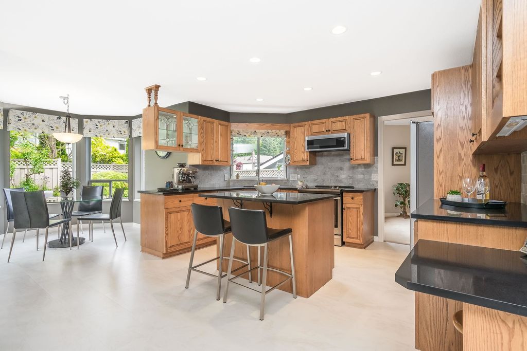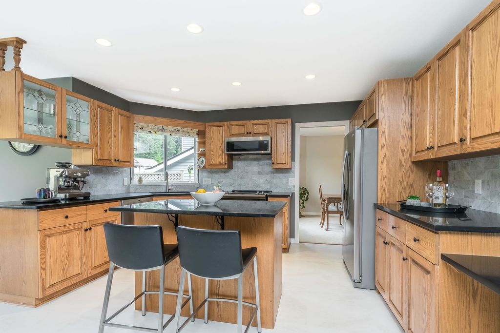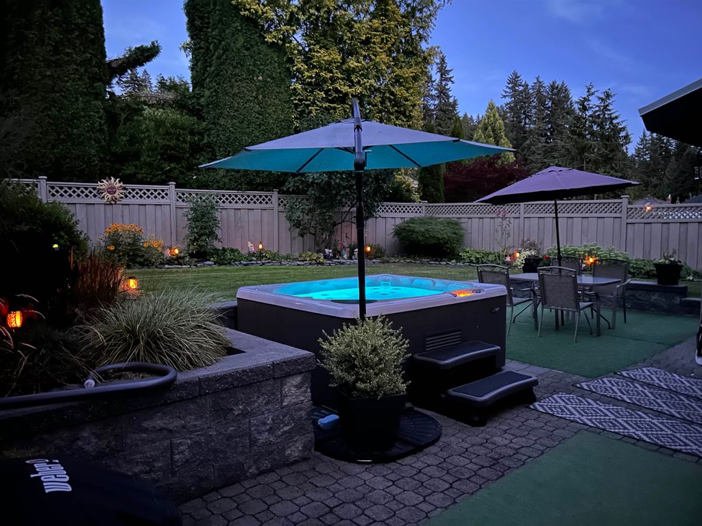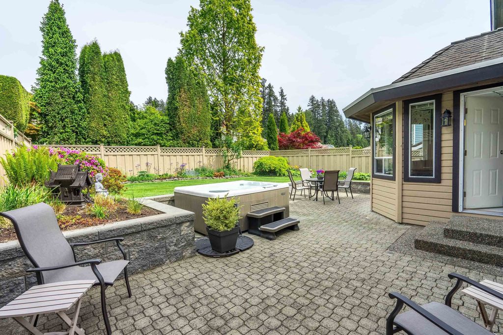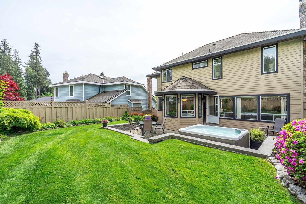 This immaculately maintained family home in sought after Heritage Mountain will not disappoint. Gorgeous open kitchen has granite countertops, s/s appliances and updated vinyl plank floors. Family room has f/c gas fireplace. Cozy nook leads out to beautifully landscaped fully fenced backyard, with hot tub. Completing the main floor is the living and dining room, 2 piece bath and laundry. Upstairs boasts 3 large bedrooms, master ensuite with large skylight. Downstairs has large den/rec room,bedroom, bath and crawl space for additional storage. Many upgrades include high energy furnace, freshly painted, newer carpets, new H/W tank. Walking distance to popular Heritage Mountain Elementary and Secondary school. Close to transportation and recreation.