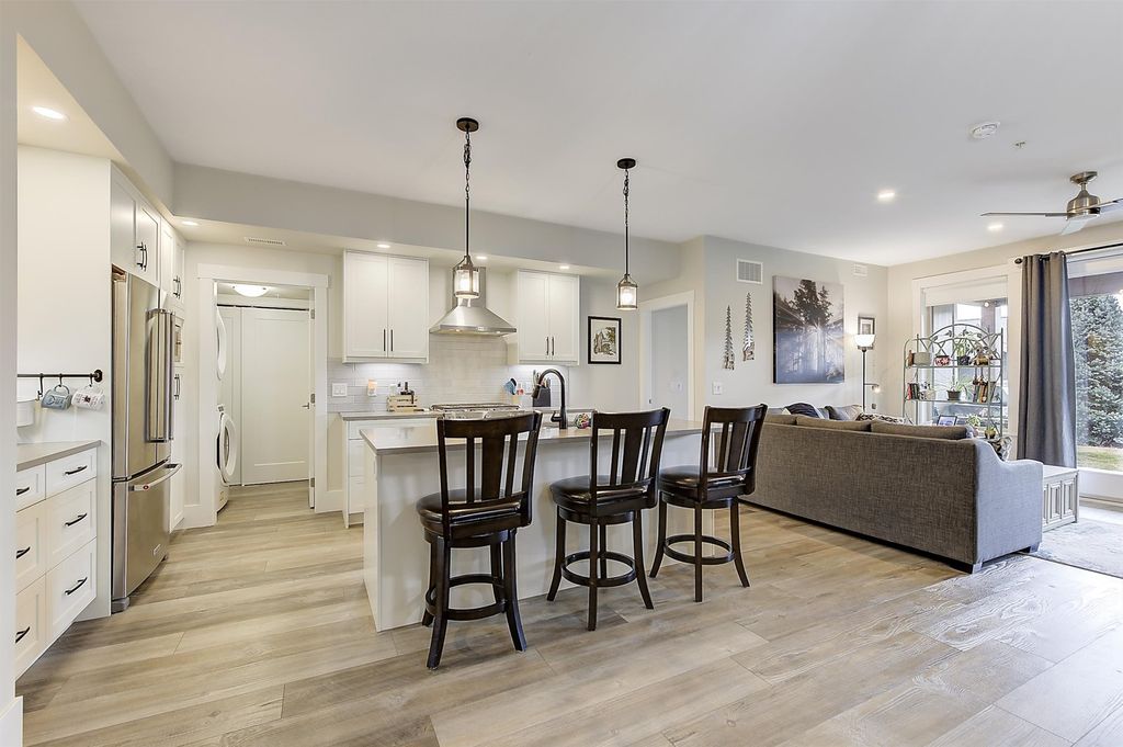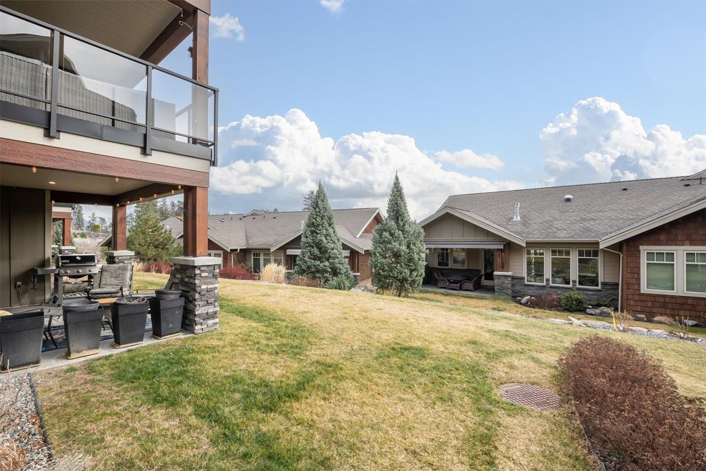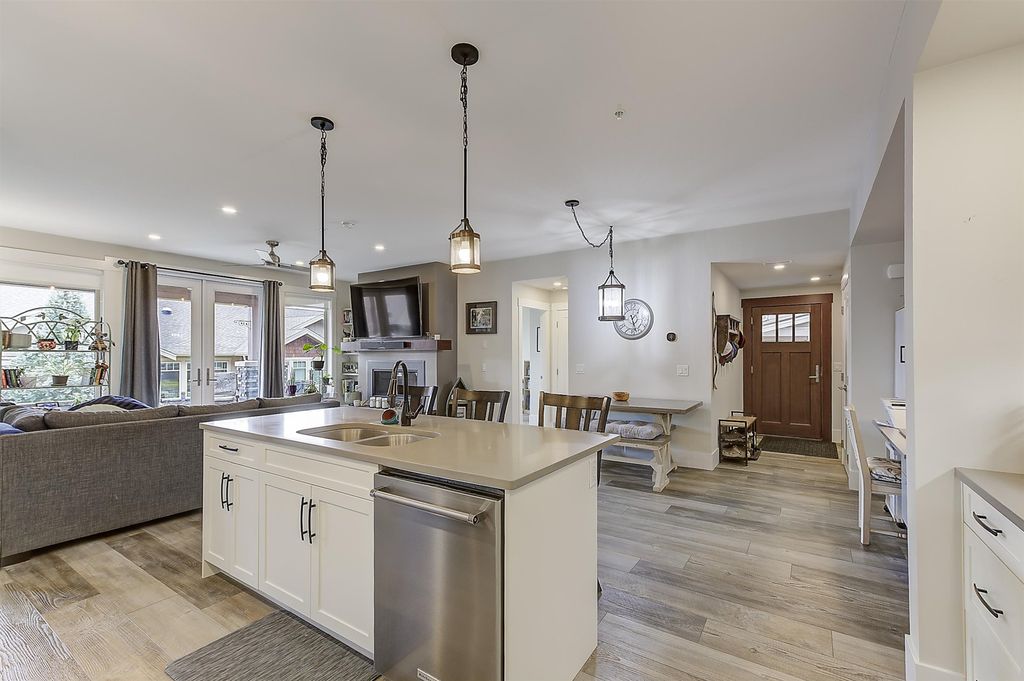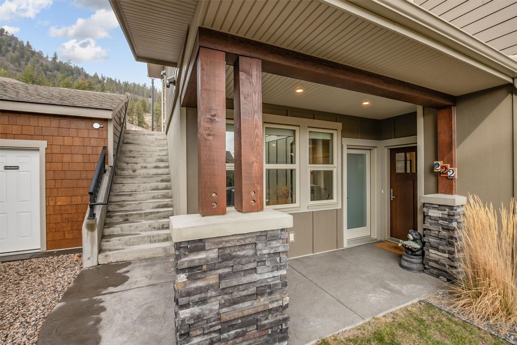 Located in the desirable Trails community in Peachland, this stylish rancher townhome features 3 beds and 3 baths of thoughtfully designed living space that blends modern finishes w/ a warm, comfortable atmosphere. The main level area features an open-concept layout ideal for both everyday living and entertaining. The kitchen showcases quartz countertops, stainless steel appliances w/ natural gas range, and pantry. The living area is anchored by a cozy gas fireplace and framed by large windows that flood the home w/ natural light. The bedroom placement at opposite ends of the home offers excellent separation and privacy. Enjoy the covered patio w/ natural gas hook-up for your BBQ during the summer. You can also get a tiny peek-a-boo view of the lake as well. A standout feature is the additional flex room w/ its own private entrance, bedroom, bath, and pre-plumbed for wet bar; perfect for a home office, guest retreat, entertaining area, or in-law/caretaker suite. Outside, you’ll find a private driveway, single-car garage, and convenient visitor parking nearby. Just steps away from walking and hiking trails which includes Pincushion Mountain. Minutes from downtown Peachland, where you can enjoy lakeside strolls, local wineries, restaurants, and coffee shops. Ideal for young families, downsizers, or those seeking a low-maintenance lifestyle, this flexible home offers comfort, views, and convenience in a very sought-after location.