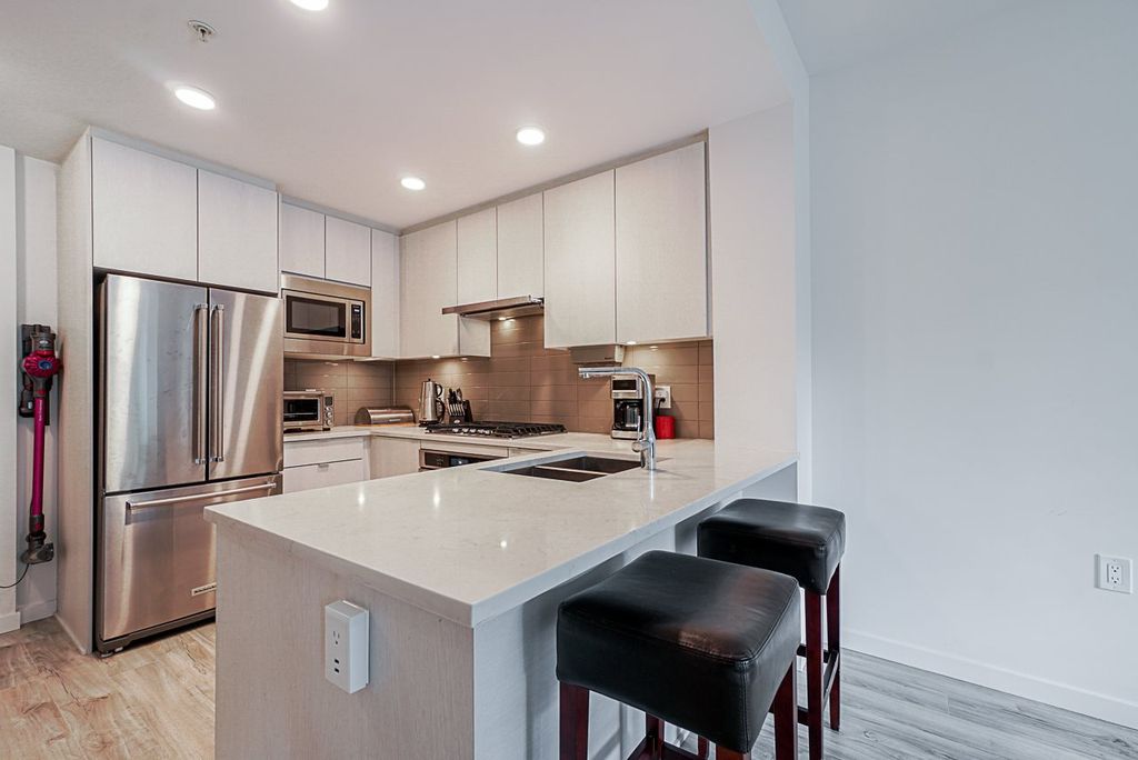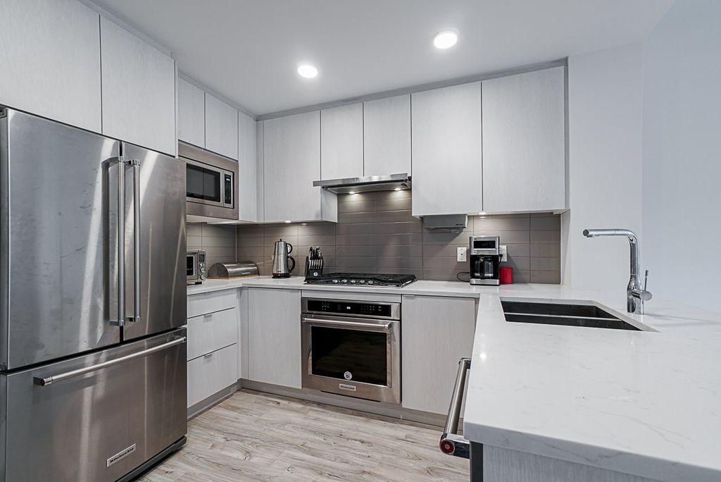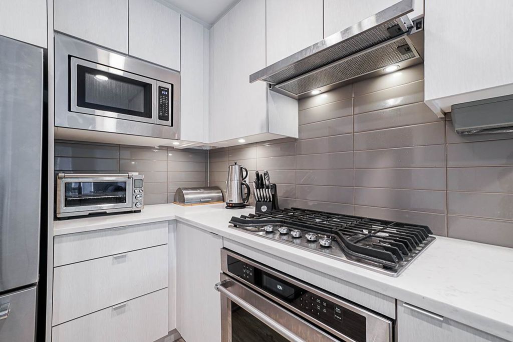Highly accessible one bedroom at Simon 2 with huge 198 sq.ft outdoor patio and offering easy maneuvering for wheelchair users! Bright open concept interior featuring high 9ft ceilings, a gourmet kitchen with quartz counter-tops, soft close cabinets and stainless steel KitchenAid appliances with 5 burner gas range. Luxurious bathroom with deep soaker tub and marble tile surround. King sized master bedroom with spacious walk-in closet. One parking stall and TWO storage lockers. Amenities in this 6 storey boutique building include exercise room, recreation room and kids play area. Conveniently located steps to Burquitlam SkyTrain Station, parks, schools, restaurants, shopping and the new YMCA that is coming soon. Balance of 2-5-10 home warranty.