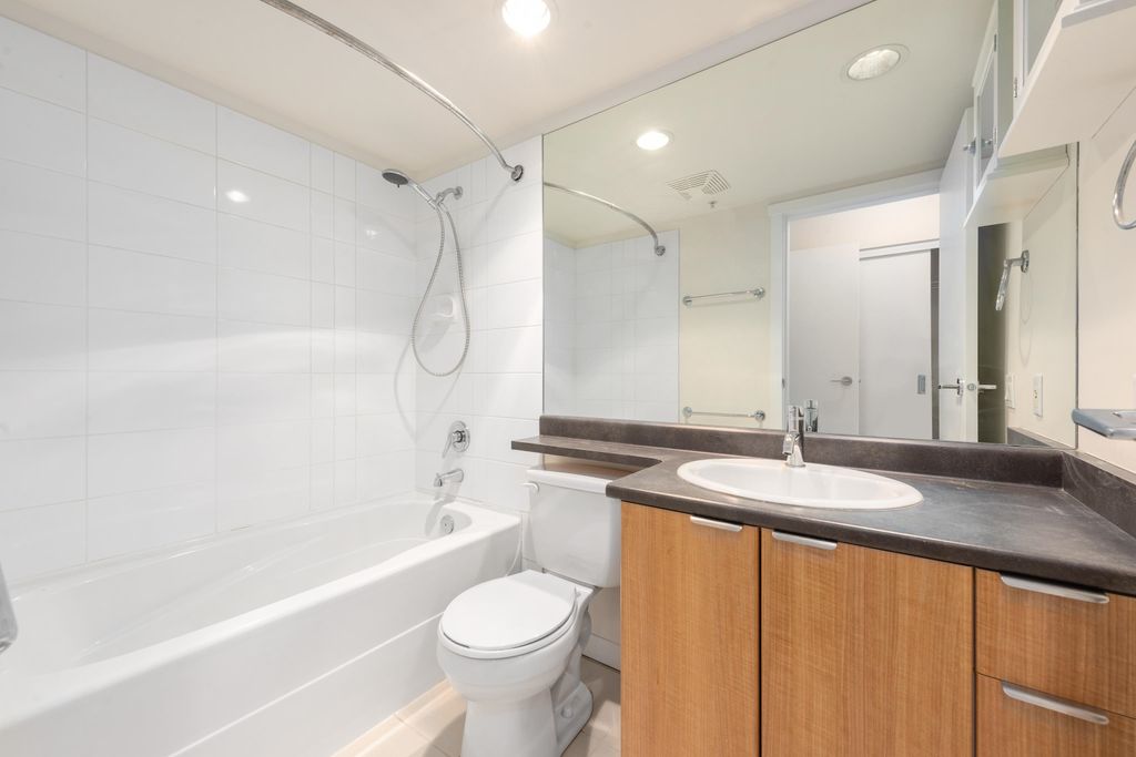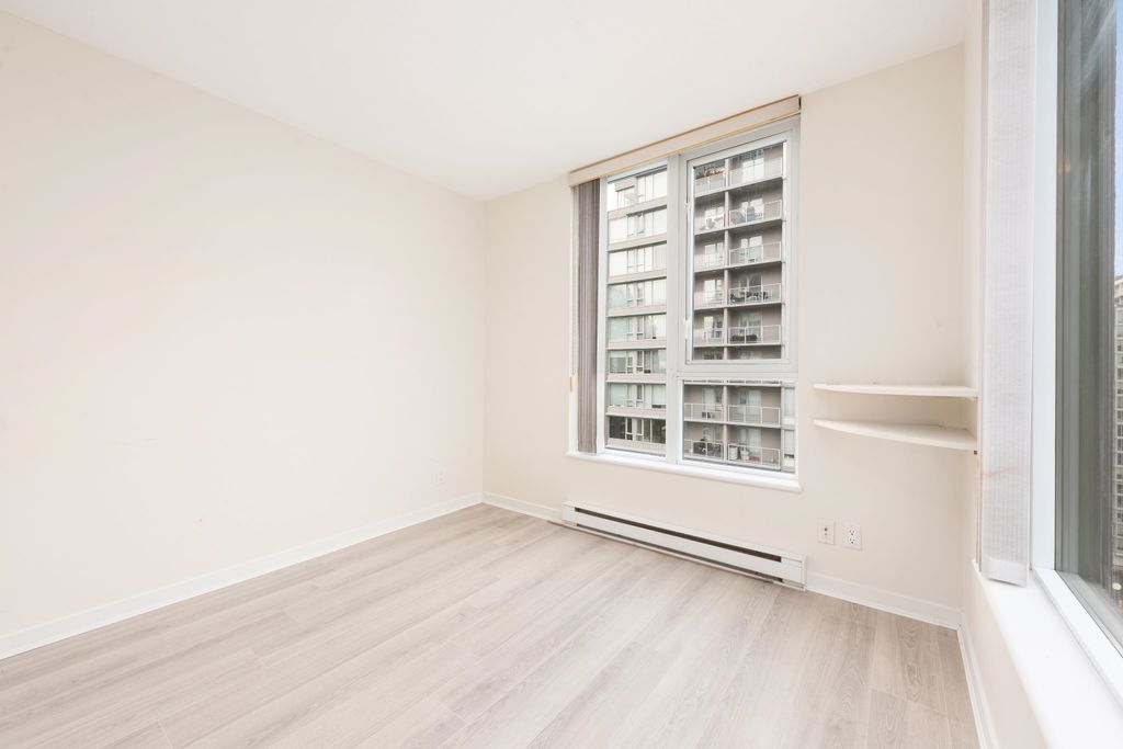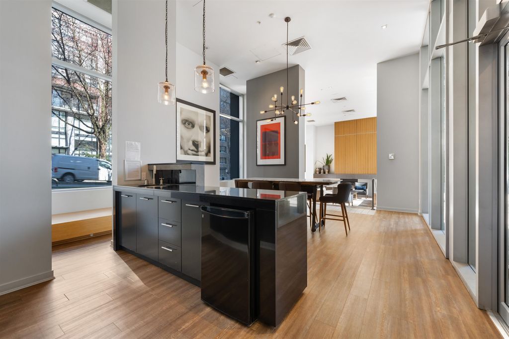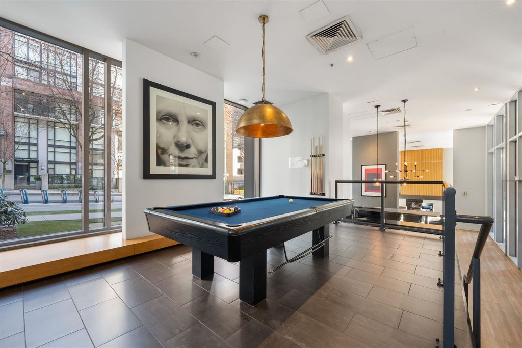 Welcome to The Gallery by Polygon — a beautifully appointed 1 bedroom corner residence showcasing sweeping city views of Vancouver’s iconic skyline. This home offers an efficient, thoughtfully designed layout with absolutely no wasted space. Recently refreshed with new flooring, fresh paint, and a brand-new refrigerator, it’s truly move-in ready. Floor-to-ceiling windows flood the space with natural light. Residents enjoy exceptional amenities including a billiards room, private meeting rooms, fitness centre, lounge, party room, spa, and the added peace of mind of a live-in caretaker. A well-managed building in an unbeatable location — step outside and walk to everything Vancouver has to offer. Includes 1 secure underground parking stall and 1 storage locker.
