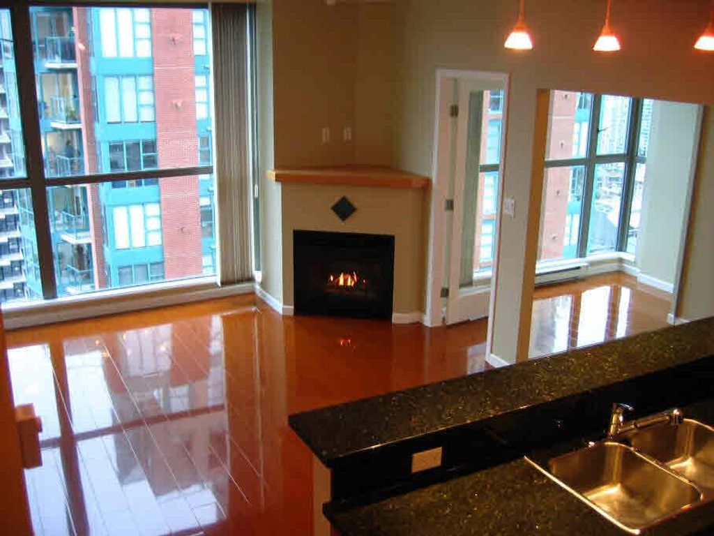 Investors & first time buyers. Super 1 bdrm & den at the Savoy. This suite has high gloss laminate floors, high ceilings, crown moulding, cozy gas fireplace, stainless appliances, gas range for those serious cooks, granite countertop, new p aint, walk through closet, really good size bdrm & fabulous views that go for miles. The building has indoor pool & exercise centre, pets & rentals allowed. 1 parking & storage. What are you waiting for?