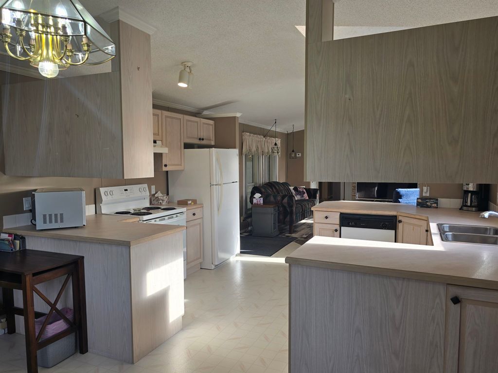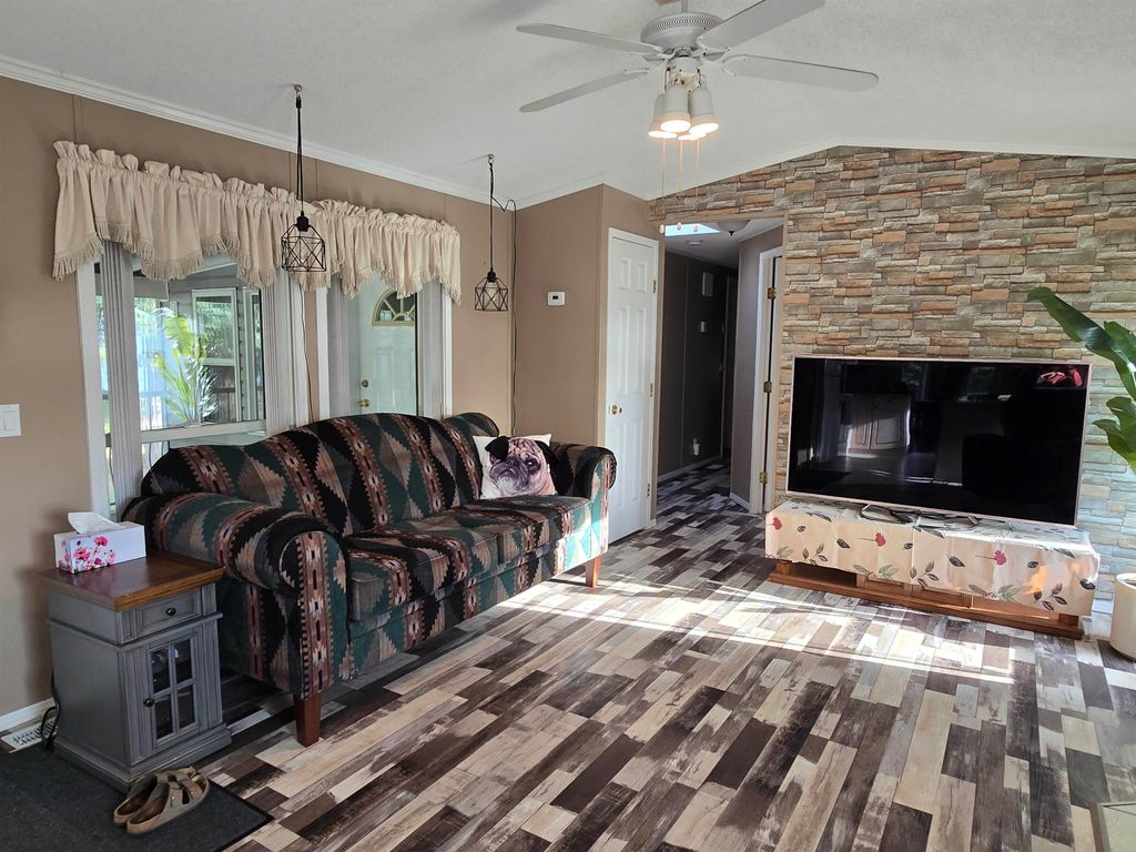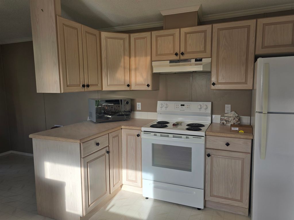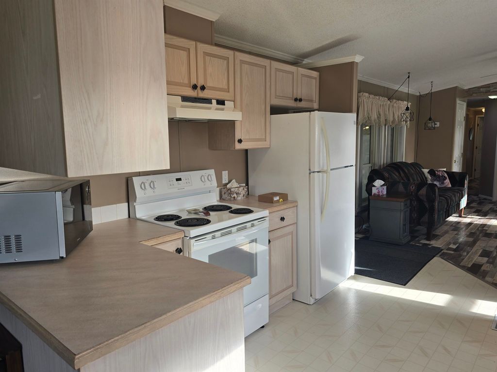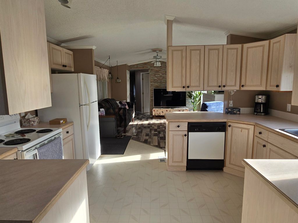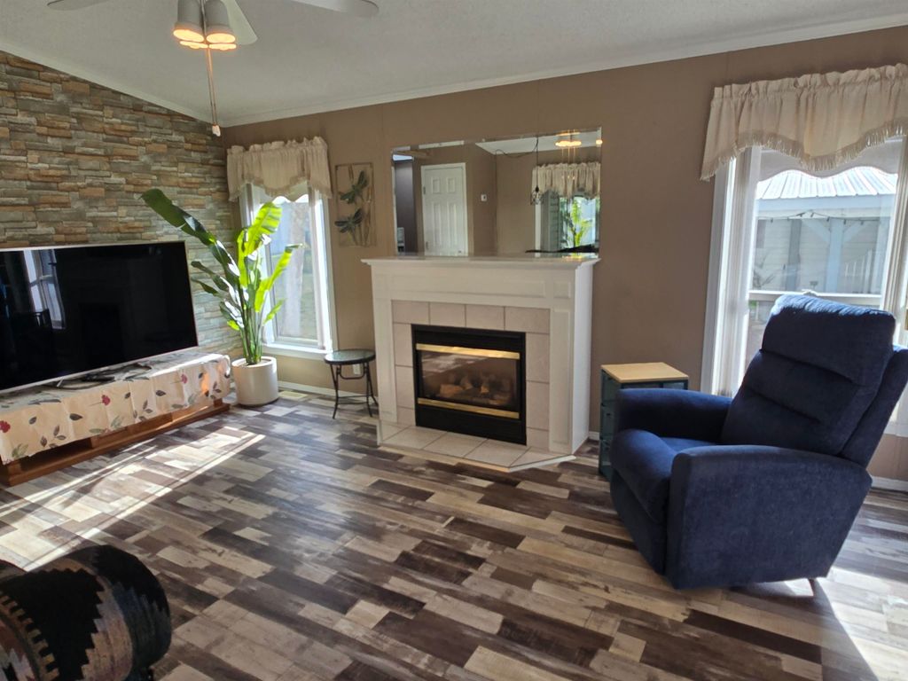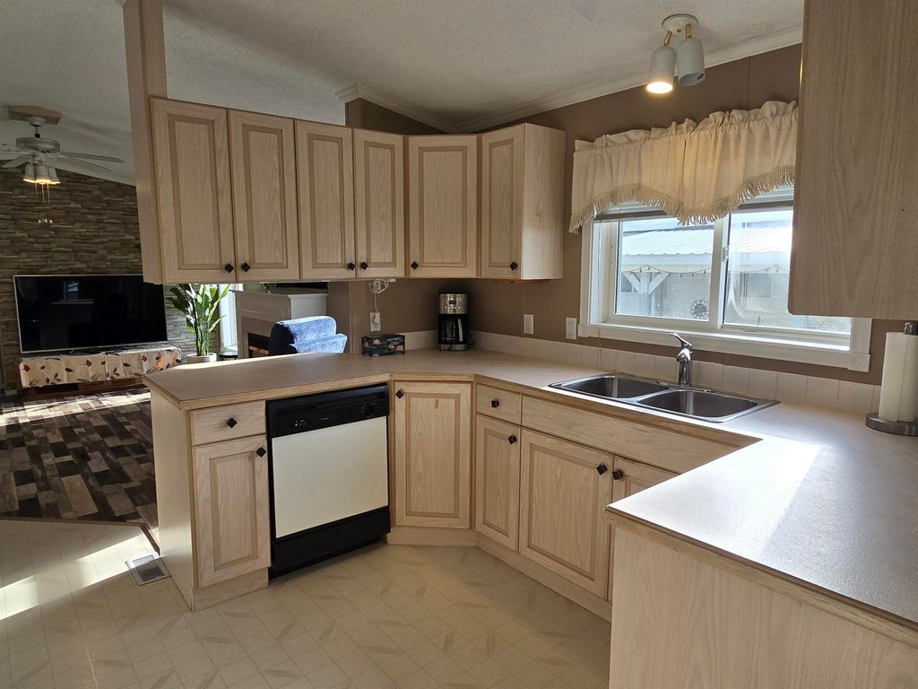 This well-kept 3 bedroom, 1.5 bath mobile home is located in one of the area’s most desirable adult-oriented parks, offering peace, privacy, and convenience. Situated at the end of the street, this home enjoys a quiet setting with a covered deck and carport for year-round comfort. Inside, you’ll find a bright and sunny layout featuring a built-in china cabinet, cozy gas fireplace, and a huge mudroom that could easily double as a den or office. Recent updates include new flooring, new stove, new step-in bathtub, new hot water tank (2024), and a new back step—ready for you to move right in and enjoy. A perfect blend of comfort, charm, and easy living!