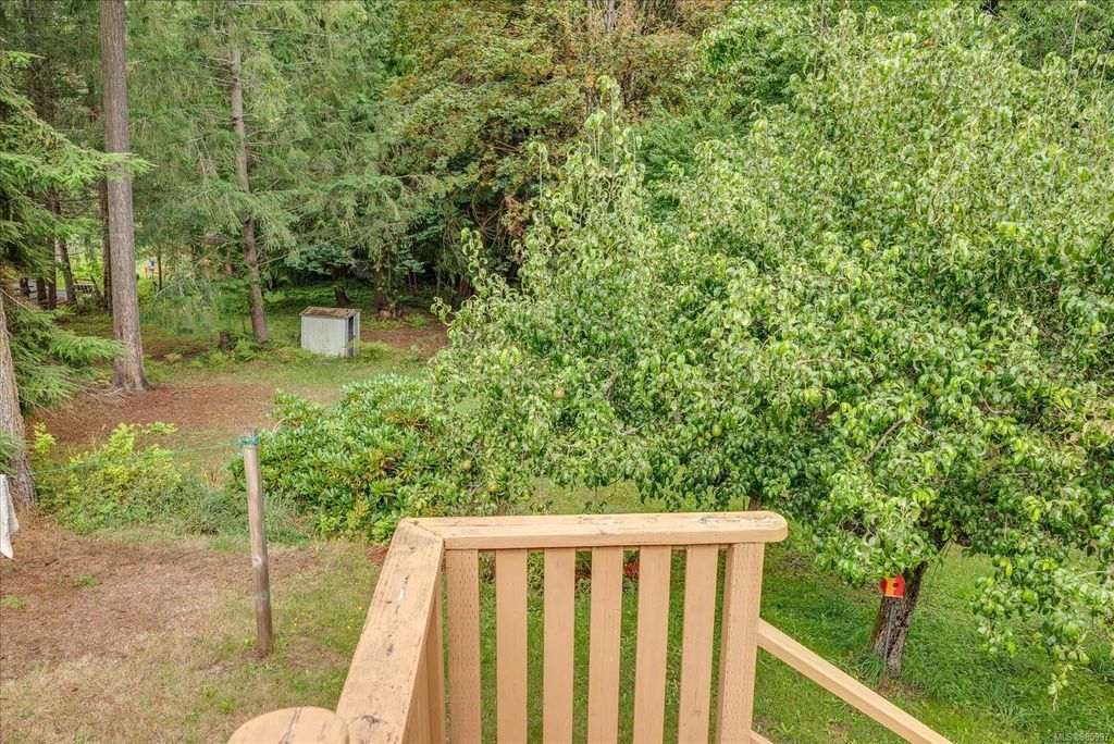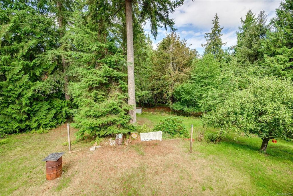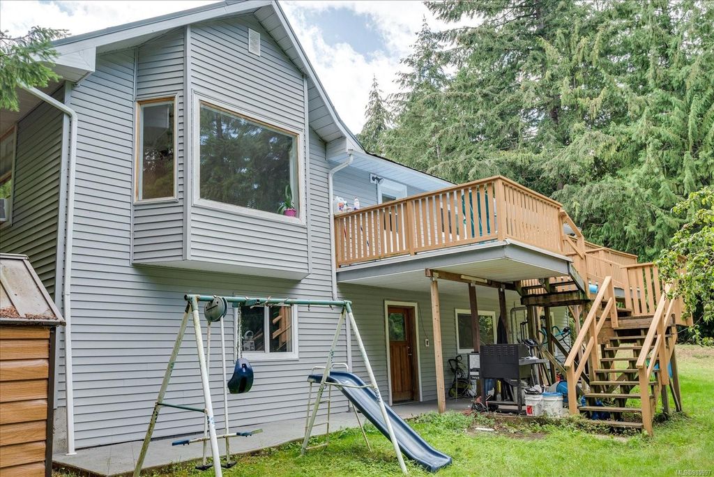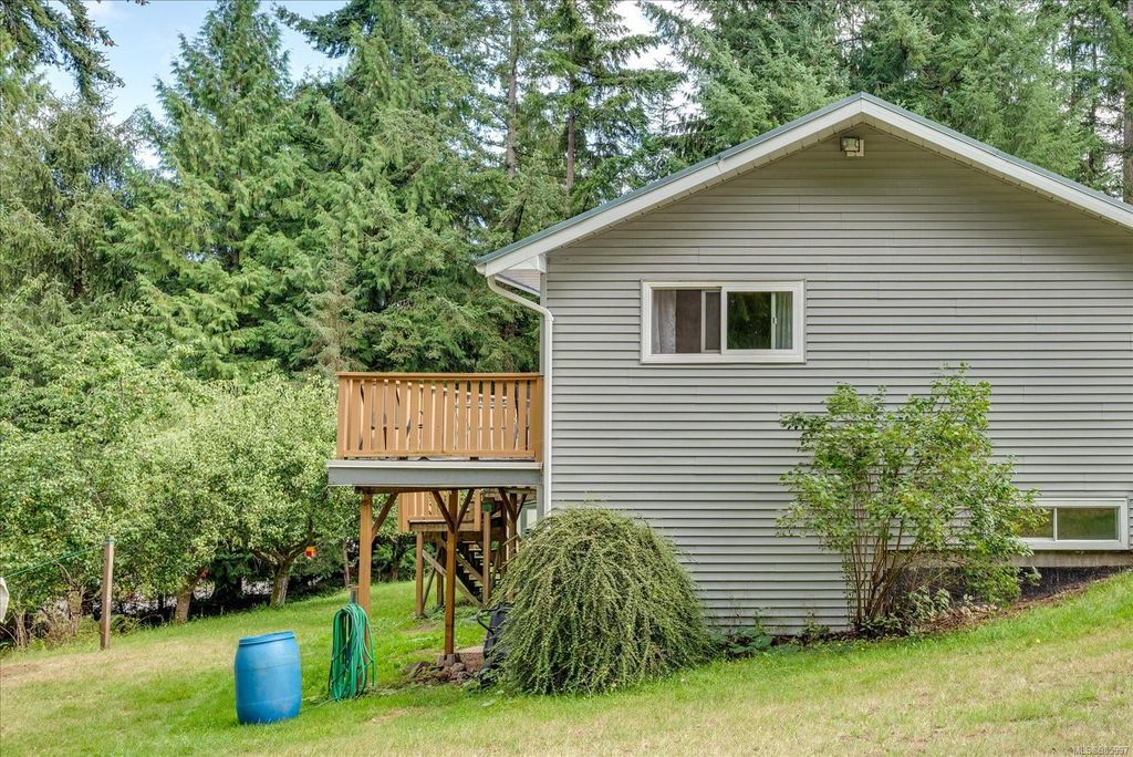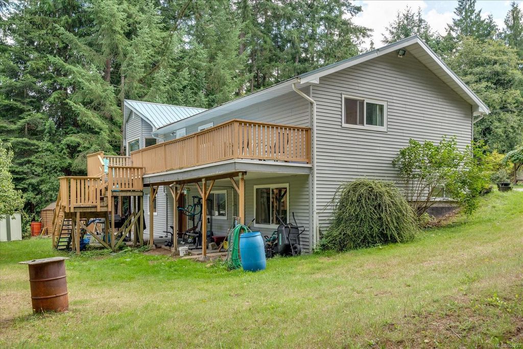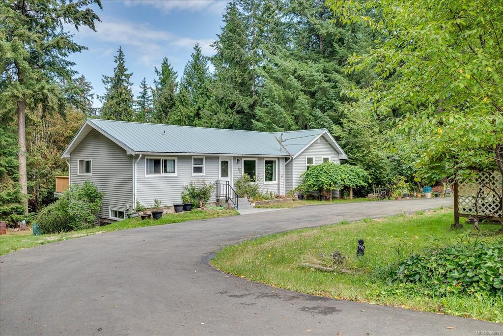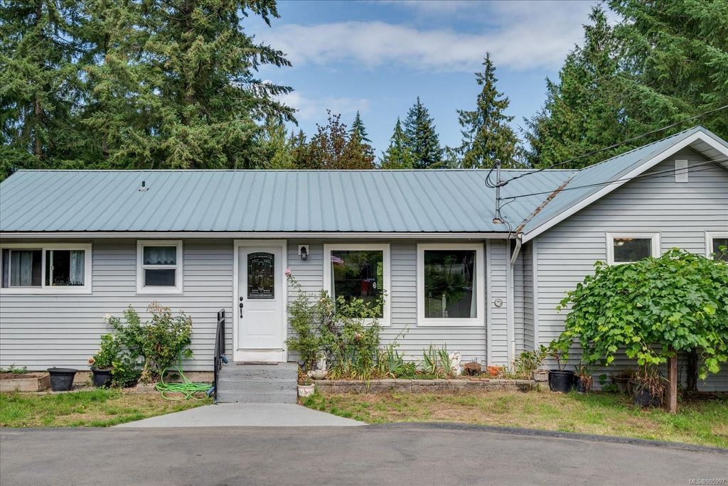 Experience country living with the convenience of being just 8 minutes from Qualicum Beach’s amenities and schools, and only 15 minutes to Parksville's beaches. This spacious 5-bed, 2-bath walkout basement home sits on just under an acre, backing onto lush green space. Upstairs features an oversized kitchen, vaulted living/dining room, master bedroom, and a second bedroom/den. The walkout basement includes 3 bedrooms and a large family room with views of the backyard and mature fruit trees. Ideal for extended family or potential suite. Additional features include two wells, 200 amp service, and a metal roof. Plus, the lot is zoned for commercial use—bring your vision to life!