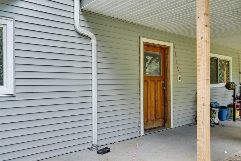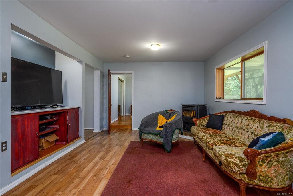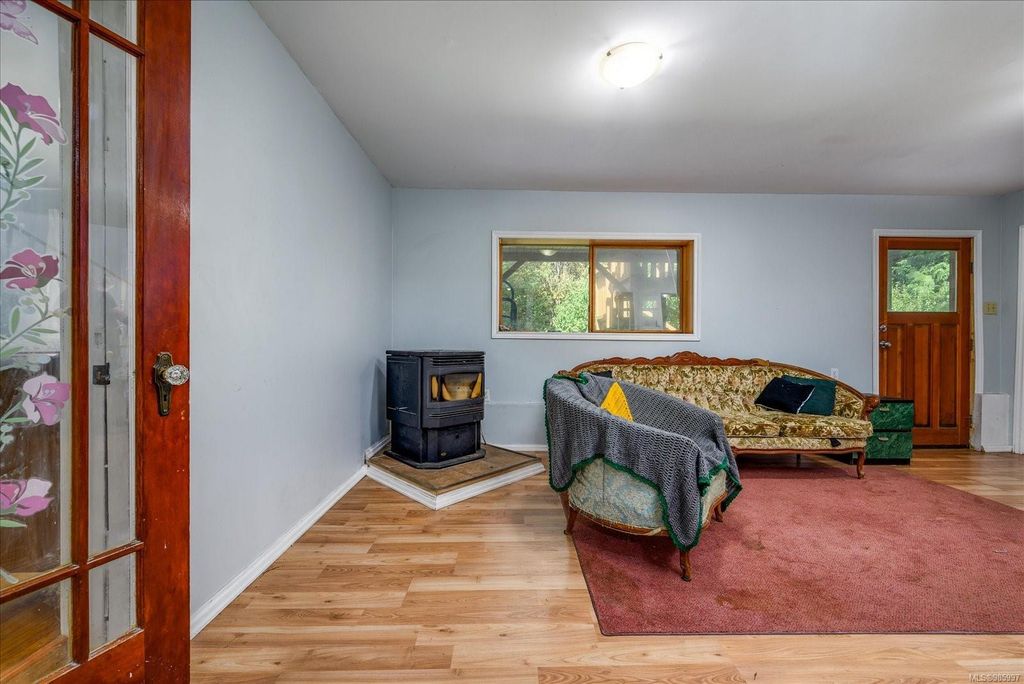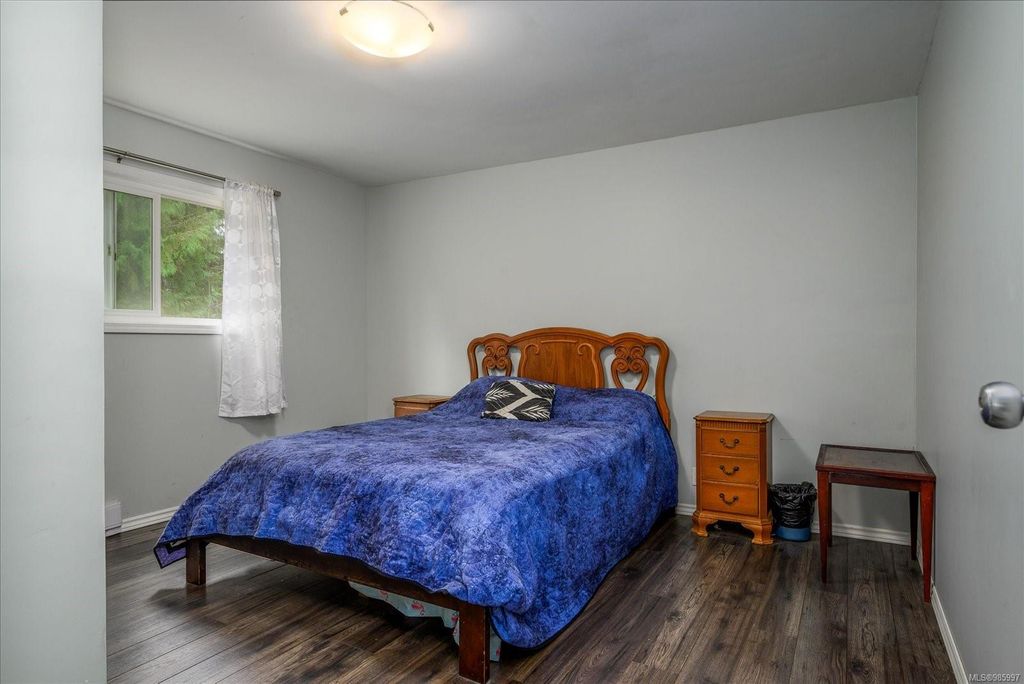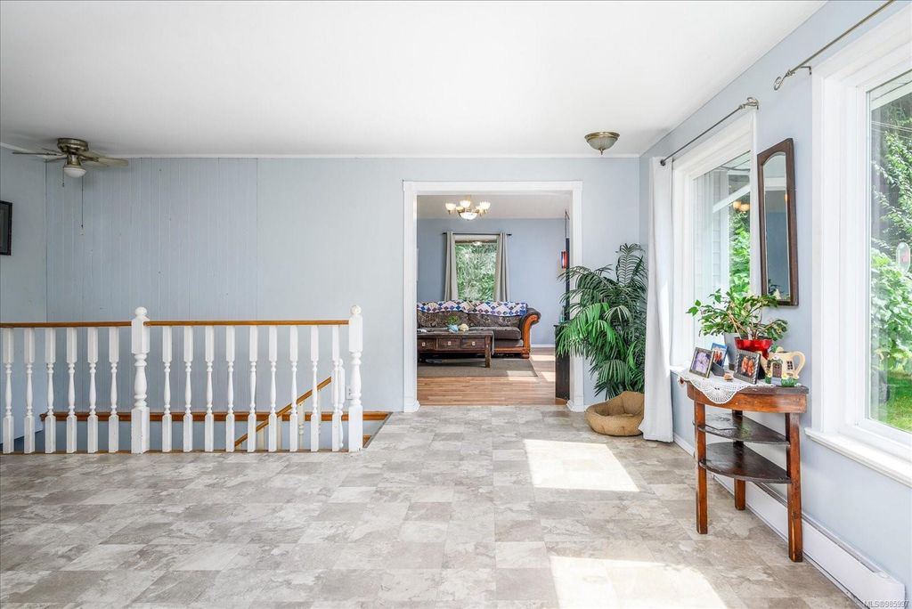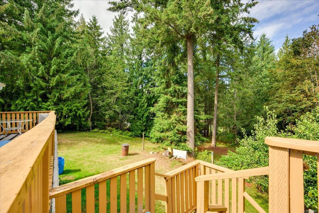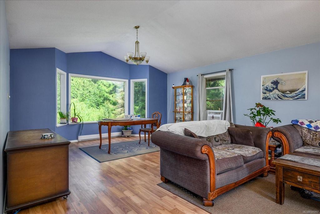 Experience country living with the convenience of being just 8 minutes from Qualicum Beach’s amenities and schools, and only 15 minutes to Parksville's beaches. This spacious 5-bed, 2-bath walkout basement home sits on just under an acre, backing onto lush green space. Upstairs features an oversized kitchen, vaulted living/dining room, master bedroom, and a second bedroom/den. The walkout basement includes 3 bedrooms and a large family room with views of the backyard and mature fruit trees. Ideal for extended family or potential suite. Additional features include two wells, 200 amp service, and a metal roof. Plus, the lot is zoned for commercial use—bring your vision to life!