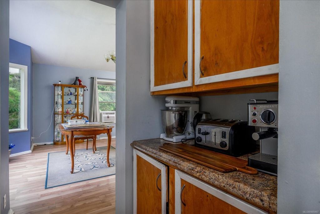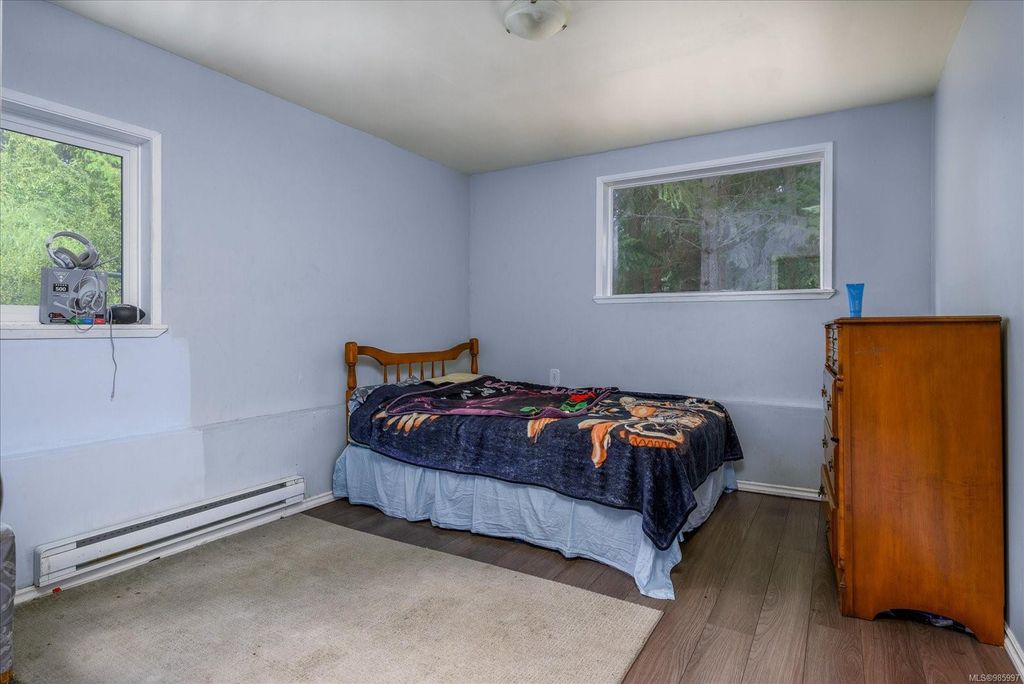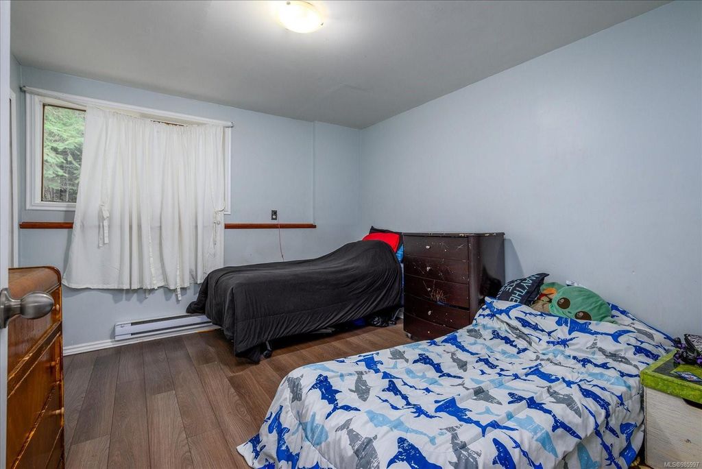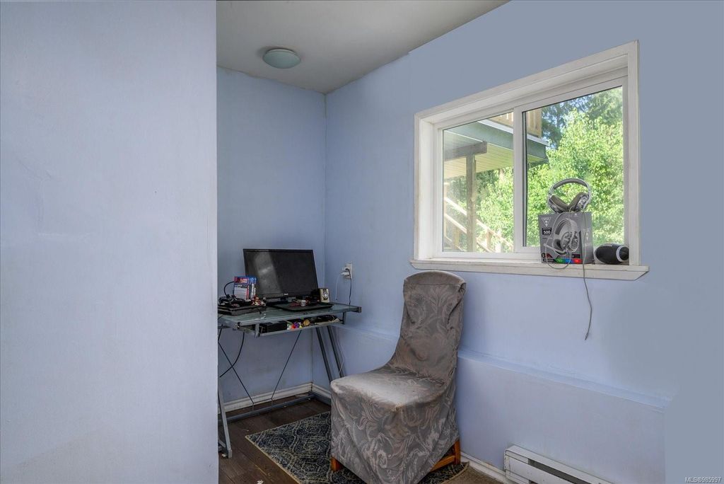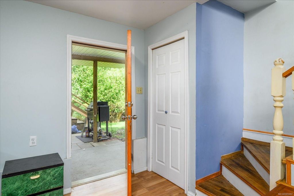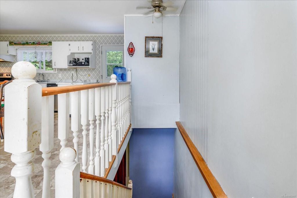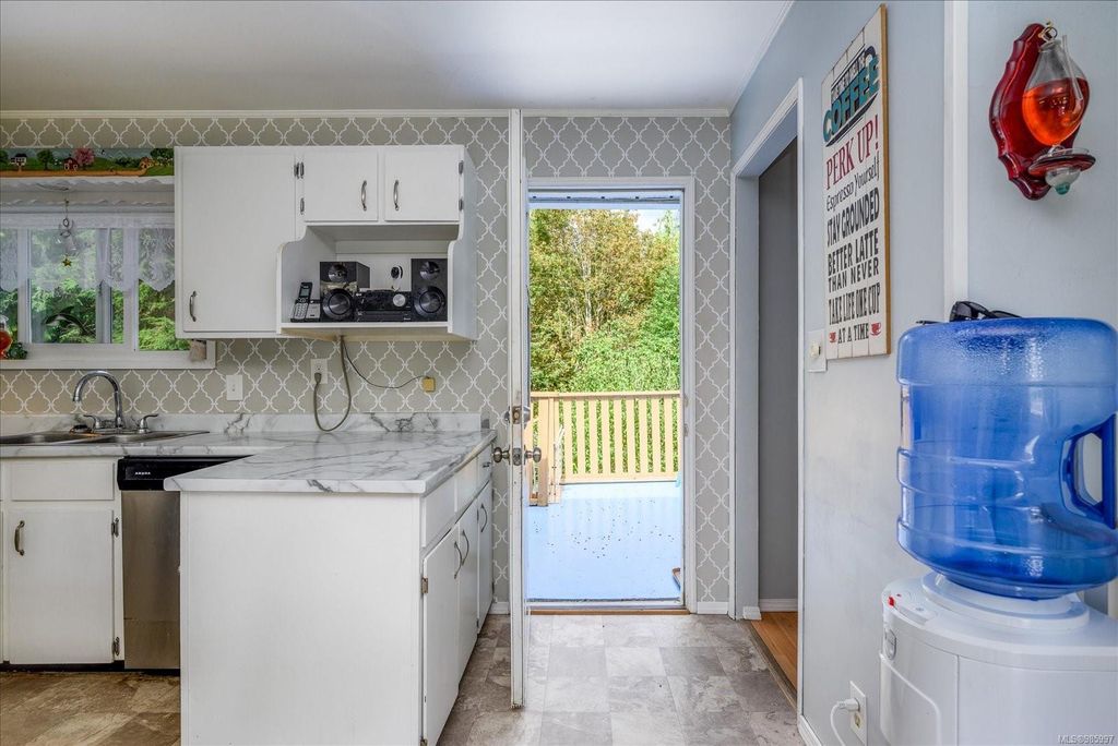 Experience country living with the convenience of being just 8 minutes from Qualicum Beach’s amenities and schools, and only 15 minutes to Parksville's beaches. This spacious 5-bed, 2-bath walkout basement home sits on just under an acre, backing onto lush green space. Upstairs features an oversized kitchen, vaulted living/dining room, master bedroom, and a second bedroom/den. The walkout basement includes 3 bedrooms and a large family room with views of the backyard and mature fruit trees. Ideal for extended family or potential suite. Additional features include two wells, 200 amp service, and a metal roof. Plus, the lot is zoned for commercial use—bring your vision to life!