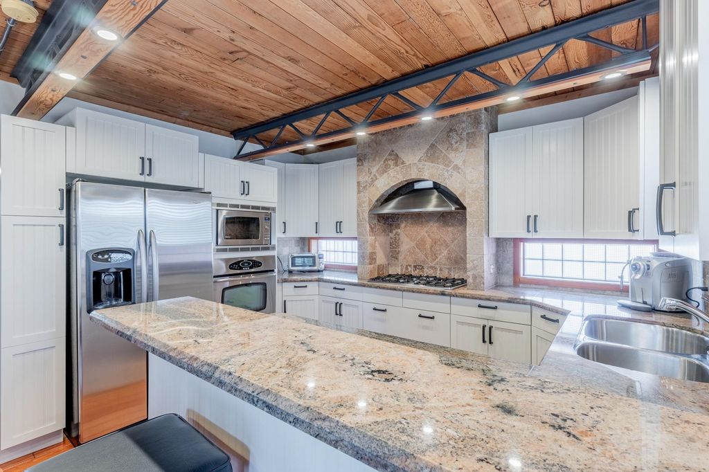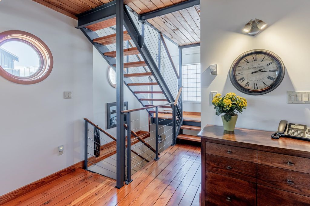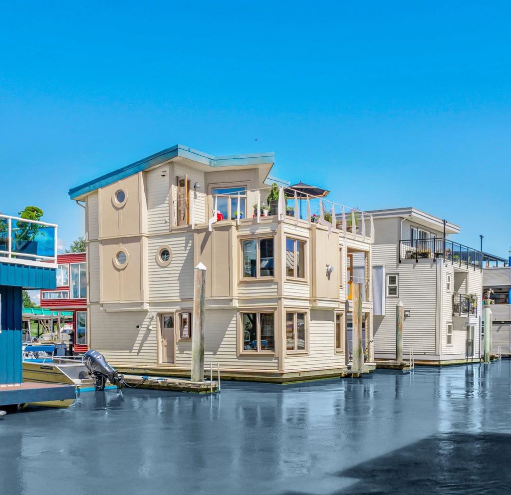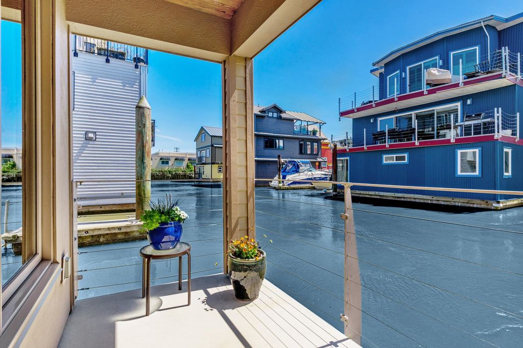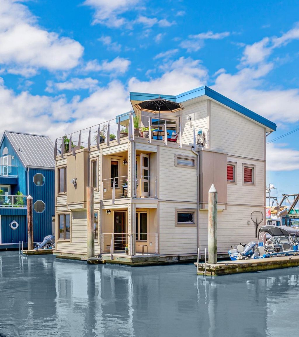 Unique custom built float home, located on the peaceful Fraser River in Marina Wes-Del, minutes from Ladner Village, Westham Island...surrounded by the water and nature. Incorporating European craftsmanship and a careful attention to detail-reclaimed hardwood floors (2.5"), engineered beams,Hemlock windows, 2x6, open staircase, filled with light and a choice of three balconies/decks! Open concept cooks kitchen (gas stove, s/steel appliances, granite c/tops) with adjacent living/dining areas. Master suite on top level, 3 pce ensuite (heated floors). Lower level has two more bedrooms and full bath + guest bath on main. Roof top 325sf deck is stunning with endless views year-round! Moorage for 32' boat+2 parking stalls (garage+open).IMF concrete float (positive floatation). Shows like new!