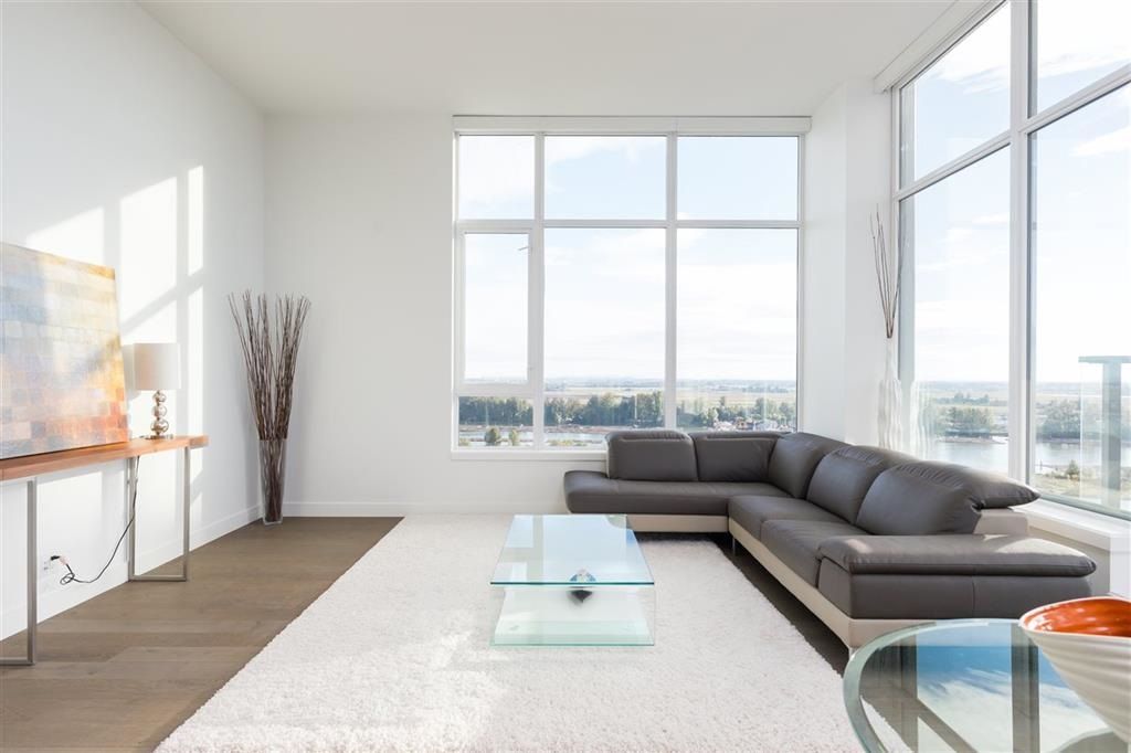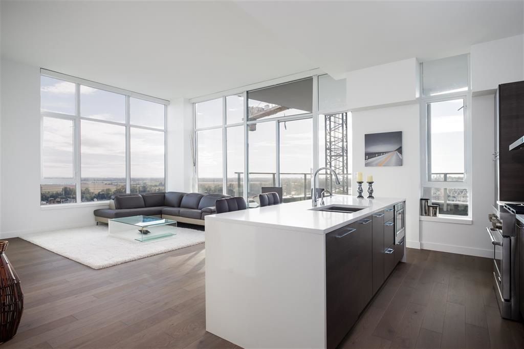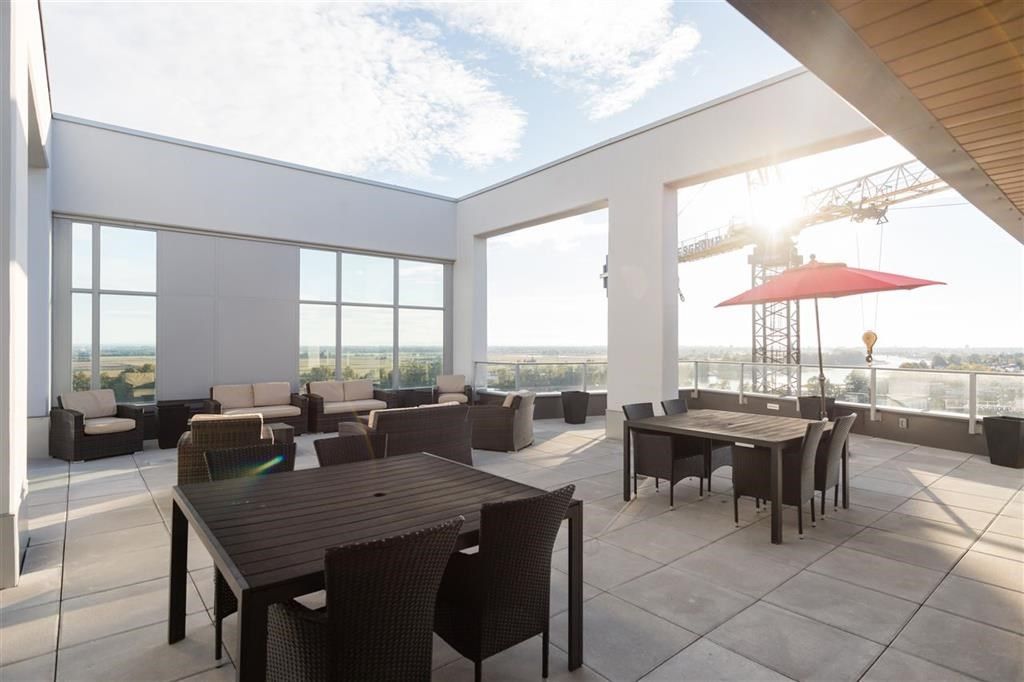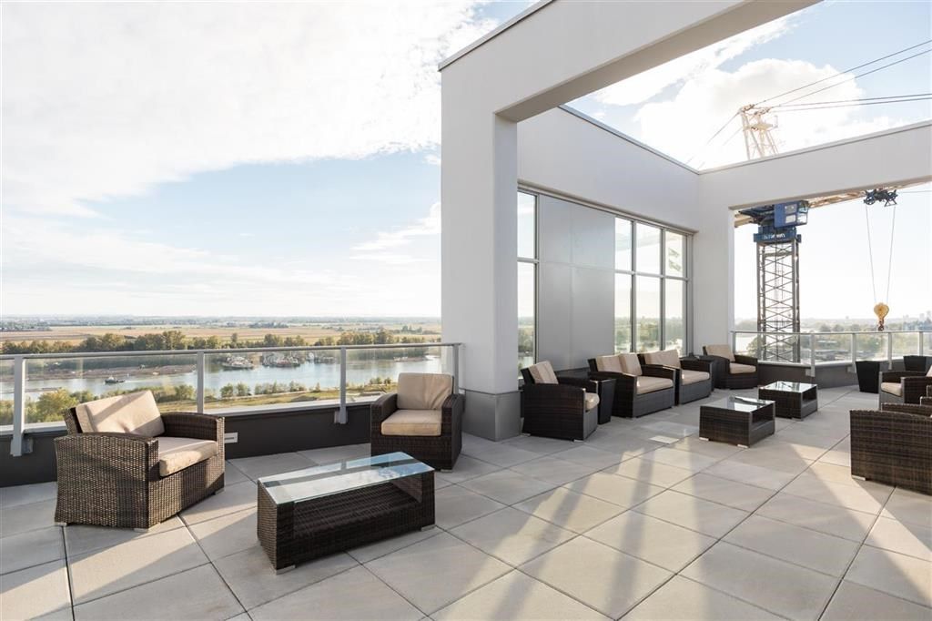 Welcome to this Spectacular SW Corner 2 Bed + 2 Bath + Den Penthouse at One Town Center, Vancouver's newest & most desirable waterfront community! This unique Penthouse features Amazing south view of the Fraser river, 11 foot over-height ceilings throughout the entire 1405 sqft interior living space + 2200 sqft of outdoor living space over 2 private terraces & private Rooftop patio with Built-in Kitchen. Motorized blinds, A/C, Nest heating control. Den could be used as 3rd bedroom. World class amenities includes the 14,000+ sf Club Central w/gym, indoor pool, hot tub, sauna, steam room, squash court. Comes with 3 Parking and 2 Private Storage Lockers. 7 minutes to Marine Drive skytrain station & 10 minutes to Metrotown. MUST SEE!