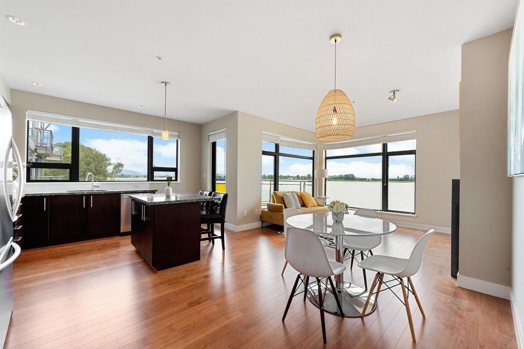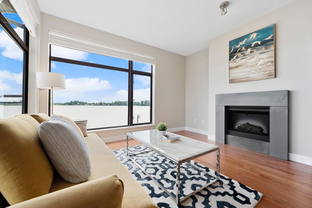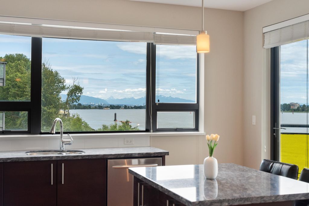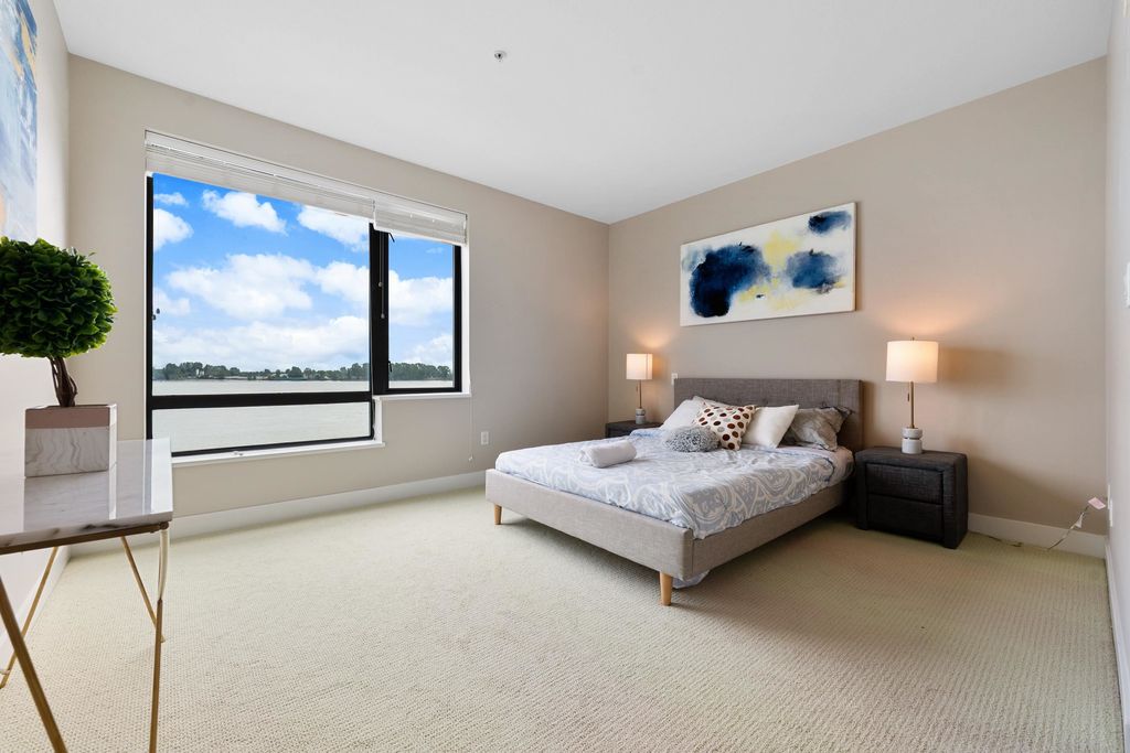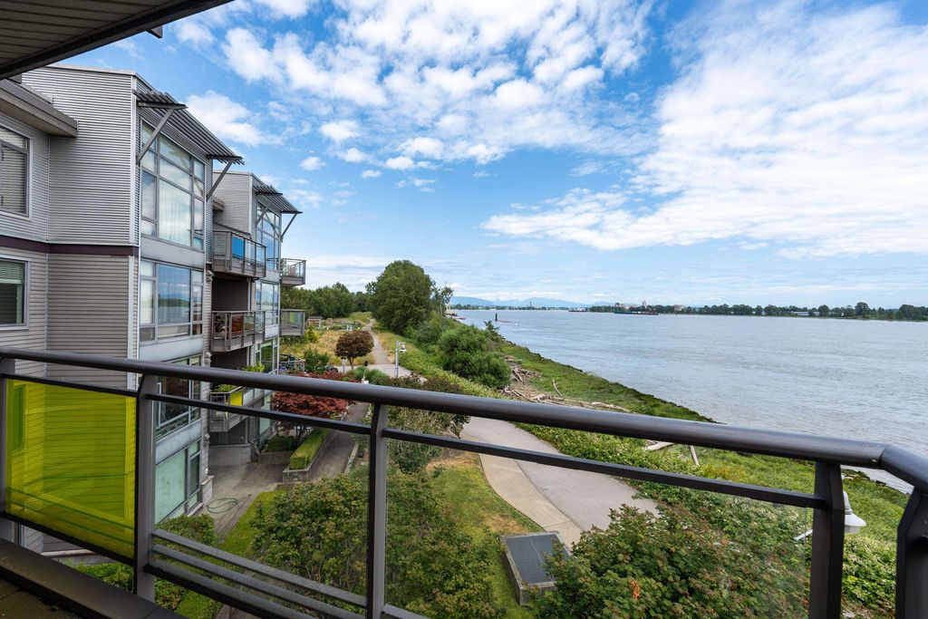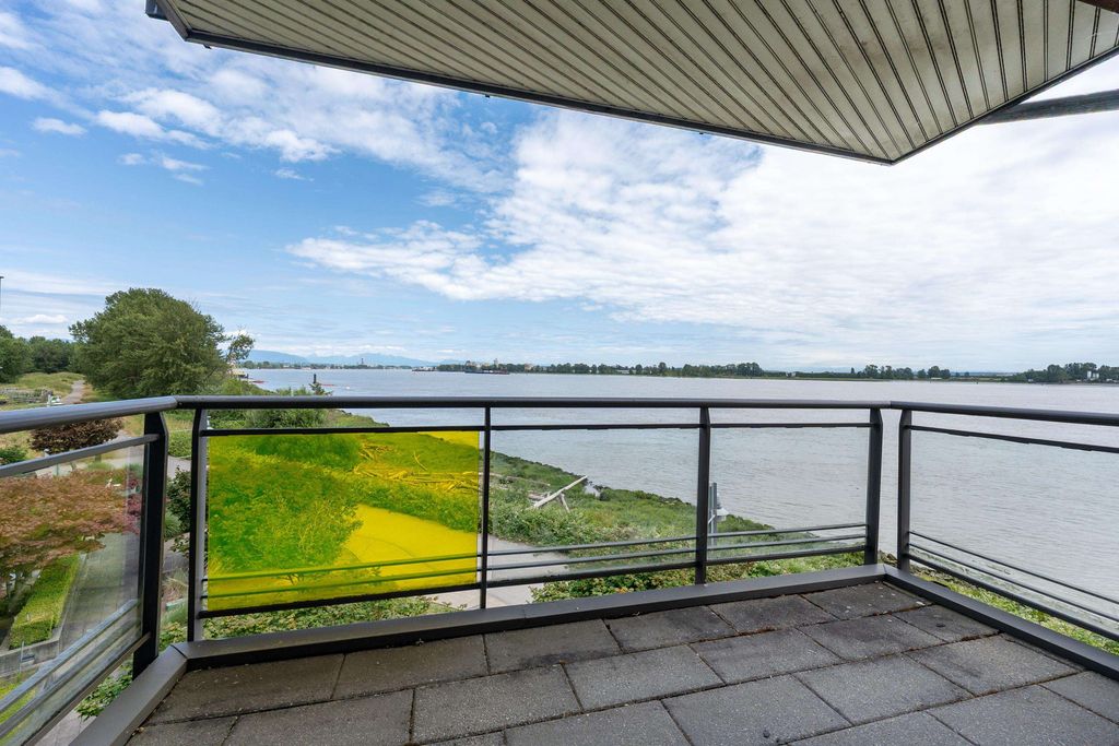 Best waterfront luxury condo MOVE IN Ready! Enjoy this South East facing stunning 2 ensuite bedroom home with A/C (Geothermal) + 9' Ceiling at Waterstone Pier offers unobstructed Mount Baker and Fraser River views through large windows, filling the space with natural light. Functional layout features a granite kitchen. Unit is EXTREMELY well kept- near new condition! Conveniently located near Riverport Entertainment Complex, SilverCity, Watermania, and public transit, with easy access to Ironwood Plaza and highways. 2 parking stalls are included. Open House Oct.12 (Sat) 2-4PM.