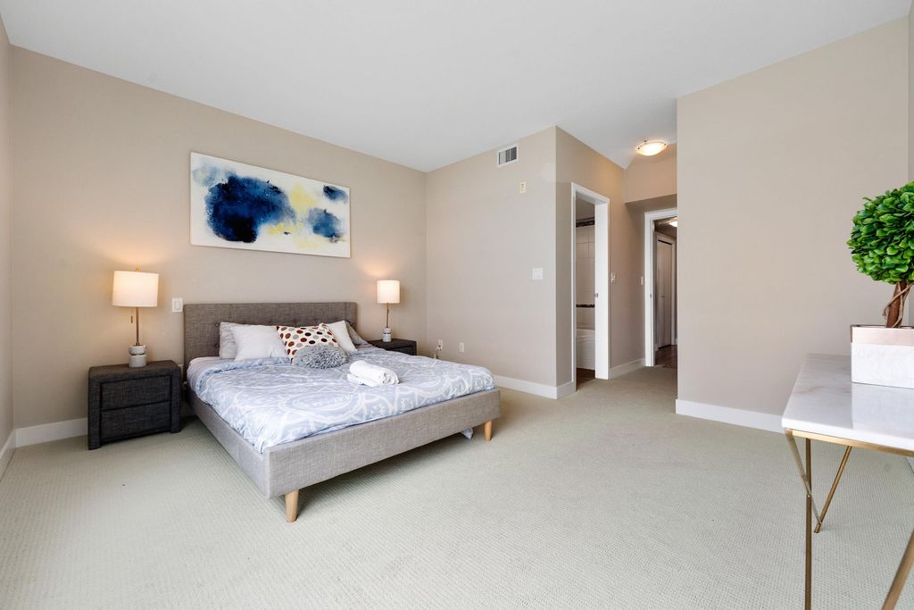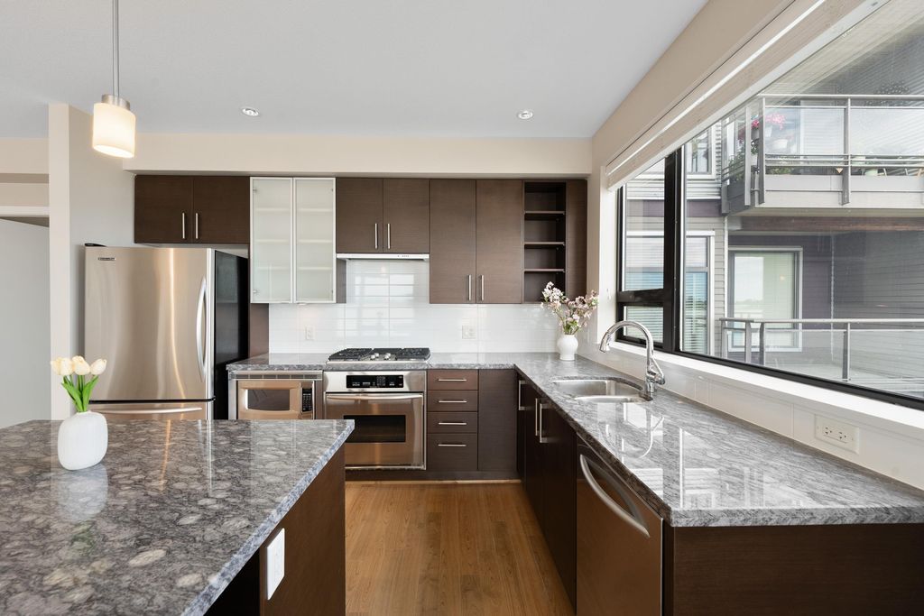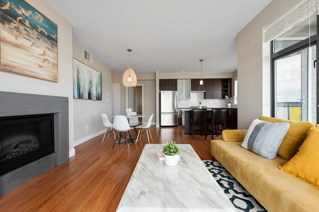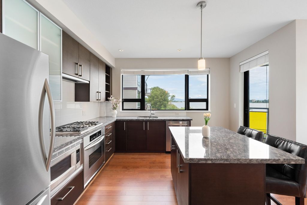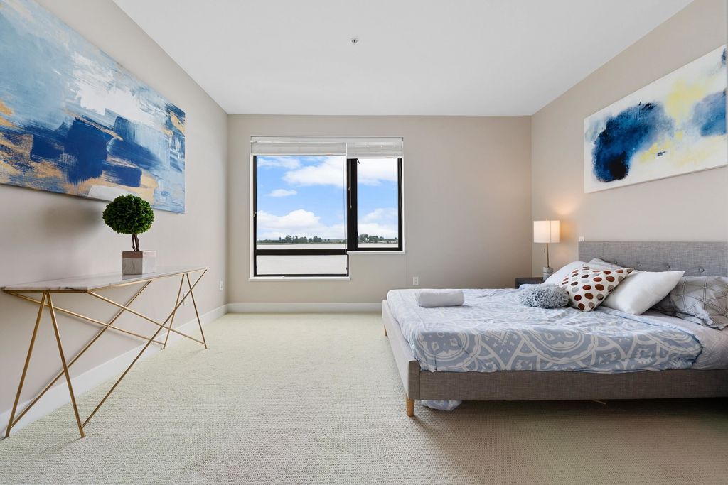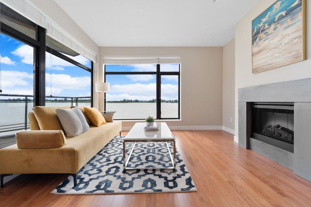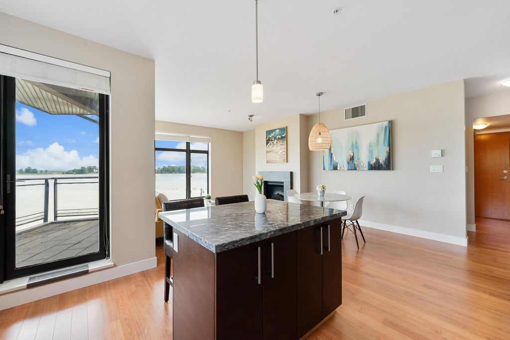 Best waterfront luxury condo MOVE IN Ready! Enjoy this South East facing stunning 2 ensuite bedroom home with A/C (Geothermal) + 9' Ceiling at Waterstone Pier offers unobstructed Mount Baker and Fraser River views through large windows, filling the space with natural light. Functional layout features a granite kitchen. Unit is EXTREMELY well kept- near new condition! Conveniently located near Riverport Entertainment Complex, SilverCity, Watermania, and public transit, with easy access to Ironwood Plaza and highways. 2 parking stalls are included. Open House Oct.12 (Sat) 2-4PM.