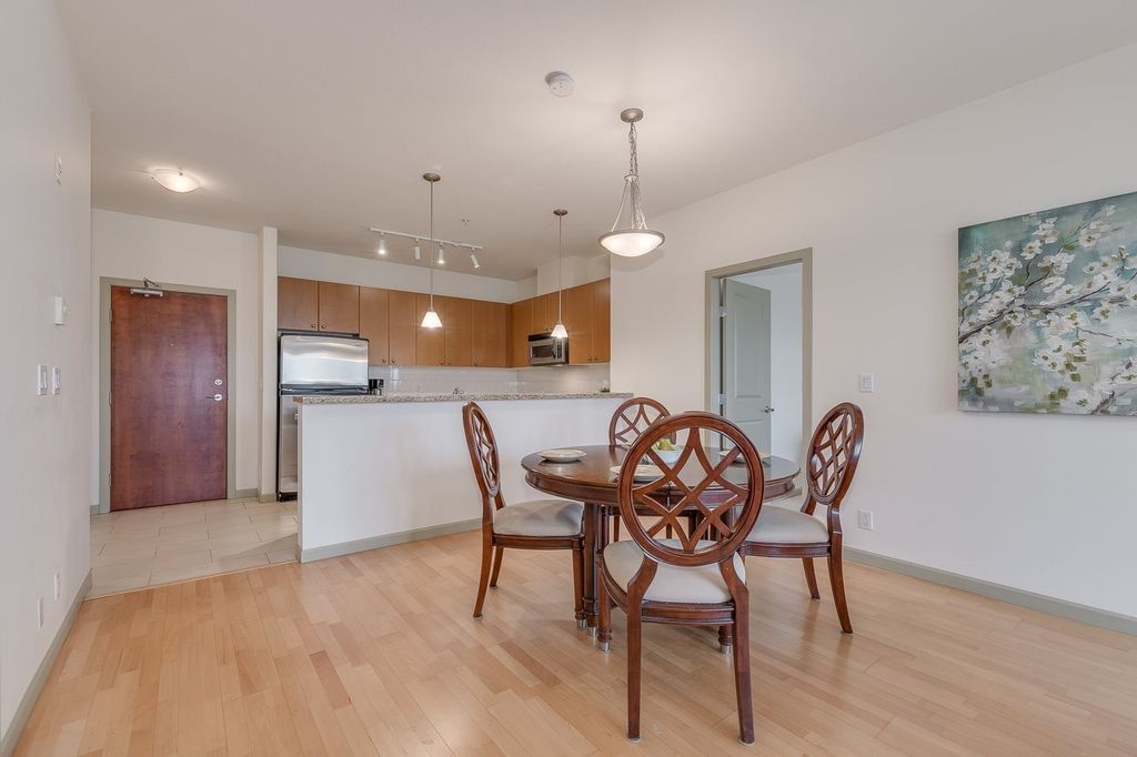 A gorgeous and spacious 2 bed corner unit in the sought after Victoria Hill in New Westminster. This two bedroom home looks south eastward over the Fraser River and Mount Baker. It has 1200 square feet of living area with 100 square feet of deck. Electric baseboard heating, gas stove, granite countertops in kitchen and en suite bathroom with laminate hardwood flooring in living area and carpet in bedrooms provide a perfect home for a single person, a professional couple or a starting family. Great complex w/gym, social room, library, bike storage, visitor parking & guest suite for rent for family & visitors. Close to Queens Park, Skytrain, schools & shopping. One cat or one dog allowed. **OPEN HOUSE: OCT 6 Sunday 2-4pm**