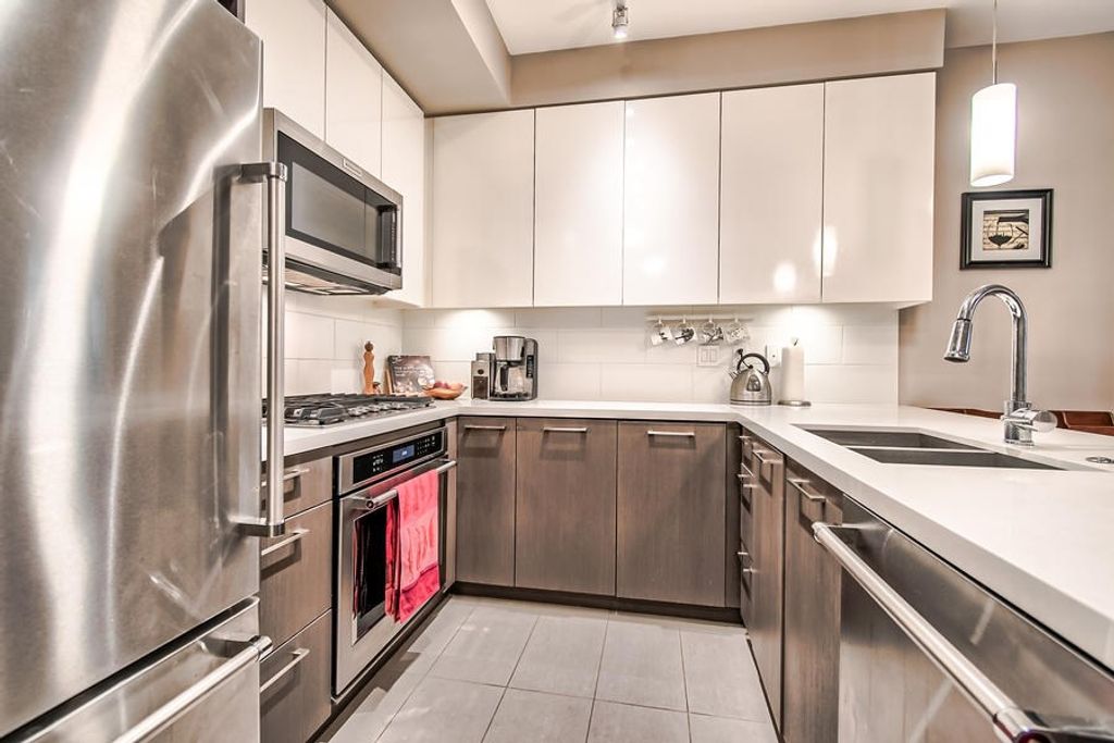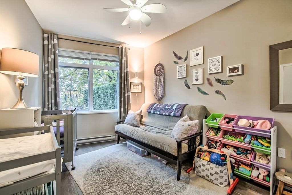 This home has a view of the Fraser River & its surroundings. A spacious, open concept with 1001 sq ft of living space including 2 bedrooms, 2 baths & den. The kitchen has SS Kitchenaid appliances, soft close cabinetry + tile floors. The Master opens onto the almost 500 sq ft private patio, has a W/I closet + a 5 piece ensuite w/heated floors. The living areas have wide plank flooring. LR w/access to patio. Onsite amenities incl a professional equipped gym/exercise room, party room, bike room + a patio w/BBQ that may be rented. A short walk to historic Queen's Park where you can explore trails, playgrounds, dog park + short distance to Canada Games. Close to schools, shopping & transit. Rentals & 2 pets permitted. Separate Entry.