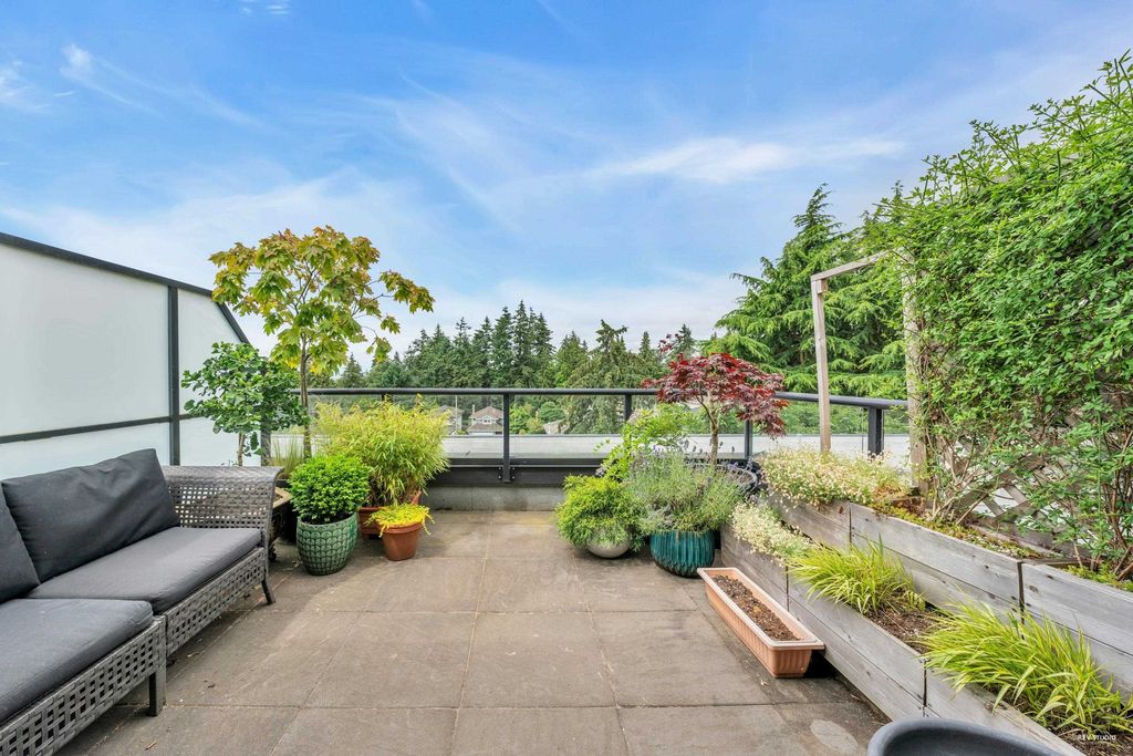 Come live at The Sevens! This stunning 2 level townhouse style PENTHOUSE has 2 large bedrooms with 2 ensuite bathrooms on the upper floor, plus a large top level deck! Main floor features a large kitchen & living area, powder room, & a patio. Recent upgrades include: washer & dryer, microwave, flooring on main floor, painting throughout, pot lights added on the main floor. Amenities: fitness centre, party room, garden, rooftop deck with stunning views, bike room, & car wash. Minutes walk to Royal Oak Skytrain, Burnaby South Secondary, Nelson Elementary, Anytime Fitness, Buy-Low Foods, & many local restaurants! Excellent condition & move-in ready, come see for yourself!