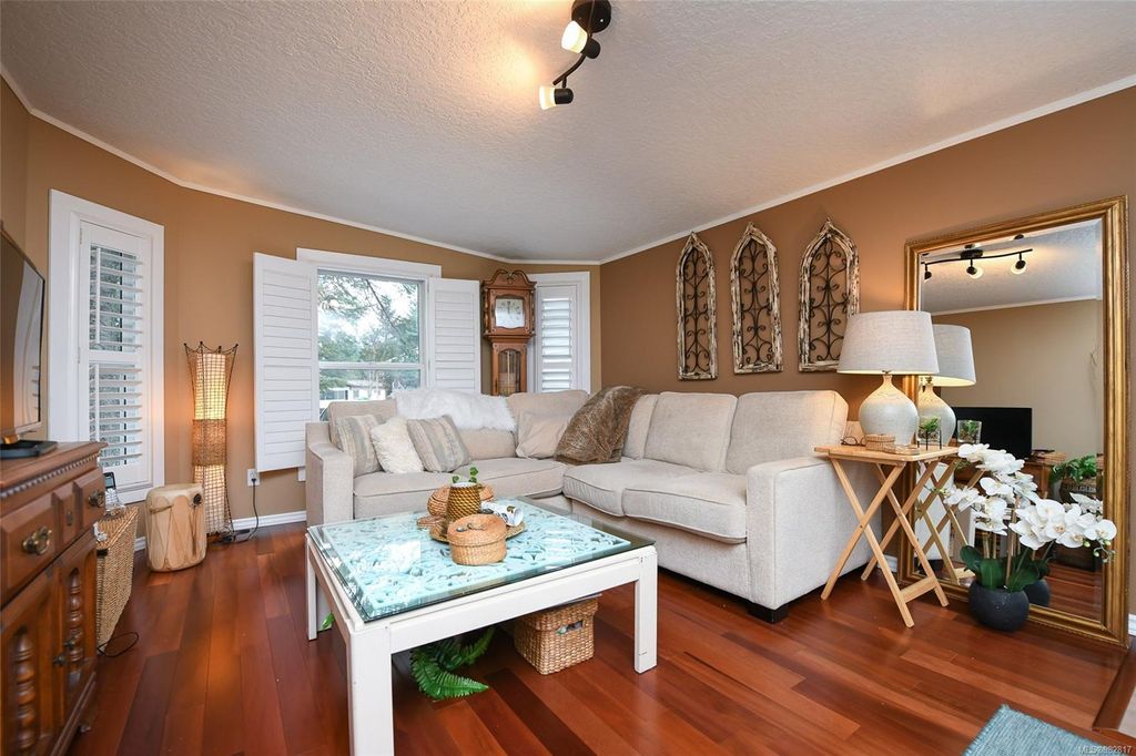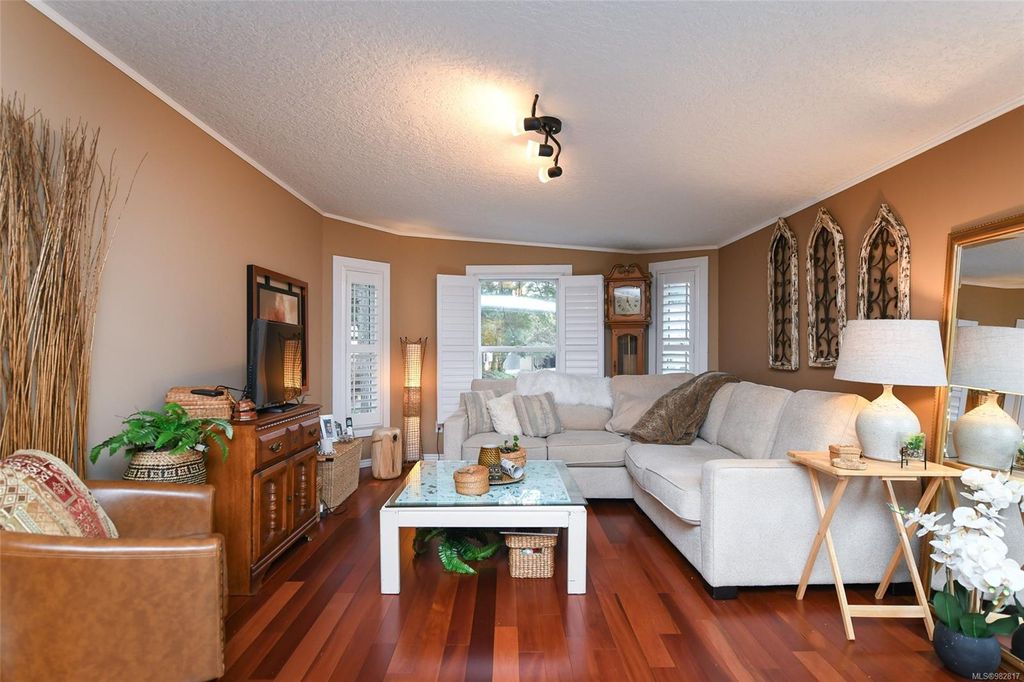 Fantastic package - includes all furnishings. Welcome to this beautiful and immaculate property. Offering incredible value at an affordable price. Boasting 3 bedrooms and over 1268 sq ft of living space, this home has been thoughtfully renovated to provide comfort and style. The updated kitchen is perfect for cooking and entertaining, while the hardwood floors and heat pump ensure both economy and comfort throughout the year. Enjoy the outdoors on two private decks, ideal for relaxing or taking in the natural surroundings. The wood-burning stove adds a cozy ambiance, especially during the winter months. This home is ideally located close to schools, Costco, and various shops. Offering convenience for all your needs. Set in a friendly mobile home park, it's the perfect place for both families and retirees. Additional features include a handy storage shed, and the option to purchase furnishings. Don't miss out on this wonderful opportunity to own a truly special place to call home!