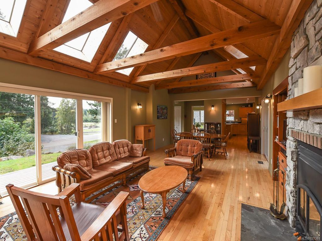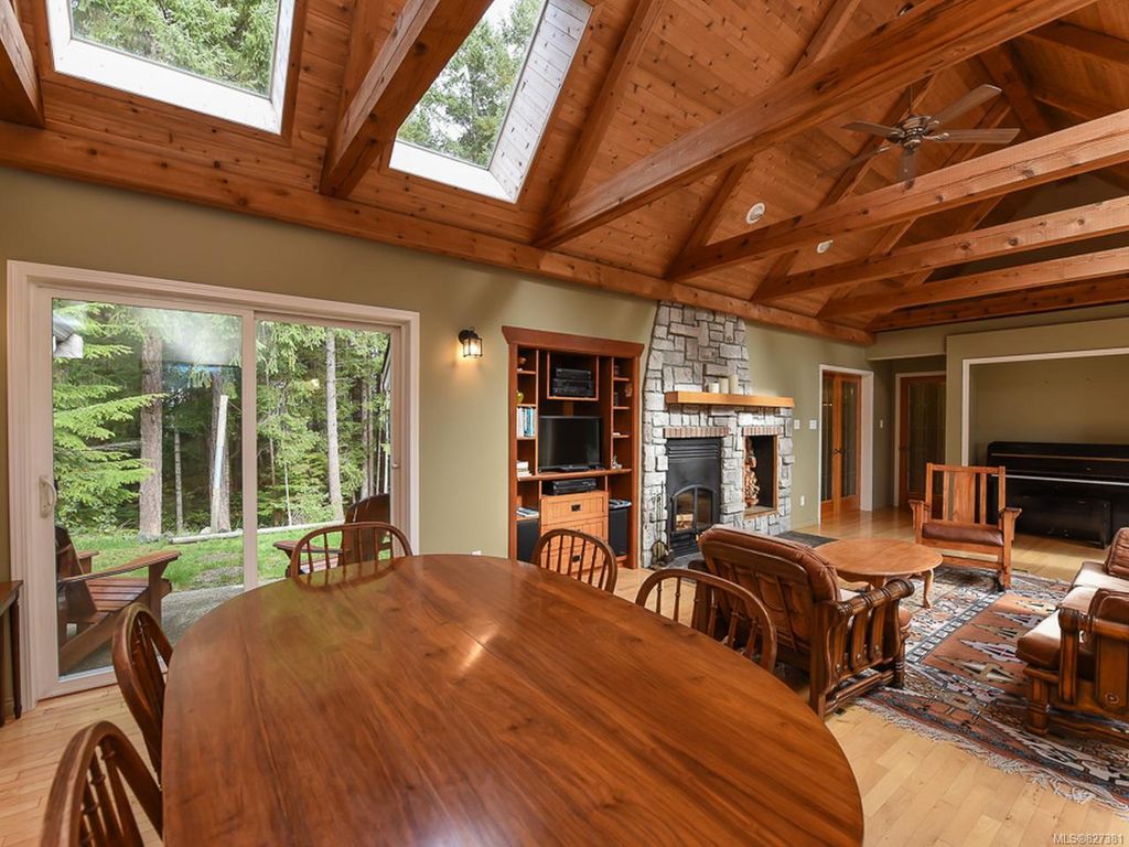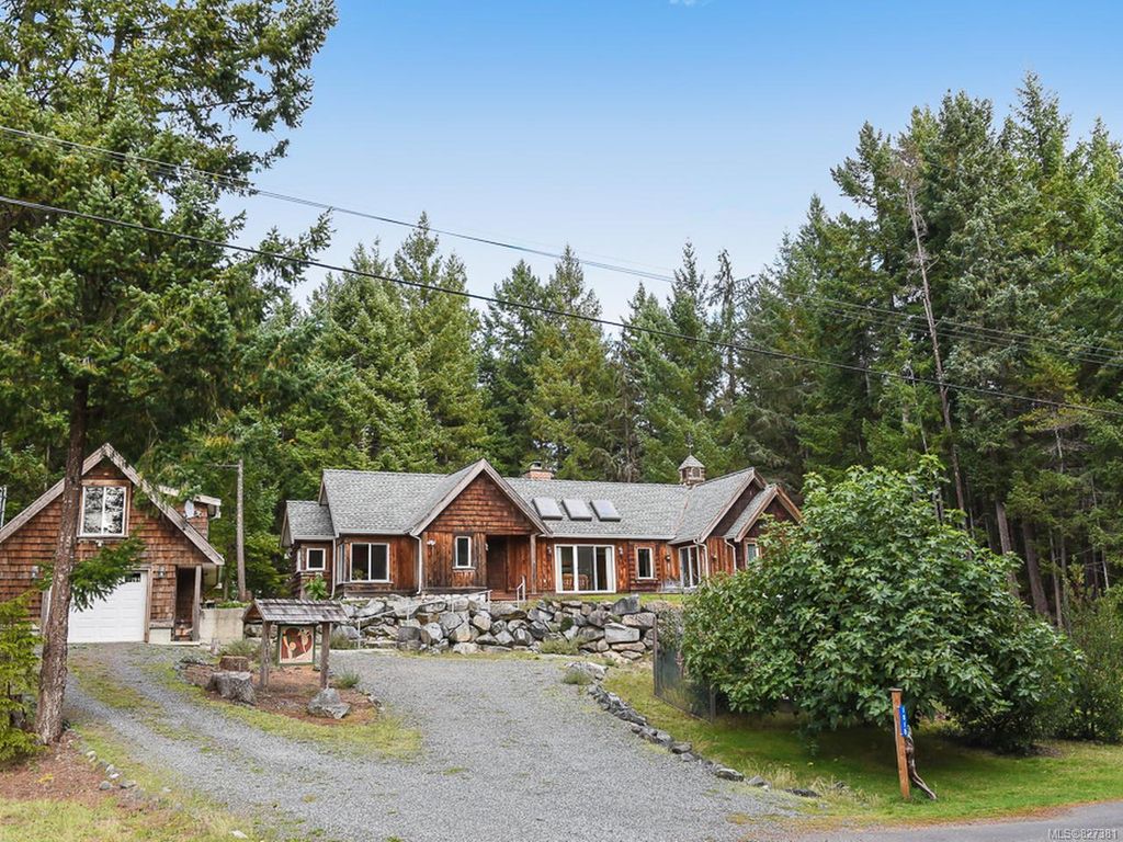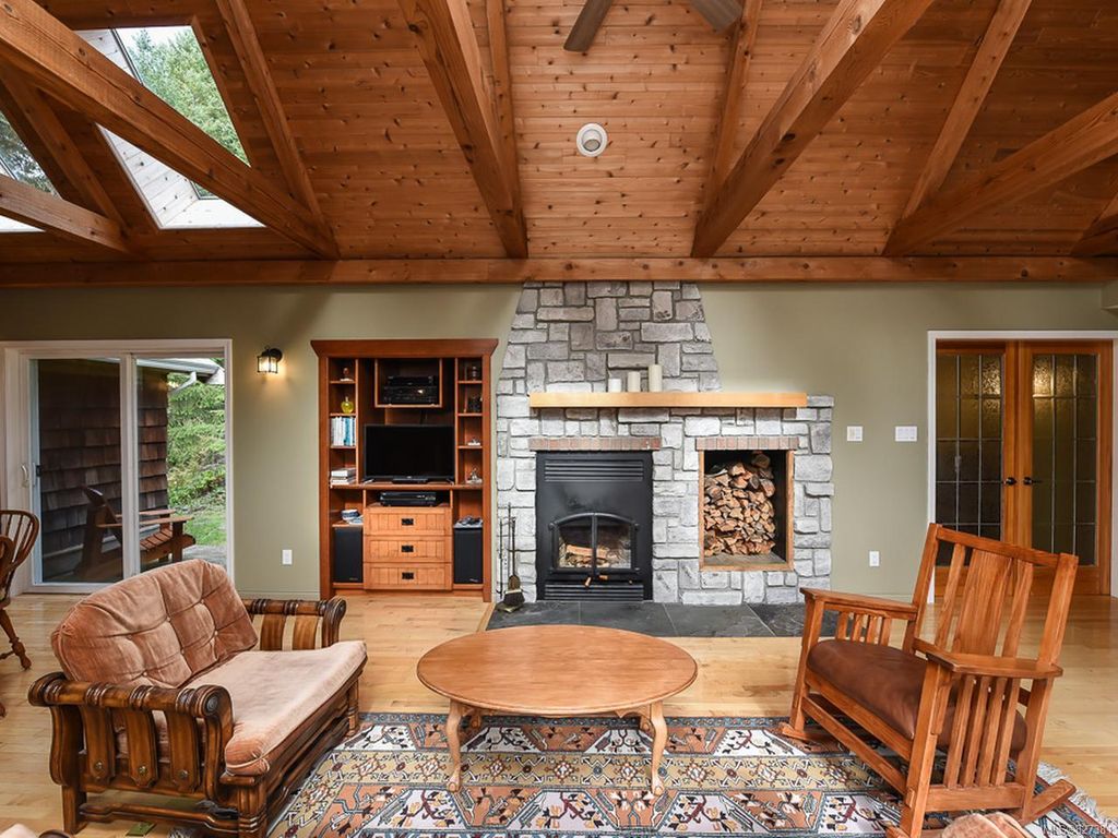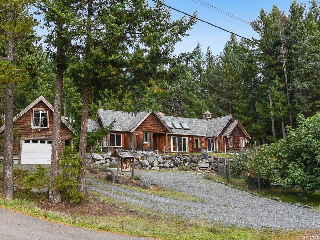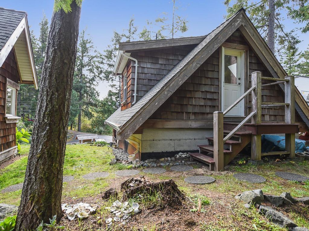 Welcome to 1010 Sand Pines Crescent in located near Point Holmes Waterfront in Comox. This custom built Rancher on 1.93 acres offers 1739 sq ft of living space with additional studio suite above the garage. On entry you will be immediately impressed by the vaulted ceilings with skylights & wood beams over the dining and living room. The front of the property has southern exposure making this an extremely bright home. Spacious kitchen with gas stove & eating nook. Master bedroom with walk-in closet, reading/computer nook, large ensuite bathroom & sliding glass door to front porch. Second bedroom has a Murphy bed & sliding glass door to patio. Beautiful rock fireplace in the living room and heat pump to keep you toasty over the fall and winter months. There is a den & separate laundry room. Below the home is a 5'8" high walking insulated crawlspace with over 1700 sqft of storage space. Front garden area with fig and apple trees & back has wooded area with walking paths. R-RU zoned.