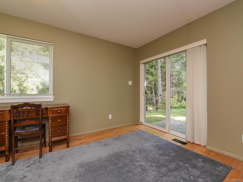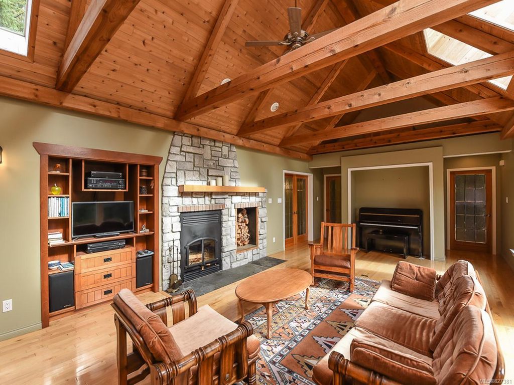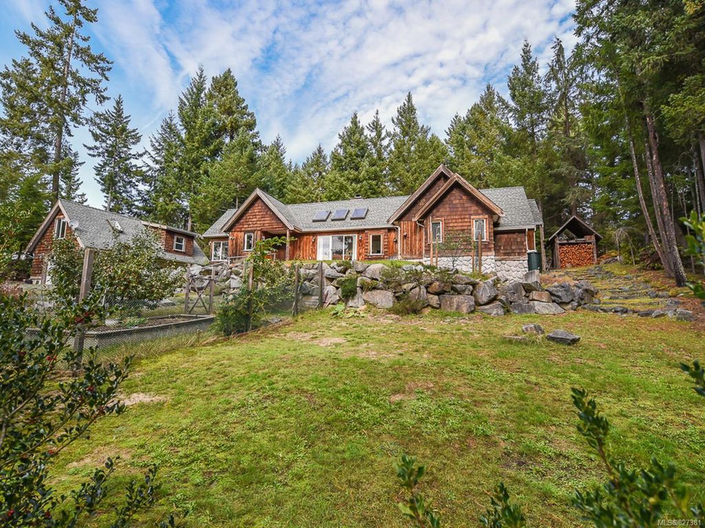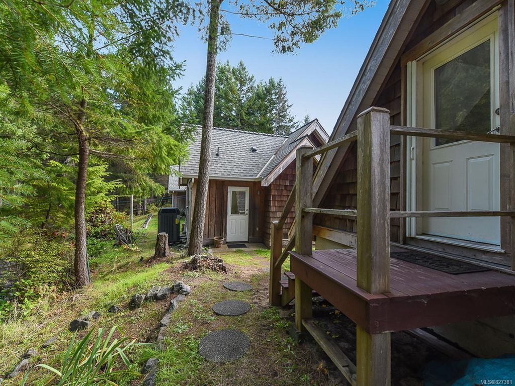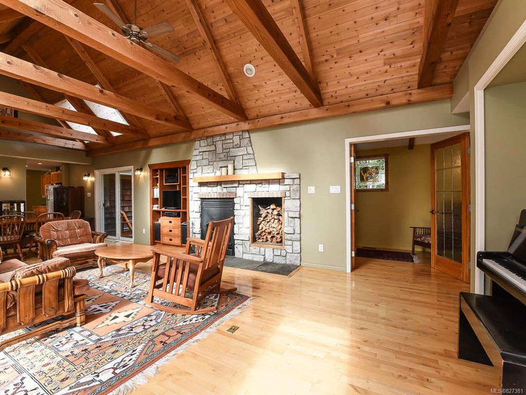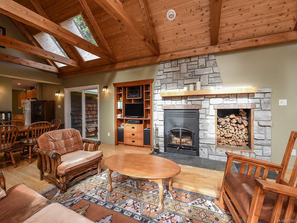 Welcome to 1010 Sand Pines Crescent in located near Point Holmes Waterfront in Comox. This custom built Rancher on 1.93 acres offers 1739 sq ft of living space with additional studio suite above the garage. On entry you will be immediately impressed by the vaulted ceilings with skylights & wood beams over the dining and living room. The front of the property has southern exposure making this an extremely bright home. Spacious kitchen with gas stove & eating nook. Master bedroom with walk-in closet, reading/computer nook, large ensuite bathroom & sliding glass door to front porch. Second bedroom has a Murphy bed & sliding glass door to patio. Beautiful rock fireplace in the living room and heat pump to keep you toasty over the fall and winter months. There is a den & separate laundry room. Below the home is a 5'8" high walking insulated crawlspace with over 1700 sqft of storage space. Front garden area with fig and apple trees & back has wooded area with walking paths. R-RU zoned.