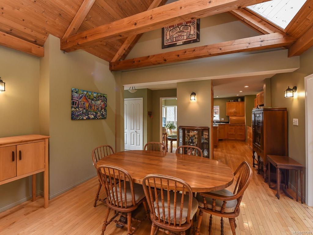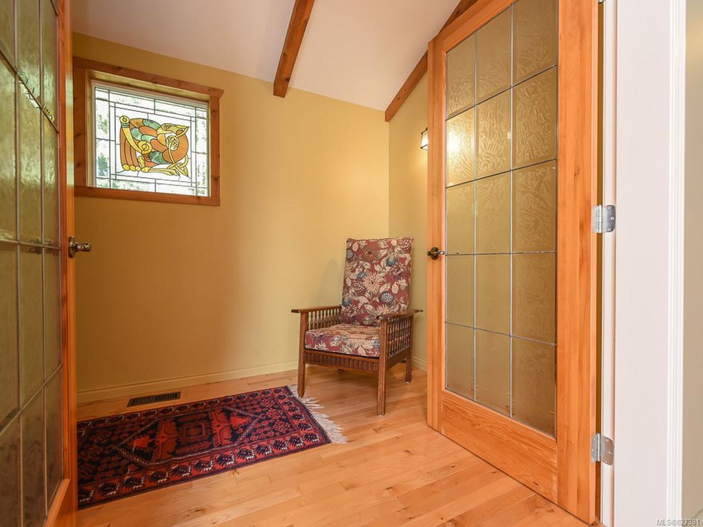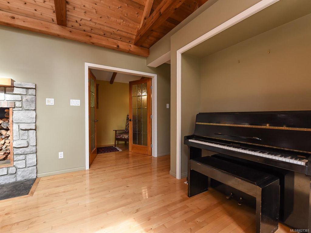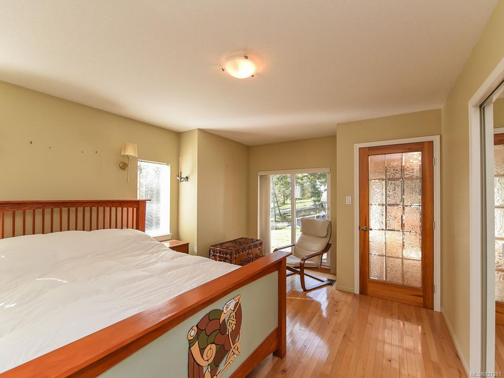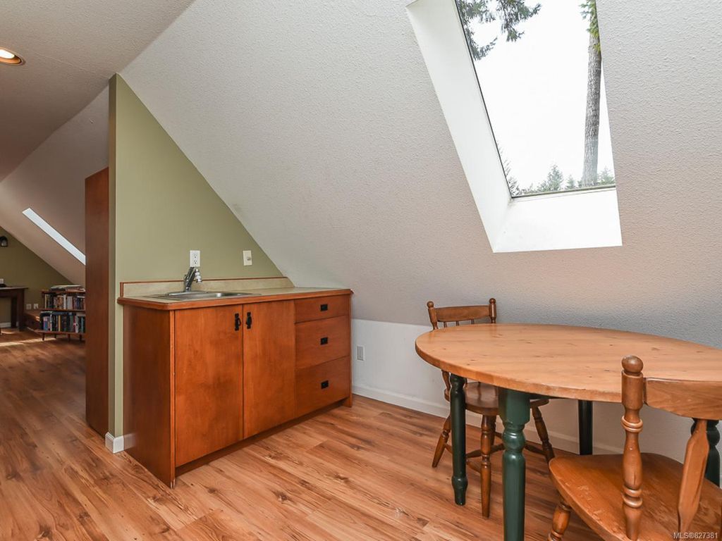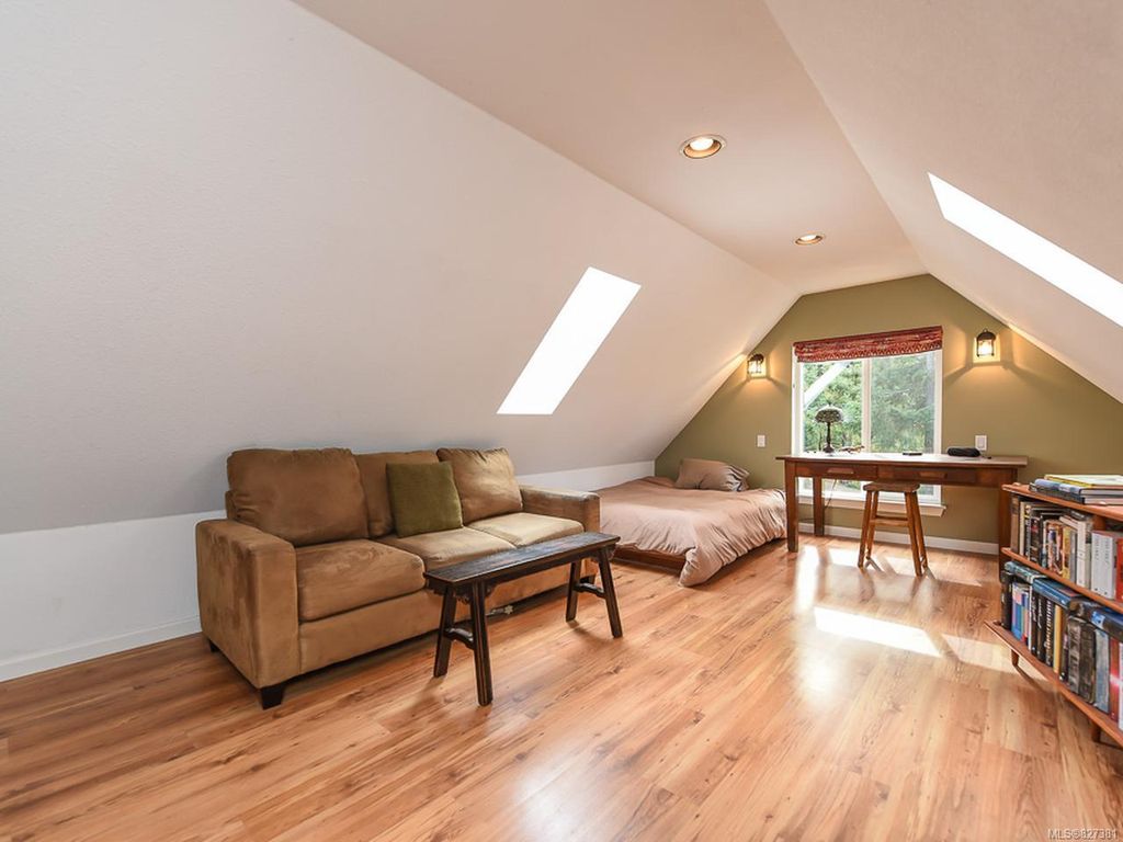 Welcome to 1010 Sand Pines Crescent in located near Point Holmes Waterfront in Comox. This custom built Rancher on 1.93 acres offers 1739 sq ft of living space with additional studio suite above the garage. On entry you will be immediately impressed by the vaulted ceilings with skylights & wood beams over the dining and living room. The front of the property has southern exposure making this an extremely bright home. Spacious kitchen with gas stove & eating nook. Master bedroom with walk-in closet, reading/computer nook, large ensuite bathroom & sliding glass door to front porch. Second bedroom has a Murphy bed & sliding glass door to patio. Beautiful rock fireplace in the living room and heat pump to keep you toasty over the fall and winter months. There is a den & separate laundry room. Below the home is a 5'8" high walking insulated crawlspace with over 1700 sqft of storage space. Front garden area with fig and apple trees & back has wooded area with walking paths. R-RU zoned.