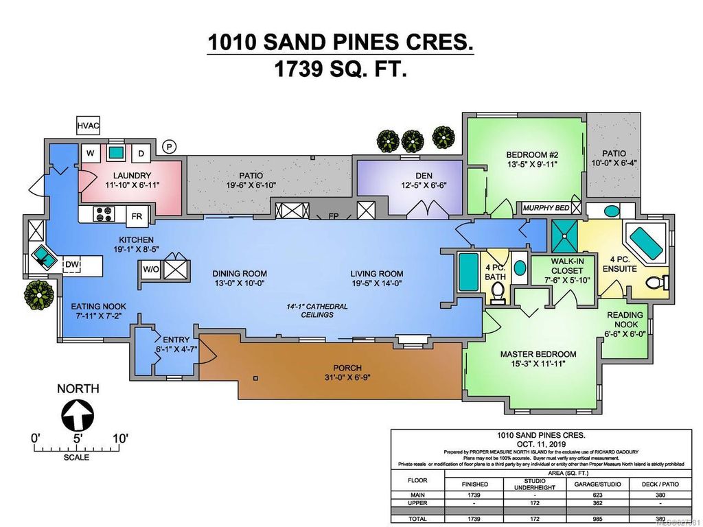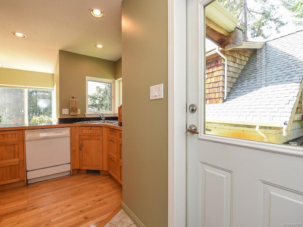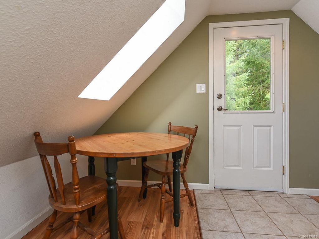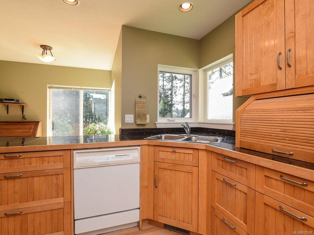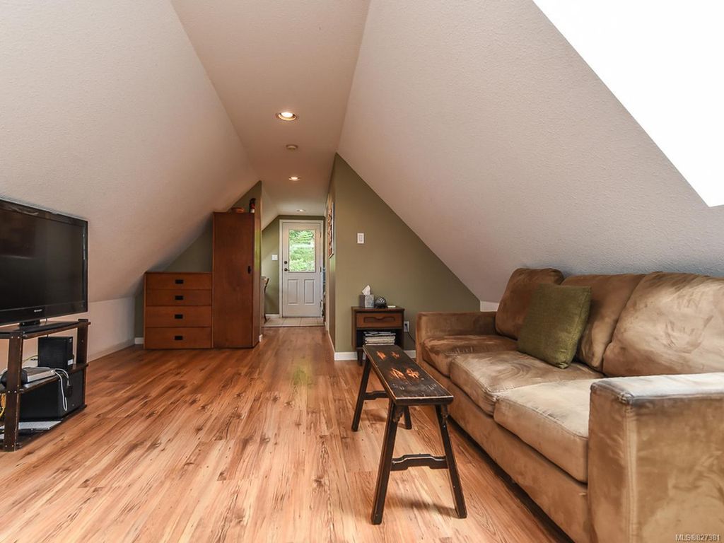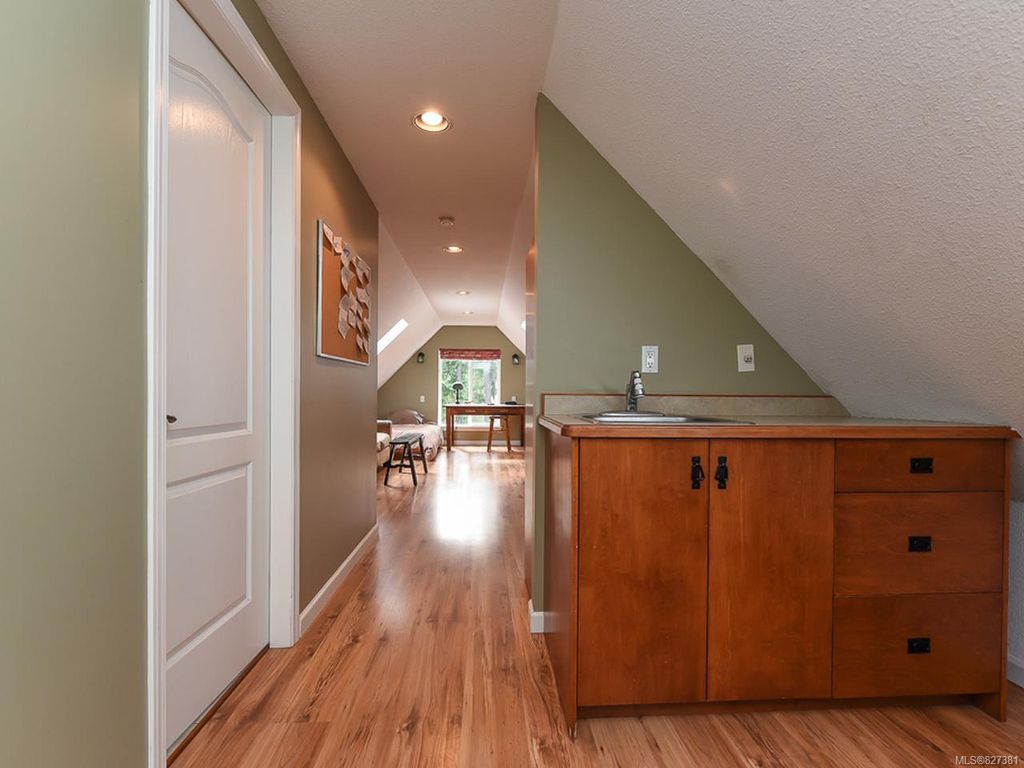 Welcome to 1010 Sand Pines Crescent in located near Point Holmes Waterfront in Comox. This custom built Rancher on 1.93 acres offers 1739 sq ft of living space with additional studio suite above the garage. On entry you will be immediately impressed by the vaulted ceilings with skylights & wood beams over the dining and living room. The front of the property has southern exposure making this an extremely bright home. Spacious kitchen with gas stove & eating nook. Master bedroom with walk-in closet, reading/computer nook, large ensuite bathroom & sliding glass door to front porch. Second bedroom has a Murphy bed & sliding glass door to patio. Beautiful rock fireplace in the living room and heat pump to keep you toasty over the fall and winter months. There is a den & separate laundry room. Below the home is a 5'8" high walking insulated crawlspace with over 1700 sqft of storage space. Front garden area with fig and apple trees & back has wooded area with walking paths. R-RU zoned.