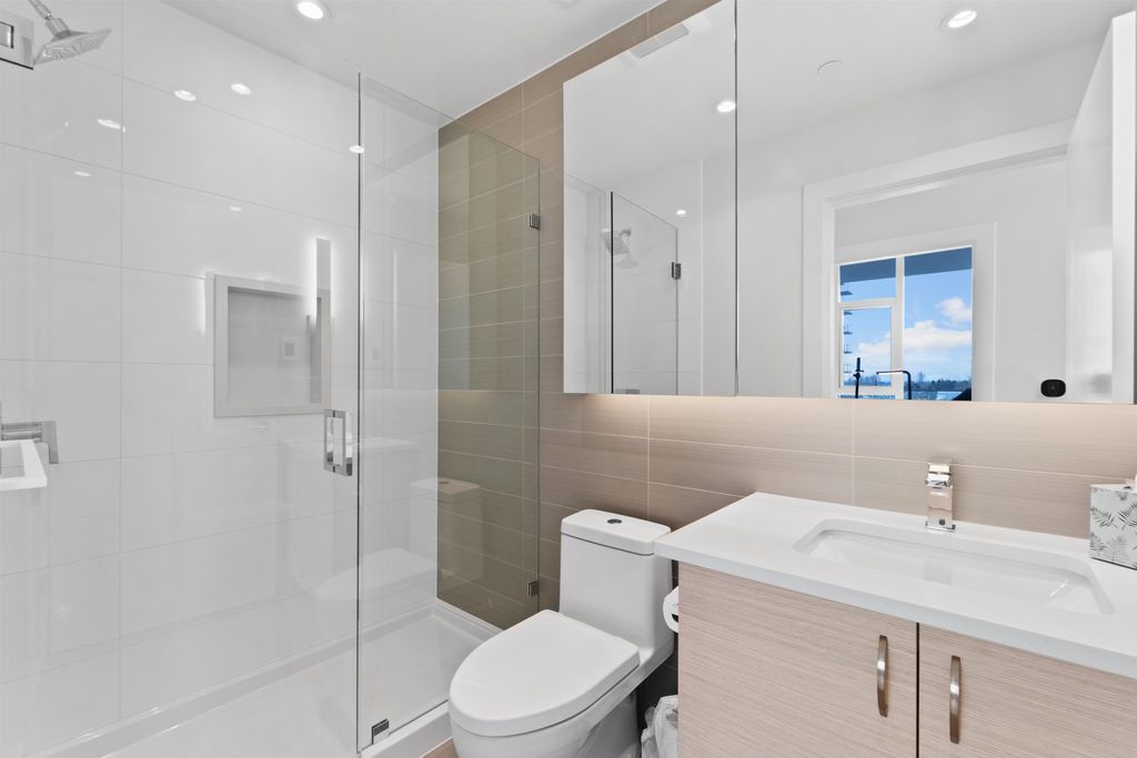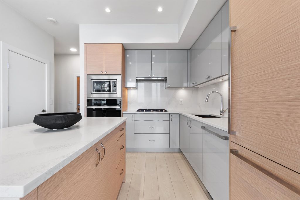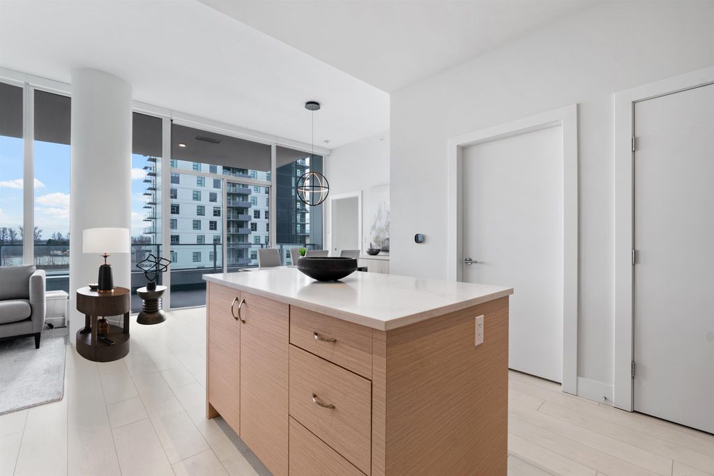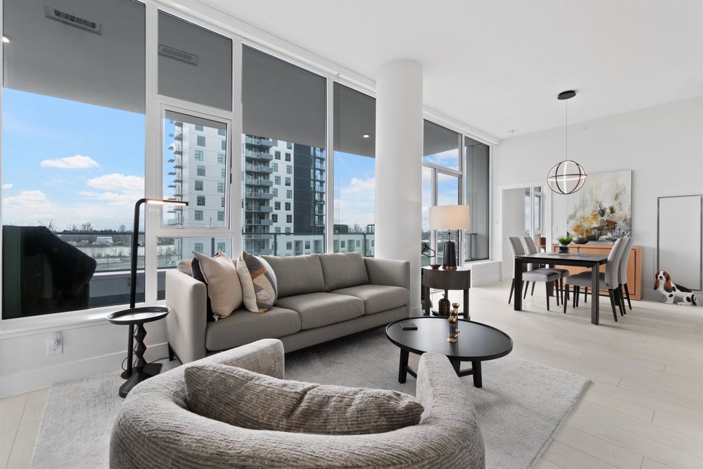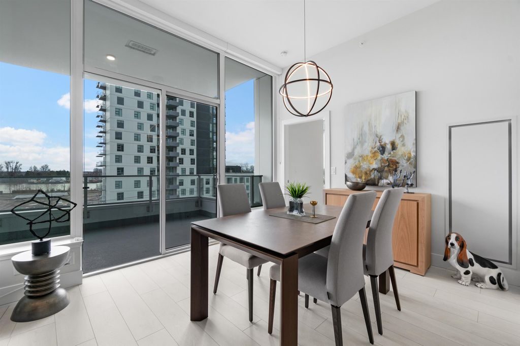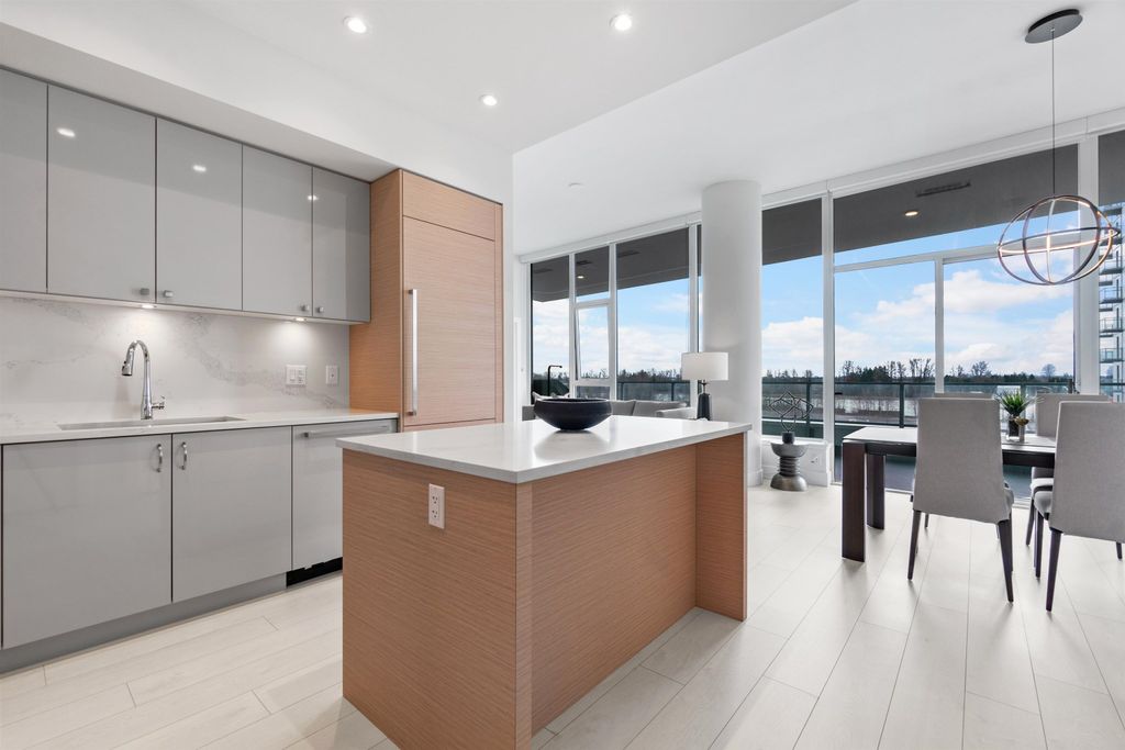Sweeping River views from this stunning 3 bed home! Located in the heart of the River District, this stunning 3 bed, 2 bath condo features nearly 1100sqft of interior living space, with a south facing 300sqft balcony. Inside features 10ft ceilings, premium gas range, fully integrated fridge and dishwasher, air conditioning, and custom millwork throughout, this one truly has it all! Includes one parking and one oversized storage locker. Built by award winning WesGroup, Mode includes a full service concierge, gym, theatre room, and hot tub, all while being located just steps to Save-on-foods, Everything Wine, starbucks, and so much more. Incredible value, just move in! Viewing by Appt only.